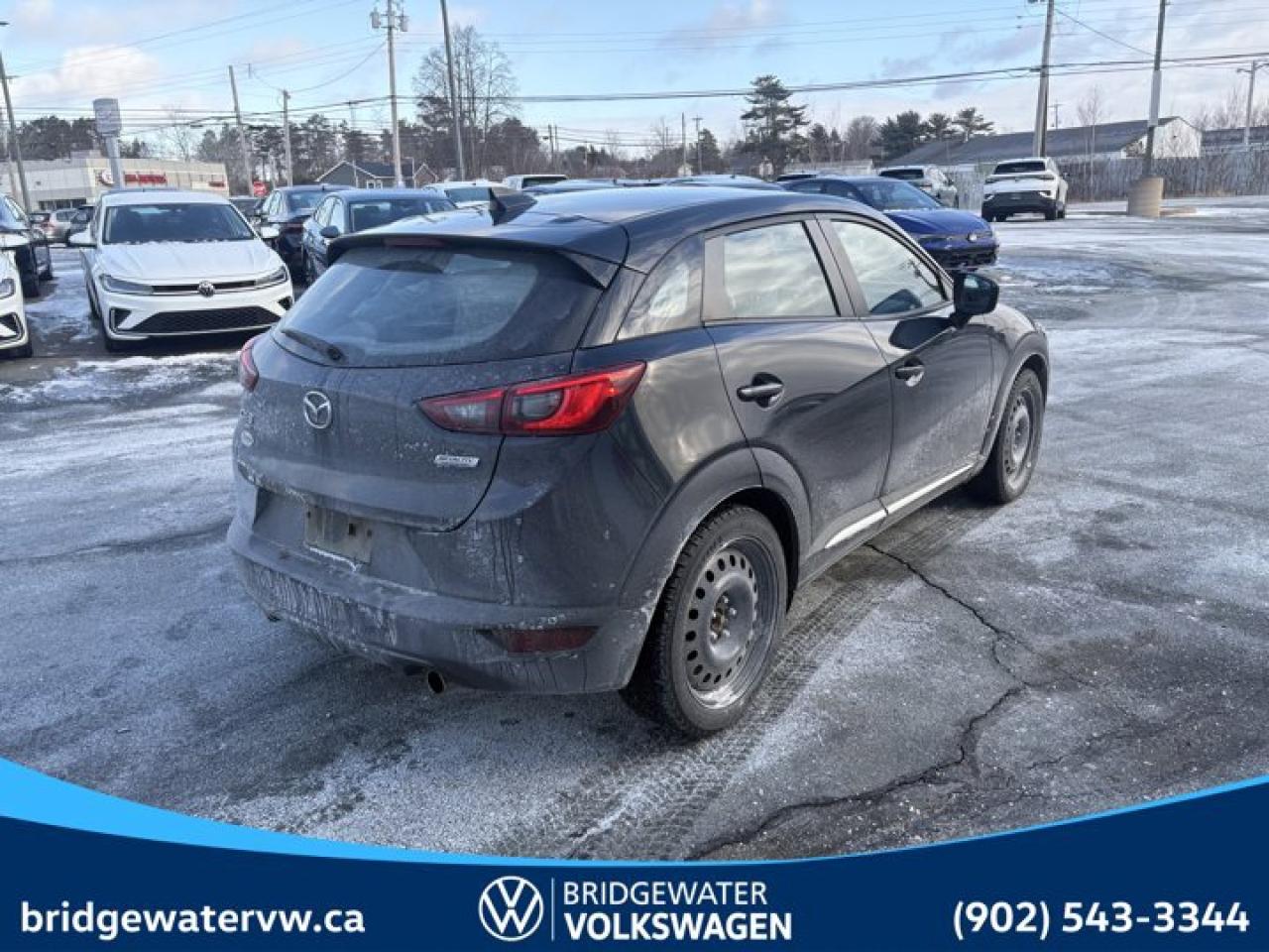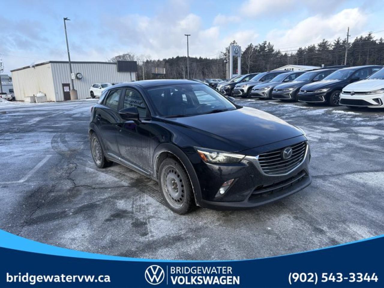 Recent Arrival! Jet Black Mica 2018 Mazda CX-3 GT AWD 6-Speed Automatic SKYACTIV®-G 2.0L 4-Cylinder DOHC 16V Bridgewater Volkswagen, Located in Bridgewater Nova Scotia.Certification Program Details: 150 Points Inspection Fresh Oil Change Free Carfax Full Detail 2 years MVI Full Tank of Gas The 150+ point inspection includes: Engine Instrumentation Interior components Pre-test drive inspections The test drive Service bay inspection Appearance Final inspectionReviews:* The CX-3 seems to have impressed owners on numerous aspects related to fuel economy, driving dynamics, maneuverability, all-weather confidence (especially on AWD-equipped models), and an upscale cabin and driving experience. Many owners appreciate the availability of up-level feature content and reasonable pricing, with the Bose audio system and heated seats listed commonly among favourite features. Source: autoTRADER.ca