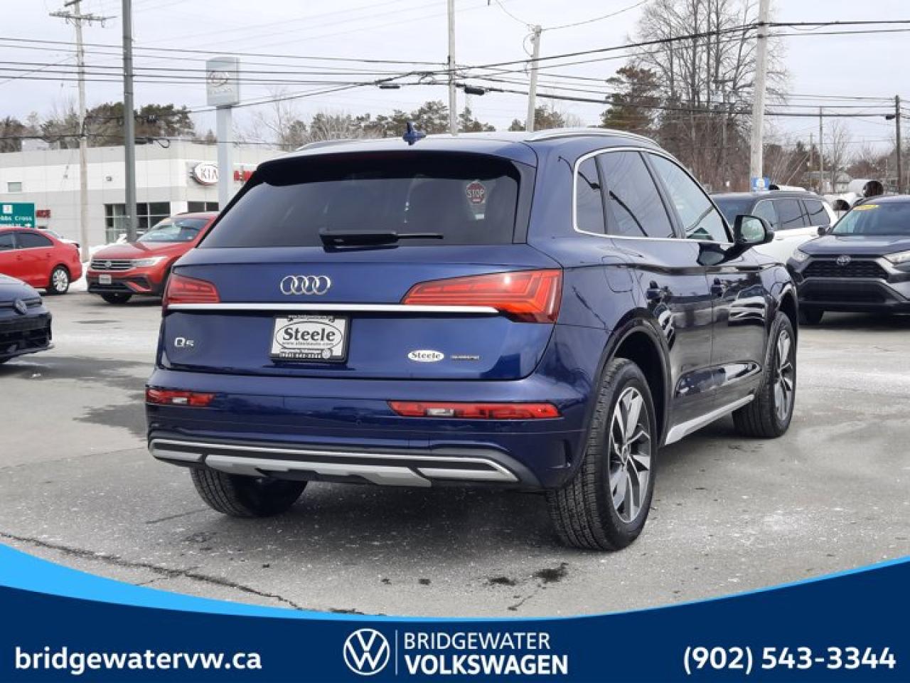 New Price! Recent Arrival! 2025 Audi Q5 Komfortquattro | Apple CarPlay | Android Auto | Sirus XM Certified.This vehicle is a Steele Certified Pre-Owned Vehicle, offering added confidence through enhanced inspection standards and dealership-backed benefits. Steele Certified Reconditioning Process: Comprehensive multi-point inspection Mechanical and cosmetic reconditioning completed as needed Brake, tire, and battery assessment Professional detailing Final quality control road test Steele Certified Pre-Owned vehicles include additional ownership benefits. Any concerns related to the certification process must be reviewed and addressed by the original selling dealer.Odometer is 1098 kilometers below market average!Blue quattro 7-Speed Automatic S tronic 2.0L 4-Cylinder TFSI Black Leather, 10 Speakers, 4-Wheel Disc Brakes, ABS brakes, Active Cruise Control, Air Conditioning, Alloy wheels, AM/FM radio: SiriusXM, Auto-dimming door mirrors, Auto-dimming Rear-View mirror, Automatic temperature control, Brake assist, Bumpers: body-colour, Compass, Delay-off headlights, Driver door bin, Driver vanity mirror, Dual front impact airbags, Dual front side impact airbags, Electronic Stability Control, Emergency communication system: Audi connect Safety and Service (10 yrs from in-service date), Exterior Parking Camera Rear, Four wheel independent suspension, Front anti-roll bar, Front Bucket Seats, Front dual zone A/C, Front fog lights, Front reading lights, Garage door transmitter: HomeLink, Heated door mirrors, Heated Front Bucket Seats, Heated front seats, Heated steering wheel, Illuminated entry, Leather Seating Surfaces, Leather Shift Knob, Leather steering wheel, Low tire pressure warning, Memory seat, Occupant sensing airbag, Outside temperature display, Overhead airbag, Overhead console, Panic alarm, Passenger door bin, Passenger vanity mirror, Power door mirrors, Power driver seat, Power Liftgate, Power passenger seat, Power steering, Power windows, Radio data system, Radio: SiriusXM Satellite, Rain sensing wipers, Rear air conditioning, Rear anti-roll bar, Rear fog lights, Rear reading lights, Rear window defroster, Rear window wiper, Remote keyless entry, Roof rack, Security system, Speed control, Speed-sensing steering, Speed-Sensitive Wipers, Split folding rear seat, Spoiler, Steering wheel mounted audio controls, Tachometer, Telescoping steering wheel, Tilt steering wheel, Traction control, Trip computer, Turn signal indicator mirrors, Variably intermittent wipers, Wheels: 8.0J x 19" 5-Arm Design.