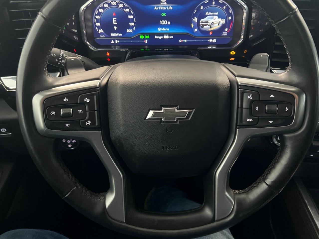 10-Speed Automatic, 4WD, Jet Black w/Cloth Seat Trim, 10-Way Power Driver Seat w/Lumbar, 12.3''' Multicolour Reconfigurable Digital Display, 120-Volt Bed Mounted Power Outlet, 120-Volt Interior Power Outlet, 2 USB Data Ports, 6-Speaker Audio System, 6''' Rectangular Black Tubular Assist Steps (LPO), Air Conditioning, All-Weather Floor Liner (LPO) (AAK), Apple CarPlay/Android Auto, Auto-Locking Rear Differential, Bluetooth® For Phone, Chevrolet Connected Access Capable, Colour-Keyed Carpeting Floor Covering, Convenience Package, Convenience Package II, Deep-Tinted Glass, Dual Rear USB Ports (Charge Only), Dual-Zone Automatic Climate Control, Electric Rear-Window Defogger, Electrical Steering Column Lock, Electronic Cruise Control, Electronic Transmission Range Selector Shifter, EZ Lift Power Lock & Release Tailgate, Floor Mounted Centre Console, Front Bucket Seats, Front LED Fog Lamps, HD Rear Vision Camera, Heated Driver & Front Outboard Passenger Seats, Heated Power-Adjustable Outside Mirrors, Heated Steering Wheel, Heavy-Duty Air Filter, High Gloss Black Mirror Caps, Hill Descent Control, Hitch Guidance, Hitch Guidance w/Hitch View, In-Vehicle Trailering System App, Inside Rear-View Mirror w/Tilt, Integrated Trailer Brake Controller, Keyless Open & Start, LED Cargo Area Lighting, OnStar & Chevrolet Connected Services Capable, Performance Red Recovery Hooks, Power driver seat, Power Front Windows w/Driver Express Up/Down, Power Front Windows w/Passenger Express Down, Power Rear Windows w/Express Down, Power Sliding Rear Window w/Rear Defogger, Preferred Equipment Group 2LT, Premium Bose 7-Speaker Sound System, Radio: Chevrolet Infotainment 3 Premium System, Rear 60/40 Folding Bench Seat (Folds Up), Remote keyless entry, Remote Vehicle Starter System, SiriusXM w/360L, Standard Tailgate, Steering Wheel Audio Controls, Suspension Package, Theft Deterrent System (Unauthorized Entry), Tilt steering wheel, Trailering Package, Universal Home Remote, Wheels: 18''' x 8.5''' Black Painted Aluminum, Wi-Fi Hot Spot Capable, Wireless Charging, Wrapped Steering Wheel.