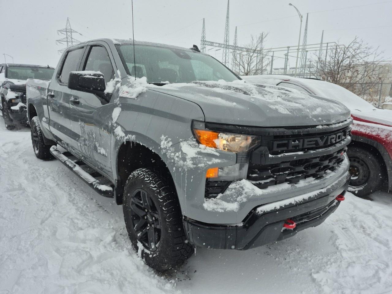 8-Speed Automatic, 4WD, Jet Black w/Cloth Seat Trim, 10-Way Power Driver Seat w/Lumbar, 120-Volt Bed Mounted Power Outlet, 120-Volt Interior Power Outlet, 3.5''' Monochromatic Display Driver Info Centre, 4''' Black Round Assist Steps (LPO), 6-Speaker Audio System, Air Conditioning, AM/FM radio: SiriusXM, Apple CarPlay/Android Auto, Auto-Locking Rear Differential, Black Name Plates (LPO), Bluetooth® For Phone, Chevrolet Connected Access Capable, Colour-Keyed Carpeting Floor Covering, Custom Convenience Package, Dark Essentials Package (LPO), Deep-Tinted Glass, Dual Rear USB Ports (Charge Only), Electric Rear-Window Defogger, Electrical Steering Column Lock, Electronic Cruise Control, EZ Lift Power Lock & Release Tailgate, Forward Collision Alert, Front Rubberized Vinyl Floor Mats, HD Rear Vision Camera, Heated door mirrors, Heavy-Duty Air Filter, Hill Descent Control, Hitch Guidance, Lane Keep Assist w/Lane Departure Warning, LED Cargo Area Lighting, Manual Tilt Wheel Steering Column, OnStar & Chevrolet Connected Services Capable, Performance Red Recovery Hooks, Power driver seat, Power Front Windows w/Driver Express Up/Down, Power Front Windows w/Passenger Express Down, Power Rear Windows w/Express Down, Power windows, Preferred Equipment Group 2CX, Premium audio system: Chevrolet Infotainment 3, Radio: Chevrolet Infotainment 3 System, Rear 60/40 Folding Bench Seat (Folds Up), Rear Rubberized-Vinyl Floor Mats, Remote Keyless Entry, Remote Vehicle Starter System, SiriusXM, Standard Tailgate, Suspension Package, Theft Deterrent System (Unauthorized Entry), Tilt steering wheel, Trailering Package, Wheels: 18''' x 8.5''' Black Painted Aluminum, Wi-Fi Hot Spot Capable.