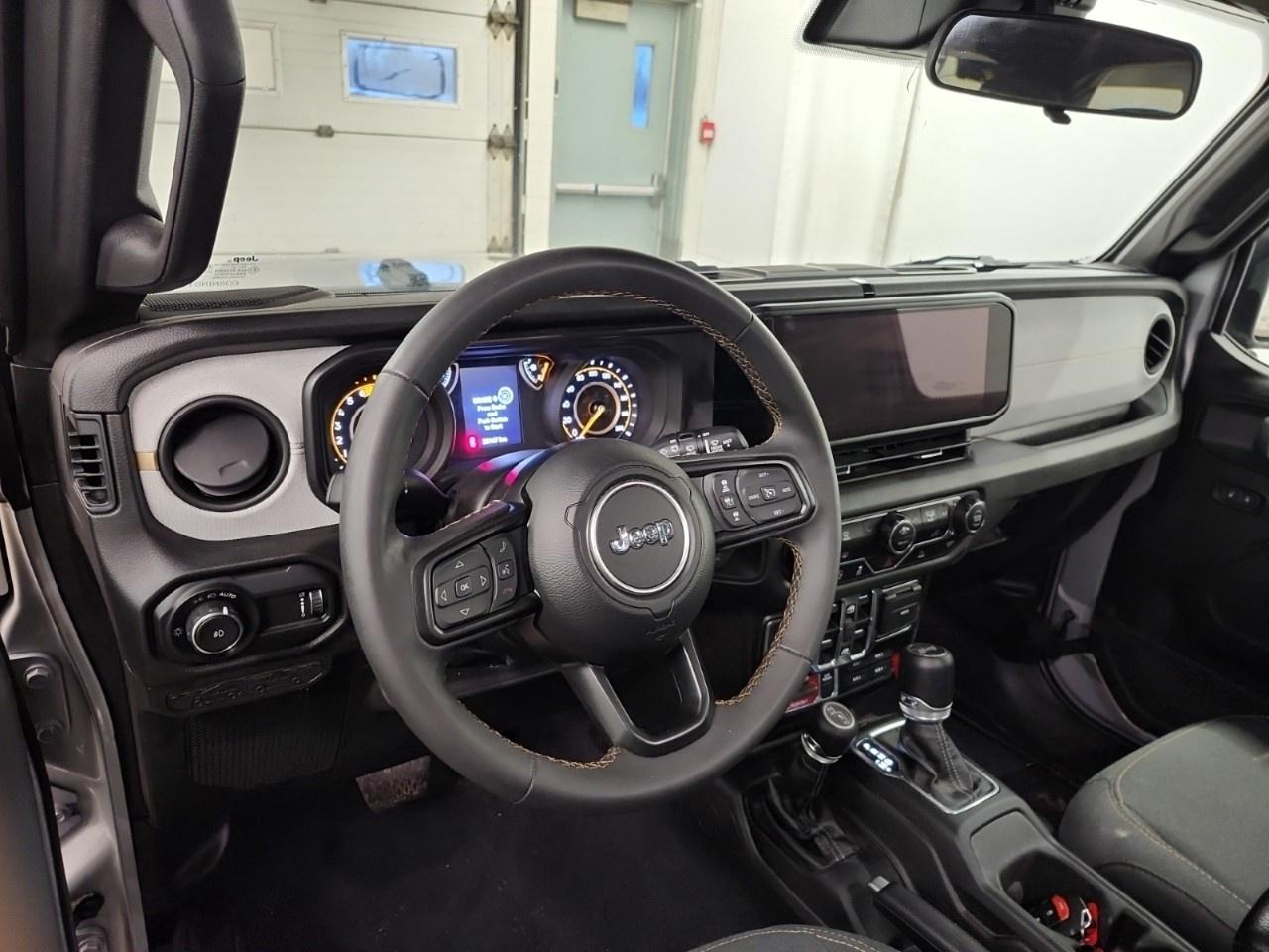 156 KM/H Max Speed Tire Calibration, 240 Amp Alternator, 4 Auxiliary Switches, 4- and 7-Pin Wiring Harness, 4-Wheel Drive Swing Gate Decal, 4.10 Rear Axle Ratio, 8 Speakers, Advanced Brake Assist, Air Conditioning, AM/FM radio: SiriusXM with 360L, Black Injection-Moulded Rear Bumper, Class II Hitch Receiver, Conventional Front Differential, Corning Gorilla Glass, Dana M210 Wide HD Tube Front Axle, Dana M220 Wide Rear Axle, Daytime Running Lights w/LED Accents, Deep-Tint Sunscreen Windows, E-Locker Rear Axle, Enhanced Adaptive Cruise Control, Forward Collision Warn/Active Braking, Front Bucket Seats, Front fog lights, Front License Plate Bracket, Gloss Black Sport Grille, LED Fog Lamps, LED Reflector Headlamps, MOPAR All-Weather Floor Mats, Moulded-In-Colour Bumper w/Gloss Black, Off-Road Plus Mode, ParkView Rear Back-Up Camera, Power Heated Exterior Mirrors, Power steering, Power Windows w/Front 1-Touch Down, Premium-Wrapped Steering Wheel, Quick Order Package 22W Willys (DISC), Radio: Uconnect 5W w/12.3''' Display, Remote Keyless Entry, Rock Protection Sill Rails, Rubicon Highline Flare, Security Alarm, Speed-Sensitive Power Locks, Sun Visors w/Illuminated Vanity Mirrors, Telescoping steering wheel, Tilt steering wheel, Wheels: 17''' x 7.5''' Painted Black, Willy's Suspension, Willys, Willys Hood Decal.