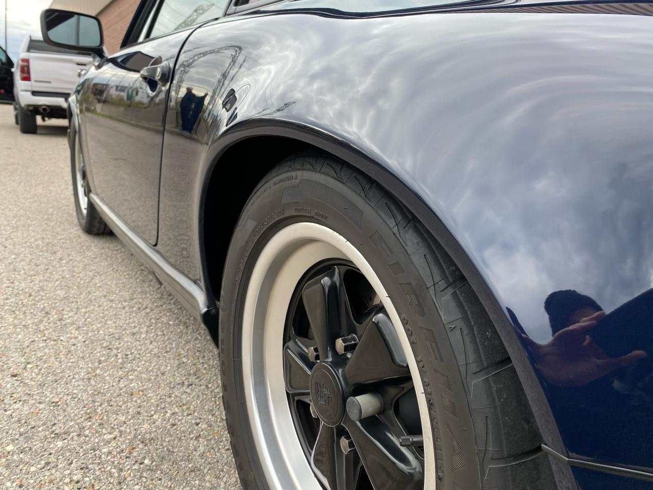 BLUE ON BLUE LEATHER, NON SMOKER, THIRD OWNER, VERY RARE. OWED BY A MATURE PORSCHE ENTHUSIAST FOR THE PAST 25 YEARS, 5 SPEED, NON TURBO, FUCHS WHEELS, BILSTEIN DAMPERS, NEW SHOCKS, SPORT HEATED POWER LEATHER SEATS, TURBO TIE ROD ENDS, H4 HEADLAMPS AND RELAYS, SHORT SHIFTER, LIMITED SLIP DIFF, RECENT ZIMMERMAN ROTORS AND PADS, ALL FLUID FLUSHED, INDY 500 TIRES, GARAGE STORED SINCE NEW. RECENT PLUGS, CAP AND ROTOR, FRESH PENN GRADE OIL AND FILTER. K/N AIR FILTER. NEW BATTERY. POWER SUNROOF, REAR SPOILER, R134 A/C, RENNIN FLOOR BOARD UPGRADE, CAT BY-PASS, BELIEVED TO BE NUMBERS MATCHING. NOT ORIGINAL PAINT. ENGINE HAS NEVER BEEN OPENED. EVERY SERVICE