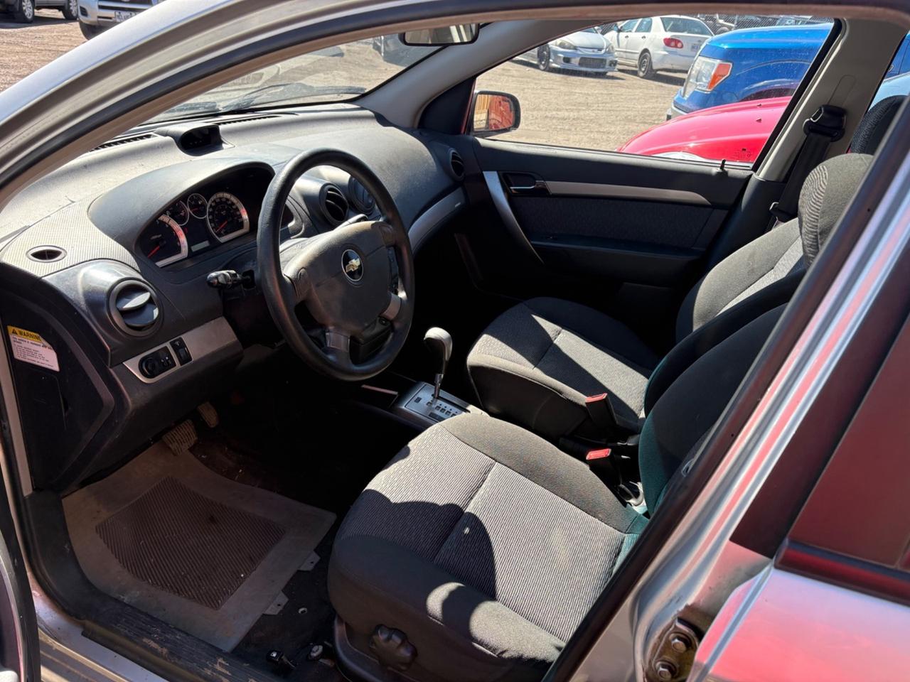 2007 Chevrolet Aveo LT. Silver exterior, and grey cloth interior. The vehicle has odometer is 88,494 km and runs and drives. Engine light is on, but no codes are showing. The vehicle is sold as is and may require additional work. We do not perform mechanical checks or provide safety inspections.