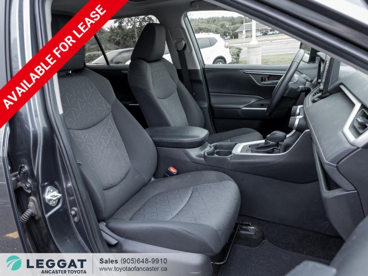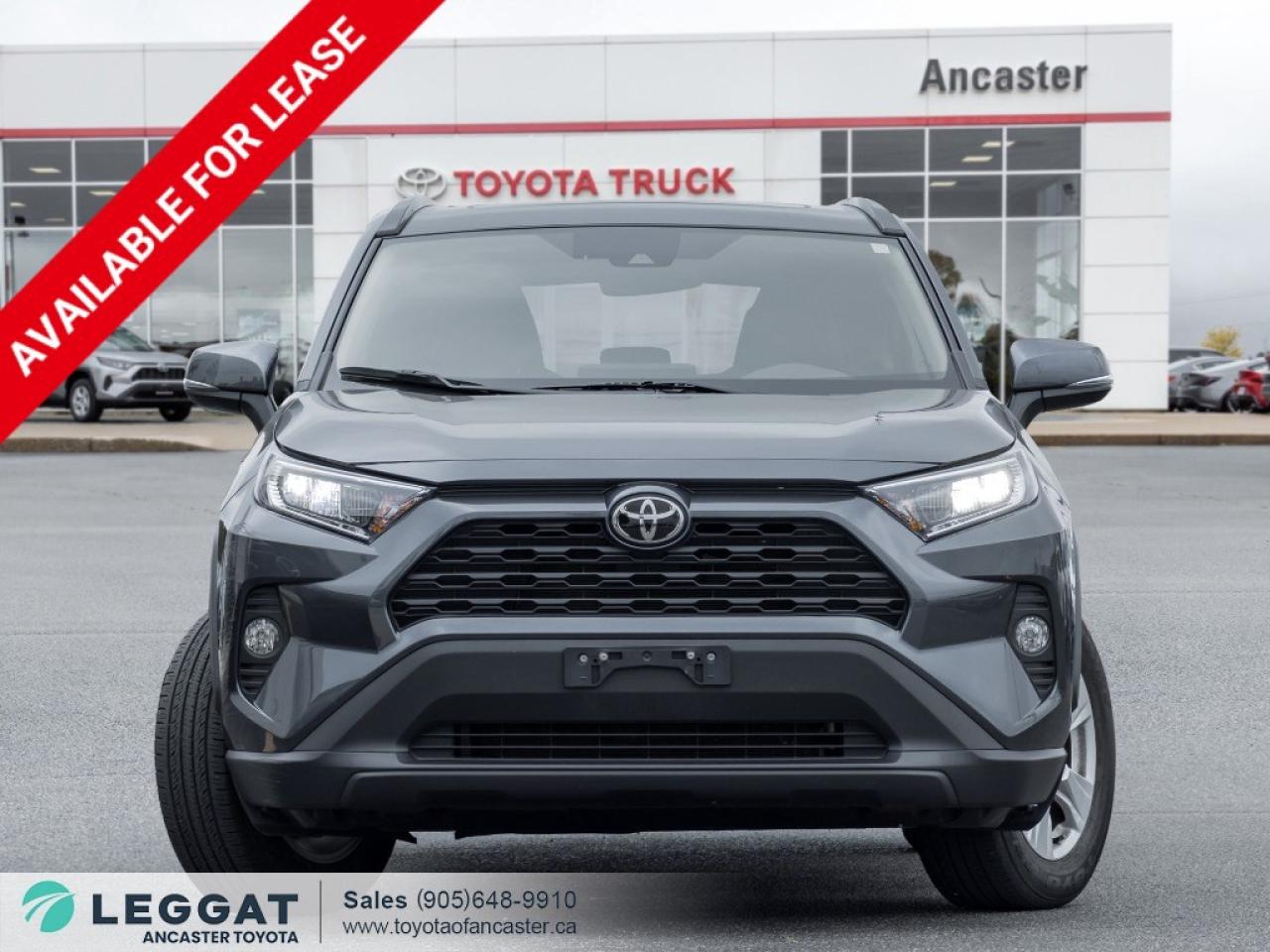 To give you peace of mind all our Leggat Used Car vehicles includes a 6 month/10,000 kms powertrain warranty with up to a $6,000 claim ONE OWNER, SERVICED HERE, LOW KM Finished in a Magnetic Grey Metallic exterior that is completed with a Black cloth interior, balanced on a set of 17-inch alloy wheels. Pop open the hood and you will reveal a 2.5L four (4) cylinder engine that is paired to an eight (8) speed automatic transmission. Step into the interior and you will be impressed to find features including a sunroof, backup camera, multi-terrain driving modes, high beam assist, heated steering wheel, power liftgate, steering wheel mounted controls, forward collision warning, lane departure warning, push-button start, auto start-stop, heated front seats, dual climate control, Bluetooth, Apple CarPlay & Android Auto, power driver seat with lumbar support and so much more. Don't miss your chance to take home this 2020 Toyota RAV4 XLE! SCHEDULE A TEST DRIVE TODAY! With our No-Haggle, No-Hassle purchase experience you get peace of mind knowing our best price is upfront.1-Guaranteed Minimum 50% Remaining Tire Tread Life2-Guaranteed Minimum 50% Life Remaining on Brakes3-120 Point Safety Inspection4-Free Carfax Canada Vehicle History Report5-Complete Lube, Oil, & Filter Change6-Full Detailed Clean UpAncaster Toyota is the proud recipient of the latest, highest honour for Canadian Toyota Retailers, the Toyota President's Award for Excellence in Customer Satisfaction, Sales, and Service! We are serving Ancaster, Hamilton, Burlington, Dundas, Brantford, Stoney Creek, Grimsby, Oakville, Mississauga, Milton, Cambridge, Kitchener Waterloo, Cayuga, Caledonia, St. Catharines, Welland, Niagara and the entire GHA and GTA Finance Price Shown. The cash purchase price slightly exceeds the advertised finance price, as we receive incentives from banks when we finance vehicles, which we pass on to customers. Recognizing the high demand for vehicles, which can raise prices, we utilize these incentives to lower the finance purchase price. Dealer reserves the right to decline cash purchases (cash, bank draft, certified cheque, credit card payments in excess of $1,000) at its sole and exclusive discretion. For Finance and Lease purchases Dealer charges a $999 finance/lease fee. While every reasonable effort is made to ensure the accuracy of all information on this site, we are not responsible for any errors or omissions. Please verify any information in question with a dealership sales manager prior to purchase. See dealer for full details.