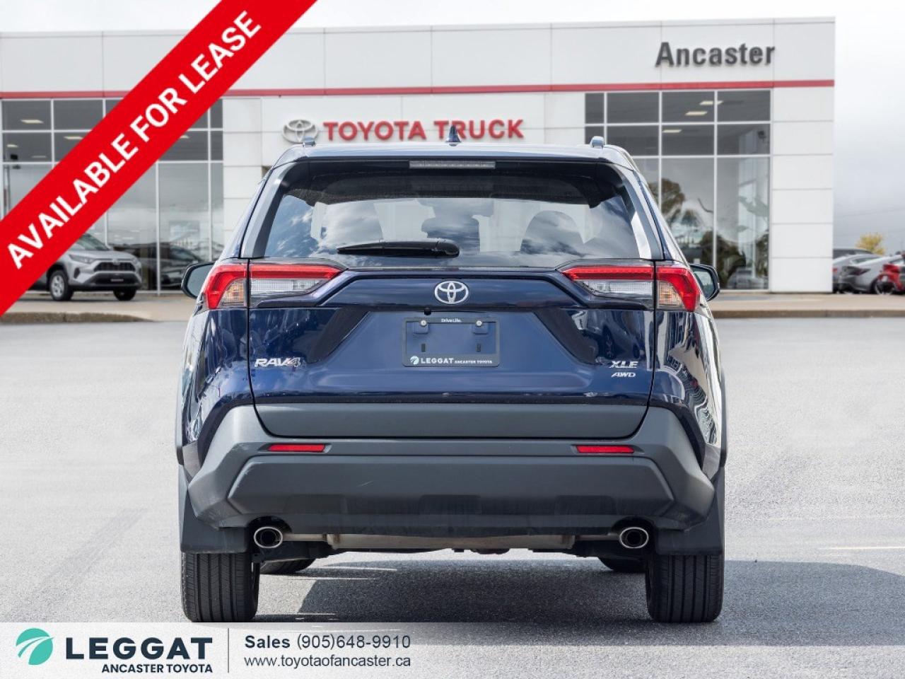 To give you peace of mind all our Leggat Used Car vehicles includes a 6 month/10,000 kms powertrain warranty with up to a $6,000 claim Take on every journey with confidence in the 2023 Toyota RAV4 XLE AWD, a refined SUV that blends practicality, comfort, and advanced technology. Finished in a Blueprint exterior that complements a Black leather interior, standing on a set of 19-inch alloy wheels. Beneath the hood, you will reveal a 2.5L 4-cylinder engine paired with an 8-speed automatic transmission and all-wheel drive, delivering both efficiency and capability in all conditions. Slide into the interior and be impressed to find features including heated front seats, power drivers seat, memory seats, navigation, dual-zone automatic climate control, push-button start, backup camera, sunroof, Apple CarPlay & Android Auto, Bluetooth connectivity, USB ports, cruise control, power windows and locks, 60/40 split-folding rear seats, and much more. Dont miss your chance to take home this 2023 Toyota RAV4 XLE AWD today! SCHEDULE A TEST DRIVE TODAY!With our No-Haggle, No-Hassle purchase experience you get peace of mind knowing our best price is upfront.1-Guaranteed Minimum 50% Remaining Tire Tread Life2-Guaranteed Minimum 50% Life Remaining on Brakes3-120 Point Safety Inspection4-Free Carfax Canada Vehicle History Report5-Complete Lube, Oil, & Filter Change6-Full Detailed Clean UpAncaster Toyota is the proud recipient of the latest, highest honour for Canadian Toyota Retailers, the Toyota President's Award for Excellence in Customer Satisfaction, Sales, and Service! We are serving Ancaster, Hamilton, Burlington, Dundas, Brantford, Stoney Creek, Grimsby, Oakville, Mississauga, Milton, Cambridge, Kitchener Waterloo, Cayuga, Caledonia, St. Catharines, Welland, Niagara and the entire GHA and GTA Finance Price Shown. The cash purchase price slightly exceeds the advertised finance price, as we receive incentives from banks when we finance vehicles, which we pass on to customers. Recognizing the high demand for vehicles, which can raise prices, we utilize these incentives to lower the finance purchase price. Dealer reserves the right to decline cash purchases (cash, bank draft, certified cheque, credit card payments in excess of $1,000) at its sole and exclusive discretion. For Finance and Lease purchases Dealer charges a $999 finance/lease fee. While every reasonable effort is made to ensure the accuracy of all information on this site, we are not responsible for any errors or omissions. Please verify any information in question with a dealership sales manager prior to purchase. See dealer for full details.