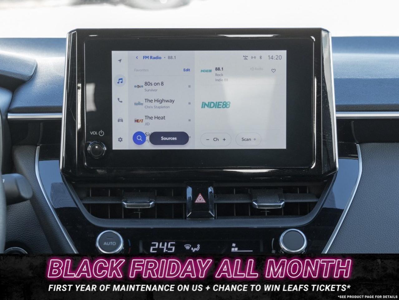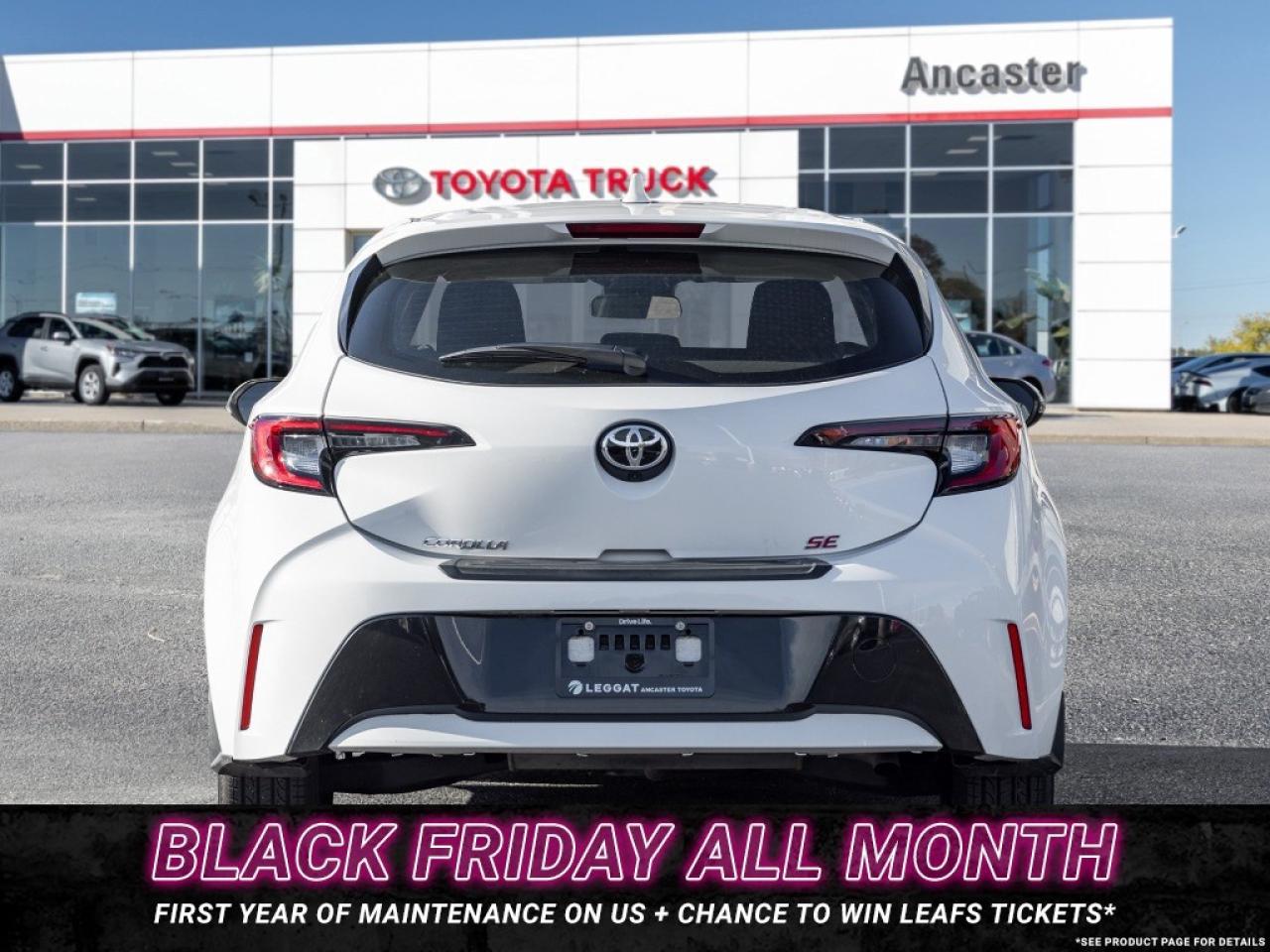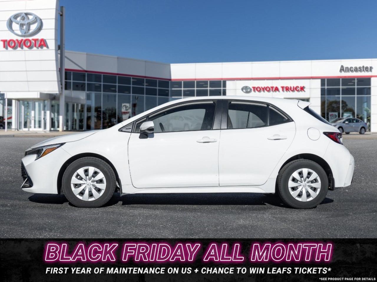 Discover stylish efficiency with the 2024 Toyota Corolla Base Hatchback. Finished in a bold White exterior colour complemented by Black cloth seating across its two-row cabin, standing on 15-inch wheels. Beneath the hood, youll find a 2.0 L 4-cylinder engine paired with a Continuously Variable Transmission (CVT) and front-wheel drive. Step inside and be impressed to find features including an 8-inch touchscreen display with wireless Apple CarPlay(r) & Android Auto(tm), Bluetooth hands-free connectivity, multiple USB-C ports, rear-view camera, power windows and door locks with remote keyless entry, automatic climate control, and so much more! Dont miss your chance to take home this 2024 Toyota Corolla Base Hatchback! SCHEDULE A TEST DRIVE TODAY!With our No-Haggle, No-Hassle purchase experience you get peace of mind knowing our best price is upfront.1-Guaranteed Minimum 50% Remaining Tire Tread Life2-Guaranteed Minimum 50% Life Remaining on Brakes3-120 Point Safety Inspection4-Free Carfax Canada Vehicle History Report5-Complete Lube, Oil, & Filter Change6-Full Detailed Clean UpAncaster Toyota is the proud recipient of the latest, highest honour for Canadian Toyota Retailers, the Toyota President's Award for Excellence in Customer Satisfaction, Sales, and Service! We are serving Ancaster, Hamilton, Burlington, Dundas, Brantford, Stoney Creek, Grimsby, Oakville, Mississauga, Milton, Cambridge, Kitchener Waterloo, Cayuga, Caledonia, St. Catharines, Welland, Niagara and the entire GHA and GTA Finance Price Shown. The cash purchase price slightly exceeds the advertised finance price, as we receive incentives from banks when we finance vehicles, which we pass on to customers. Recognizing the high demand for vehicles, which can raise prices, we utilize these incentives to lower the finance purchase price. Dealer reserves the right to decline cash purchases (cash, bank draft, certified cheque, credit card payments in excess of $1,000) at its sole and exclusive discretion. For Finance and Lease purchases Dealer charges a $999 finance/lease fee. While every reasonable effort is made to ensure the accuracy of all information on this site, we are not responsible for any errors or omissions. Please verify any information in question with a dealership sales manager prior to purchase. See dealer for full details. Black Friday Offer Details: Offer valid November 130, 2025, on the purchase of eligible used vehicles at participating Leggat dealerships. First Year of Maintenance includes one (1) initial oil change and one (1) oil change + tire rotation service. Maximum value of $300. Offer must be claimed within one year of purchase date. Eligible purchases also receive one (1) entry into the Maple Leafs ticket giveaway. Conditions apply. See dealer for details. Black Friday Offer Details: Offer valid November 130, 2025, on the purchase of eligible used vehicles at participating Leggat dealerships. First Year of Maintenance includes one (1) initial oil change and one (1) oil change + tire rotation service. Maximum value of $300. Offer must be claimed within one year of purchase date. Eligible purchases also receive one (1) entry into the Maple Leafs ticket giveaway. Conditions apply. See dealer for details.