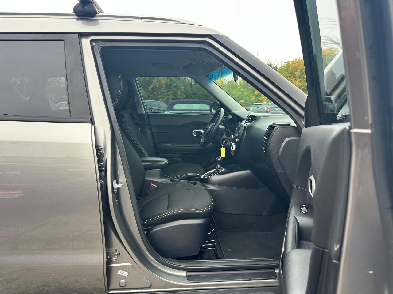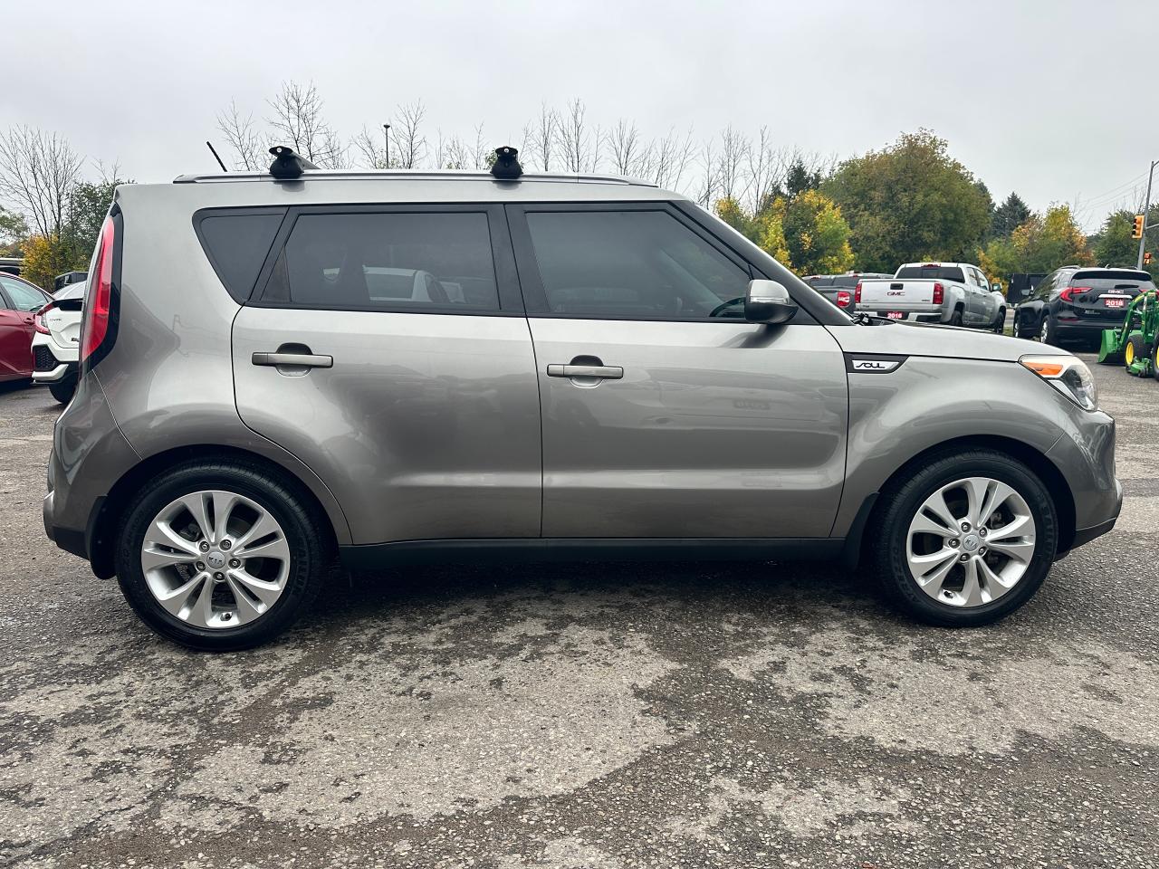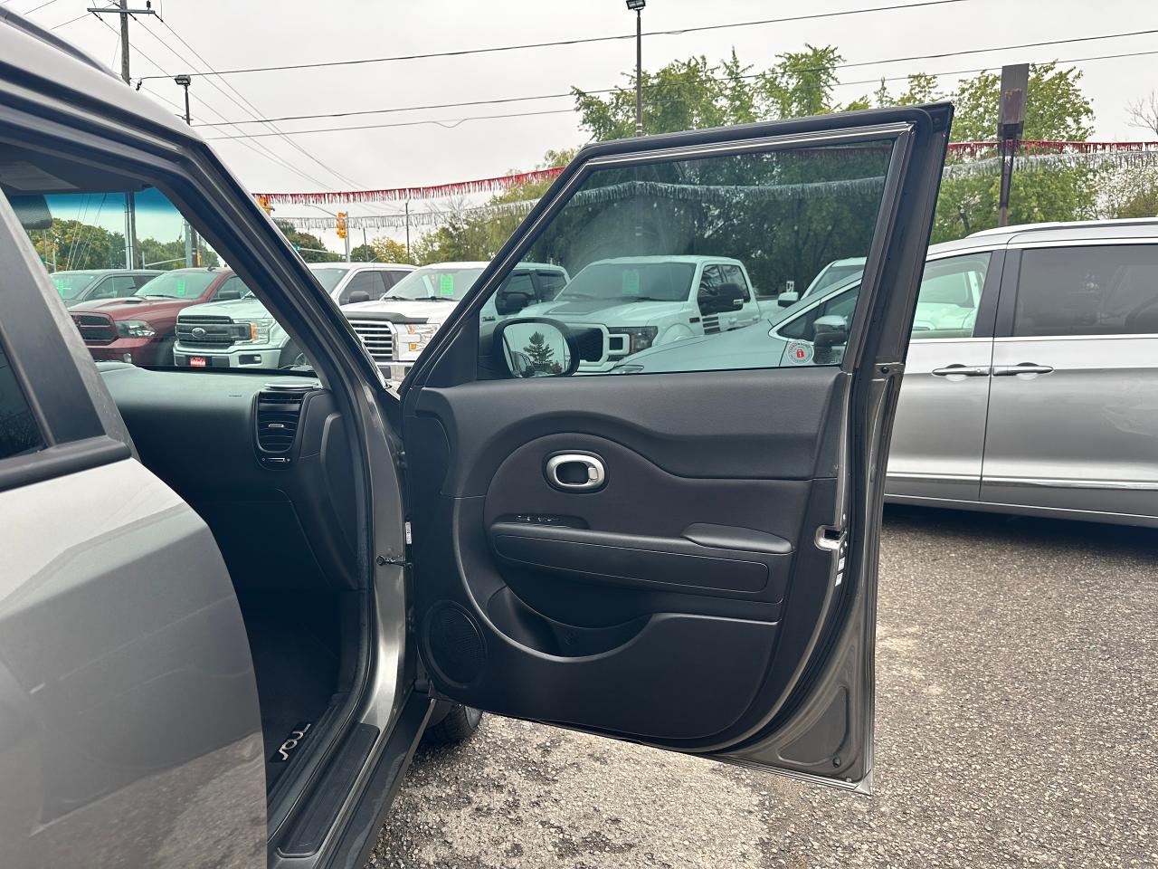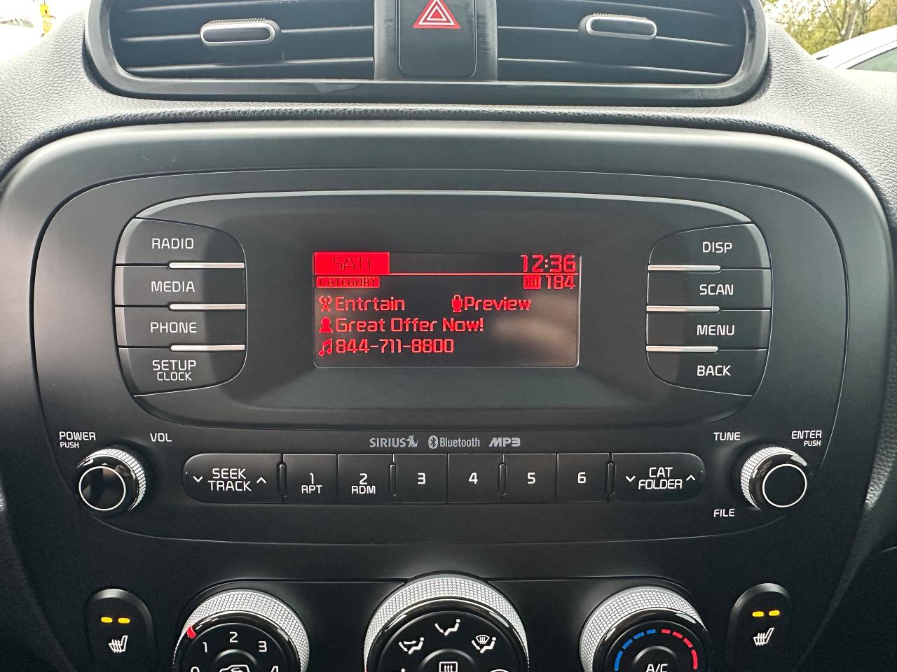 Super-Clean Trade-In Kia Soul from Cobourg, ON! This EX Auto model looks sharp in its Grey paint and factory alloy wheels, with nice options throughout! The exterior features keyless entry, headlights and foglights, colour-matched side mirrors with integrated turn signals, and tinted privacy glass, roof racks/rails, factory alloy wheels, a peppy fuel-efficient 2.0L 4-cylinder engine and an Automatic Transmission. The interior is clean and comfortable, with heated cloth front seats, power door locks, windows and mirrors, spacious rear seating and a large cargo area, steering wheel Audio and Cruise controls, an easy-to-read and use gauge cluster, central AM/FM/XM Satellite Radio with Bluetooth, and MP3 Capabilities, A/C Cliamte control with front and rear window defrost settings, Active ECO mode for improved fuel economy, USB/AUX/12V accessory ports and more!