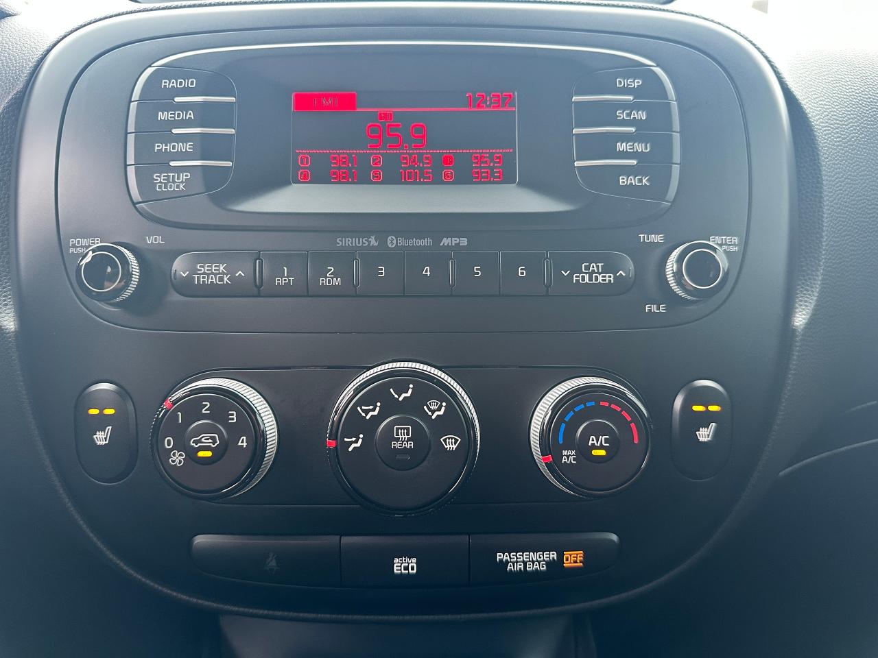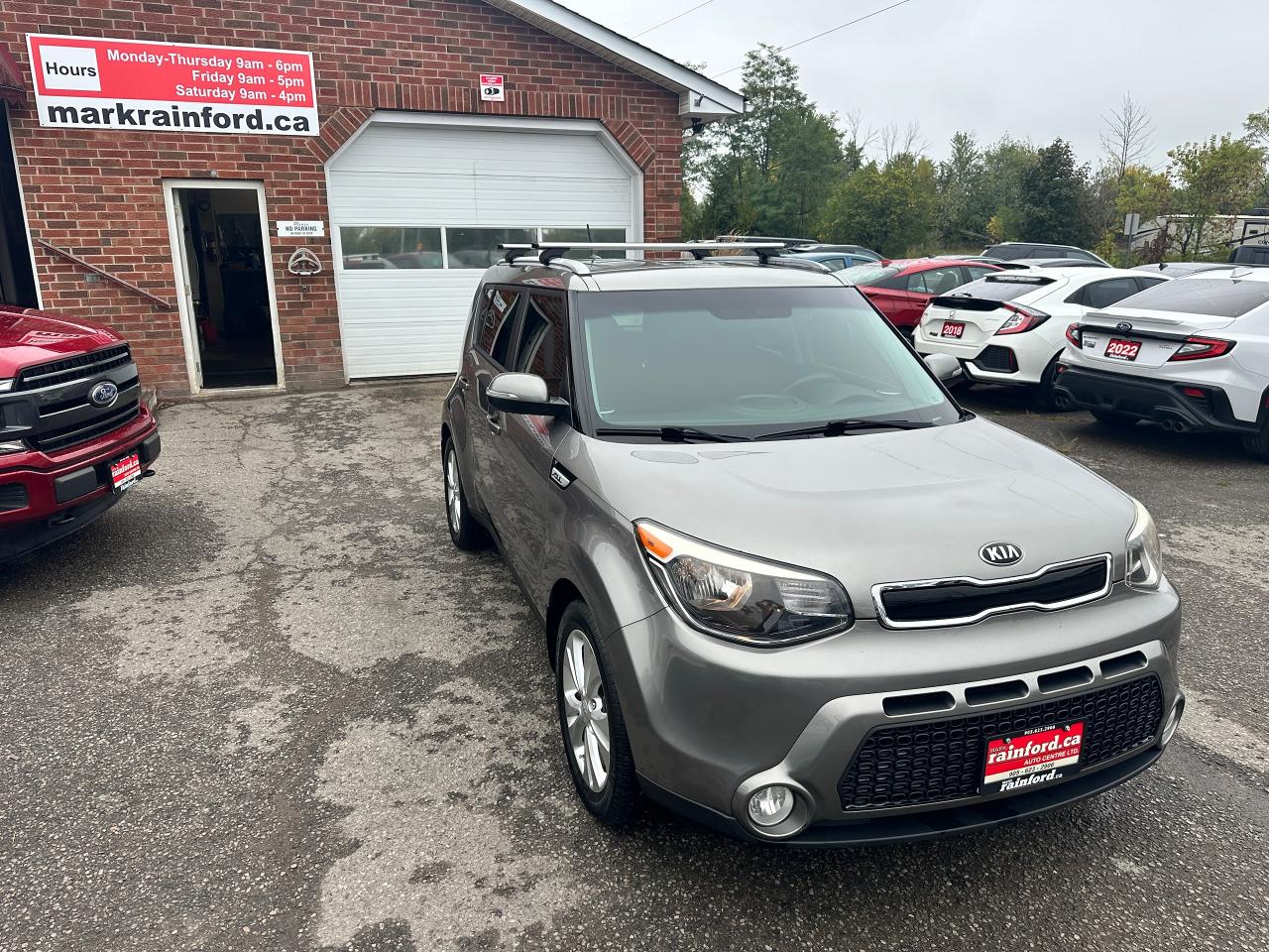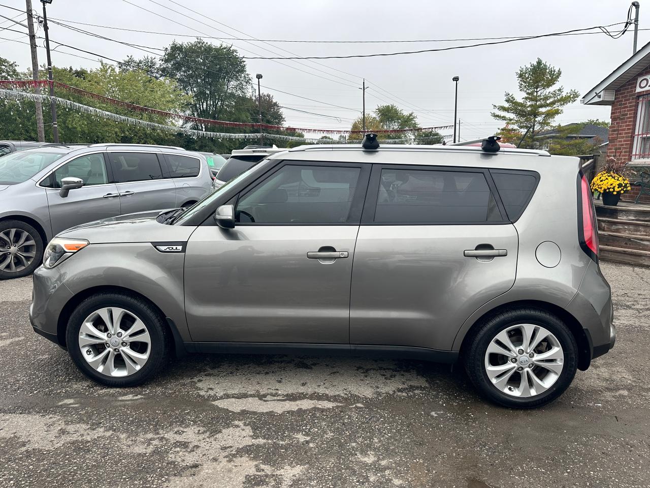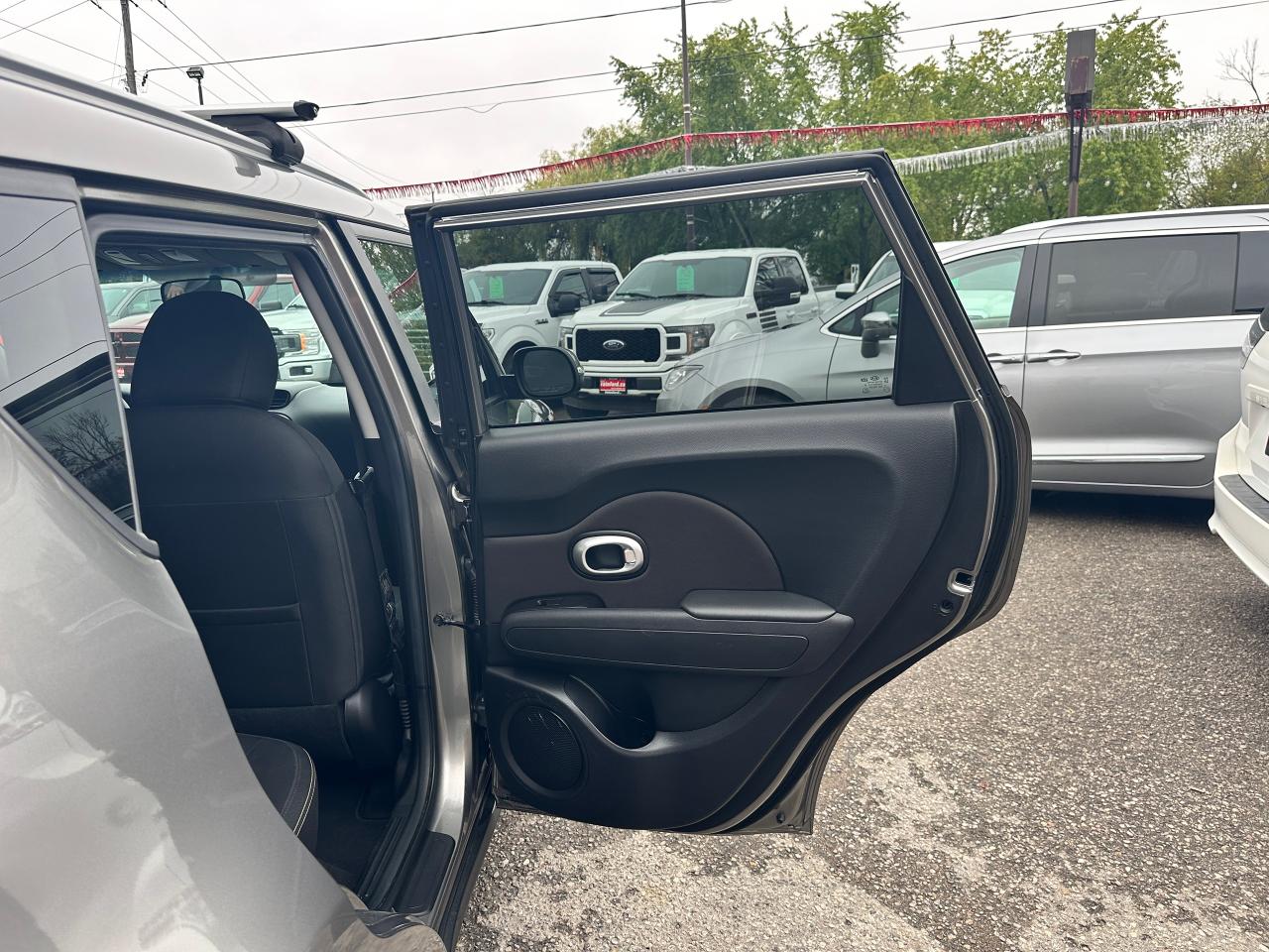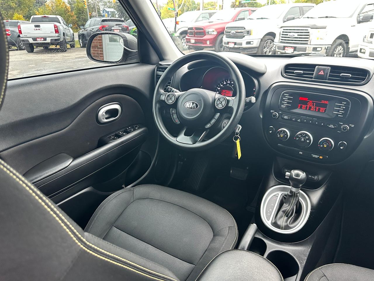 Super-Clean Trade-In Kia Soul from Cobourg, ON! This EX Auto model looks sharp in its Grey paint and factory alloy wheels, with nice options throughout! The exterior features keyless entry, headlights and foglights, colour-matched side mirrors with integrated turn signals, and tinted privacy glass, roof racks/rails, factory alloy wheels, a peppy fuel-efficient 2.0L 4-cylinder engine and an Automatic Transmission. The interior is clean and comfortable, with heated cloth front seats, power door locks, windows and mirrors, spacious rear seating and a large cargo area, steering wheel Audio and Cruise controls, an easy-to-read and use gauge cluster, central AM/FM/XM Satellite Radio with Bluetooth, and MP3 Capabilities, A/C Cliamte control with front and rear window defrost settings, Active ECO mode for improved fuel economy, USB/AUX/12V accessory ports and more!