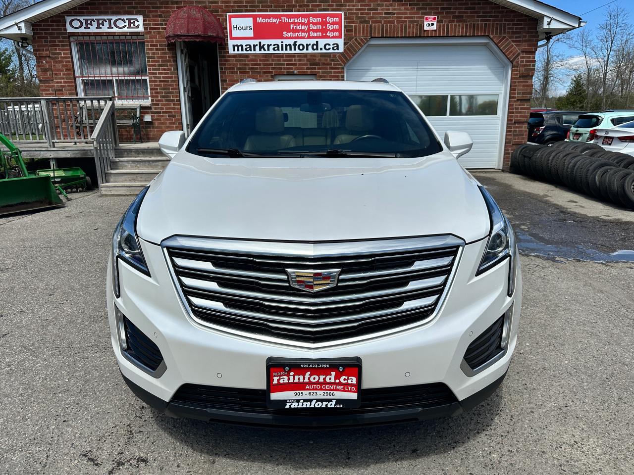 Clean and tidy Cadillac XT5 from Mississauga, ON! This Luxury FWD model is a real head turner in its Pearl White paint and factory alloy wheels, with nice options inside and out! The exterior features keyless entry with remote start and proximity keys, a remote power liftgate, automatic headlights, fog lights, colour-matched power folding side mirrors, blind spot monitor, parking sensors, a large panoramic sunroof, roof rack rails, tinted privacy glass, a sleek rear spoiler, chromed accents, sporty dual rear exhaust, gorgeous factory alloy wheels, a powerful 3.6L V6 Engine and Automatic transmission! The interior is clean and comfortable, with heated leather front seats with power adjustment, lumbar controls, and driver's memory settings, power door locks, windows and mirrors, a heated leather wrapped steering wheel with audio and cruise controls, an easy to read and use gauge cluster, push button start, a spacious and comfortable rear seating area, large cargo area with retractable shade, a large central touch screen AM/FM/XM Satellite HD Radio with Bluetooth, Apple CarPlay, Android Auto, Compass, and Backup Camera, Dual-Zone A/C climate control with front and rear window defrost settings, universal garage door opener, USB/AUX/12V accessory ports and more!