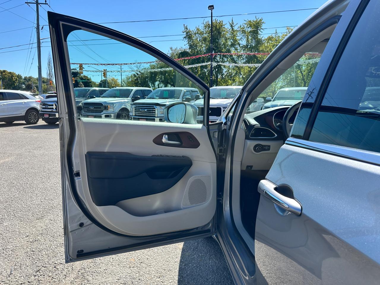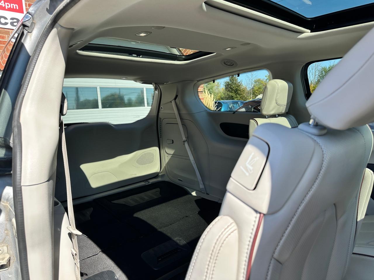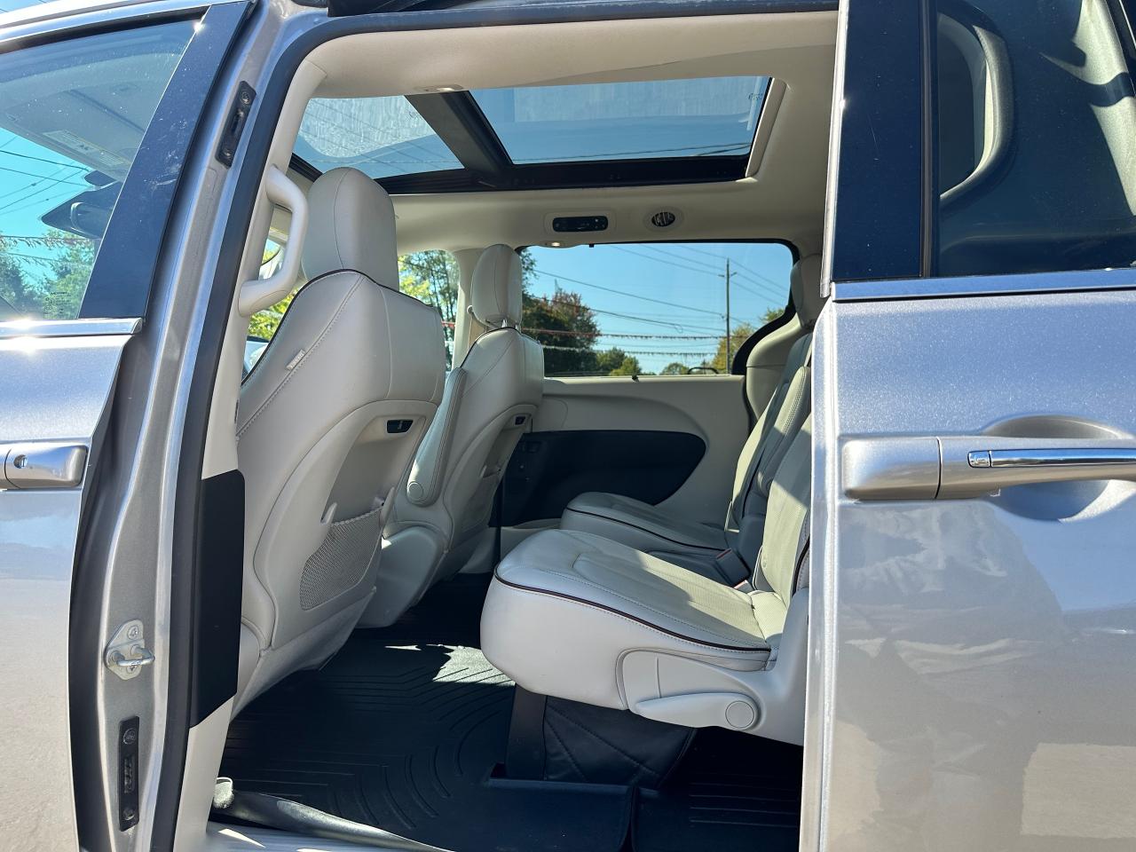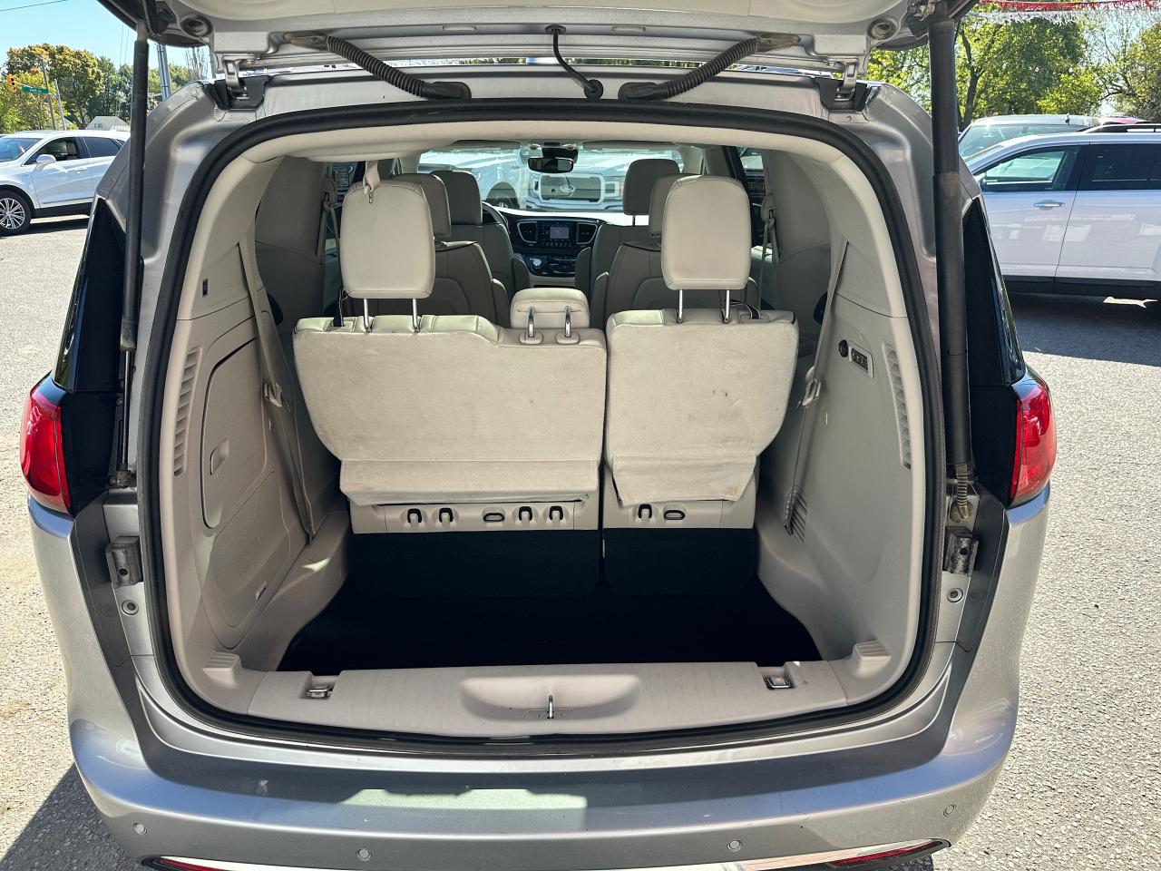 WOW! Super-Clean and Sharp-looking Chrysler Pacifica from Southampton, ON! This Limited 7-Passenger model looks amazing in its Silver paint and Accented Interior, with fantastic options inside and out! The exterior features keyless entry with remote start and proximity keys, remote power sliding doors and rear liftgate, a HUGE Panoramic Sunroof and Rear Moonroof, Automatic headlights, tinted privacy glass, driver assist systems including adaptive cruise controls, lane keeping assist, parking sensors and blind spot monitors, roof rack rails, a sleek rear spoiler, gorgeous factory alloy wheels, a powerful 3.6L V6 Engine and Automatic transmission! The interior is clean and comfortable with heated and cooled power adjustable front leather seats with lumbar controls and driver's memory settings, heated mid row seats and power stowing rear row, power door locks, windows and mirrors, a two-tone leather wrapped heated steering wheel with Audio and Cruise controls, push button start, a large central touch screen AM/FM/XM Satellite HD Radio with Bluetooth, Apple CarPlay, Android Auto, Navigation, SkyView Cameras and Backup Camera, Auto-Stop/Start Override button, Multi-Zone A/C climate control with front and rear window defrost settings, USB/AUX/12V accessory ports, universal garage door openers, and more! This Van has TONS of Features waiting for you to Discover!