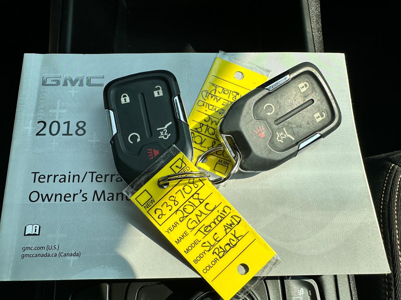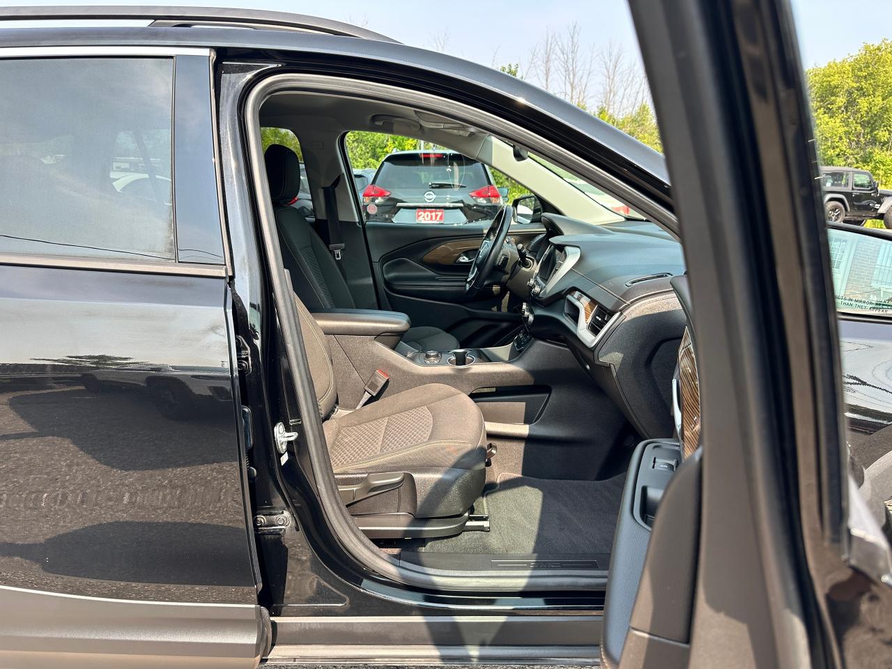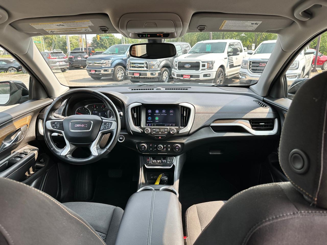 Calling All Commuters and Fuel Savers, SUPER-CLEAN LOW KM GMC Terrain from Belleville, ON! This SLE AWD Diesel model looks incredible in its Black paint and factory alloy wheels, with great options! The exterior features keyless entry with remote start and power remote liftgate, proximity keys, colour-matched side mirrors, tinted rear privacy glass, roof rack rails, automatic headlights, gorgeous split spoke factory alloy wheels, a fuel-efficient 1.6L 4-cylinder Turbo-Diesel Engine and Automatic transmission powering the All-Wheel-Drive system! The interior is clean and comfortable with heated cloth front seats with driver's power adjustment and lumbar control, power door locks, windows and mirrors, woodgrain interior trim, comfortable rear seating and a large cargo area, a leather wrapped steering wheel with Audio and Cruise controls, an easy to read and use gauge cluster, push button start, a large central touch screen AM/FM/XM Satellite Radio with Bluetooth, Navigation, Apple CarPlay, Android Auto, Backup Camera and MP3 capabilities, Dual-Zone A/C Climate control with front and rear window defrost settings, USB/AUX/USB-C/12V accessory ports, push button gear selection and more!Â