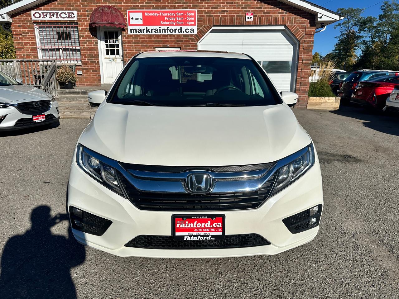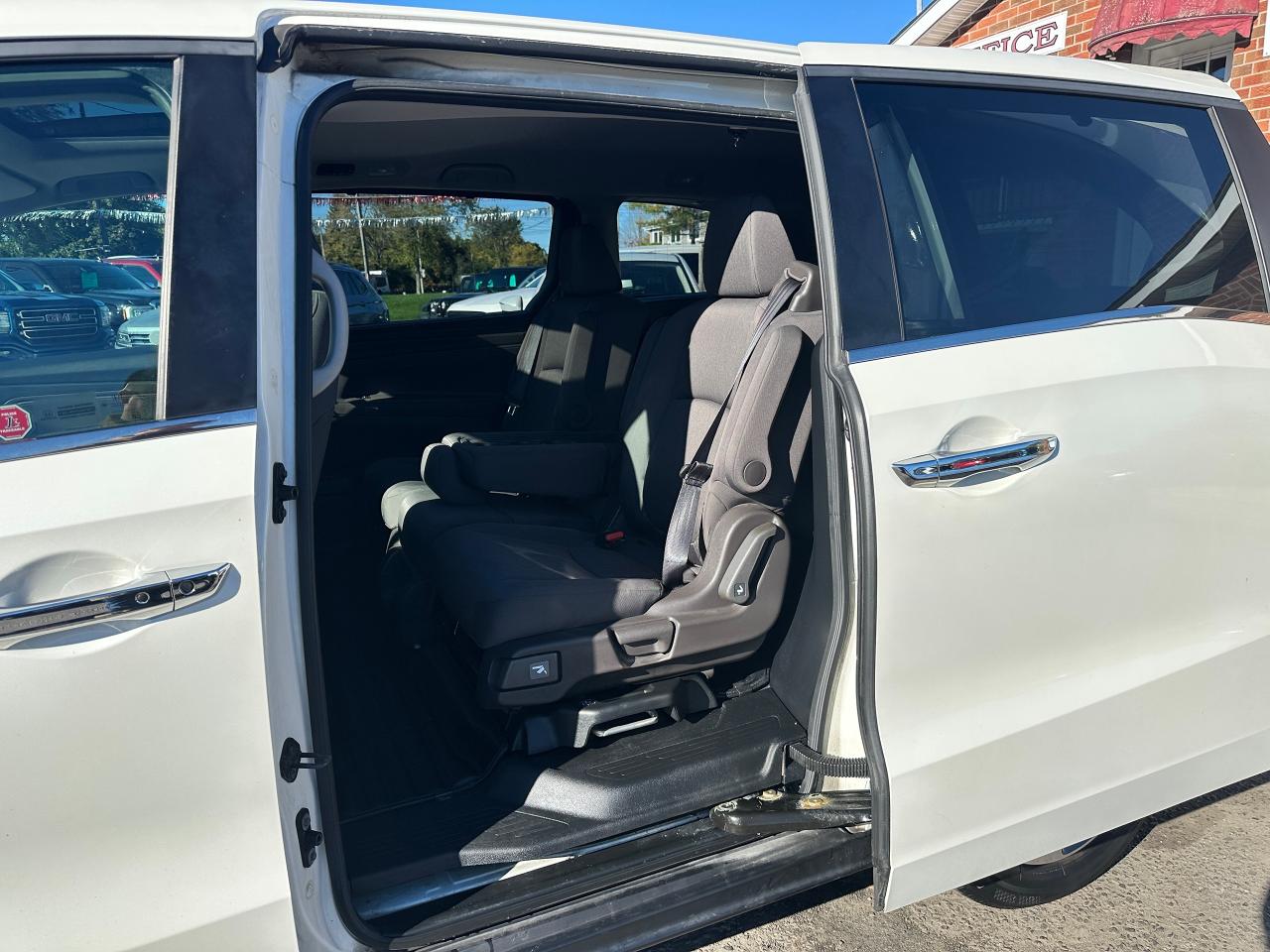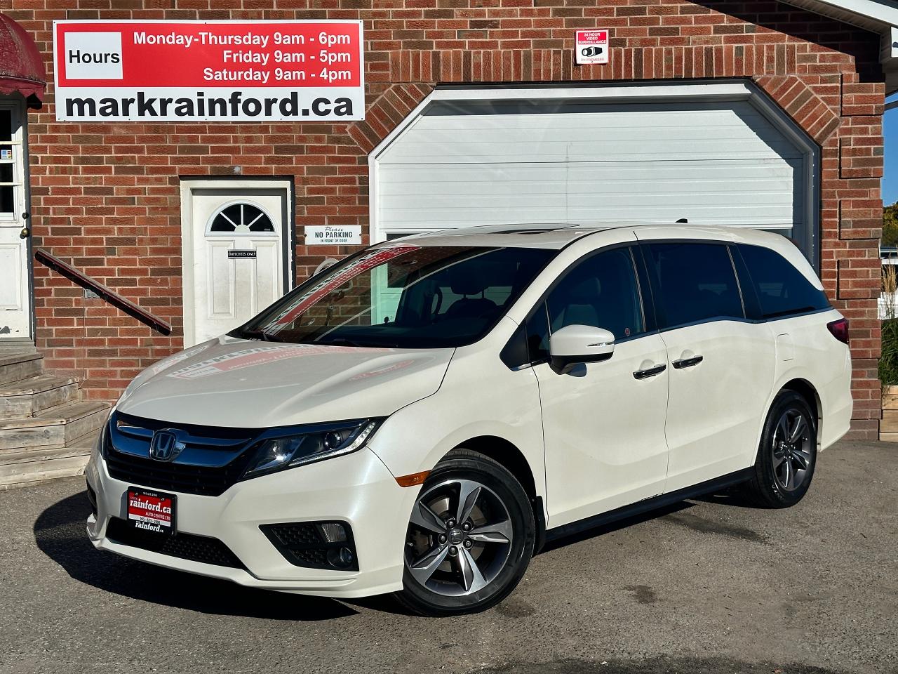 WOW! Super-Clean, well-maintained One-Owner Honda Odyssey from Markham, ON! This EX 8 Passenger model looks incredible in its Diamond White Paint and factory alloy wheels, with great options inside and out! the exterior features keyless entry with proximity keys and remote start, remote power sliding passenger doors, automatic headlights, foglights, adaptive cruise control, lane keep assist and forward collision system, a large factory power sunroof, colour-matched side mirrors with integrated turn signals and passenger side blind spot camera, tinted privacy glass, heated windshield, gorgeous machine finished alloy wheels with NEW All-Season tires, freshly installed, a smooth 3.5L V6 Engine and Automatic Transmission! The interior is clean and comfortable with room for the whole gang, heated cloth front seats with power adjustment and driver's lumbar control, fold-away third row seating, adjustable mid row with removable seats, power door locks, windows and mirrors, steering wheel mounted Audio, Cruise controls and paddle shifters, an easy to read and use gauge cluster, push button start, a large central touch screen AM/FM Radio with Bluetooth, Apple CarPlay, Android Auto, CD/MP3 Player, and Backup Camera, Multi-Zone climate control with front and rear window defrost settings, push button gear selection, SNOW/ECON Driving modes to fit your driving conditions, USB/AUX/12V accessory ports and more!