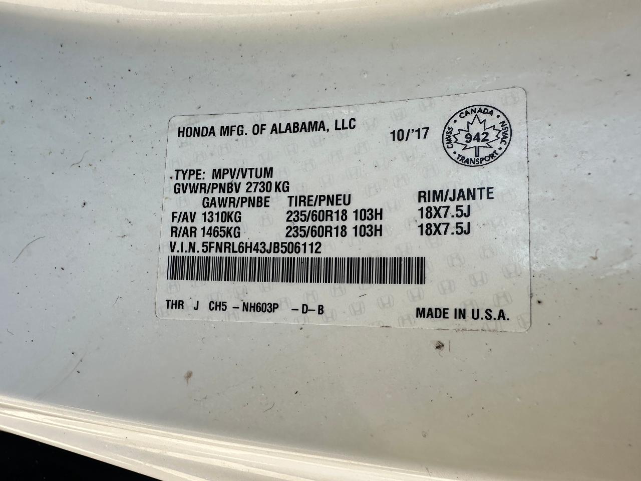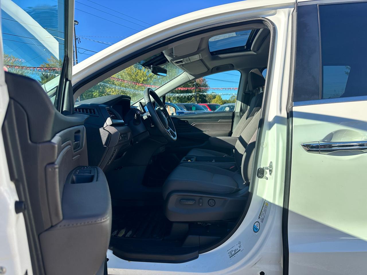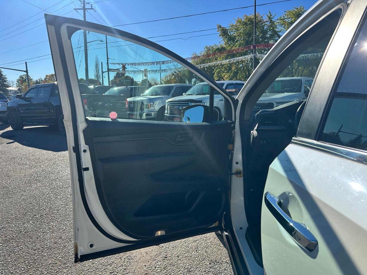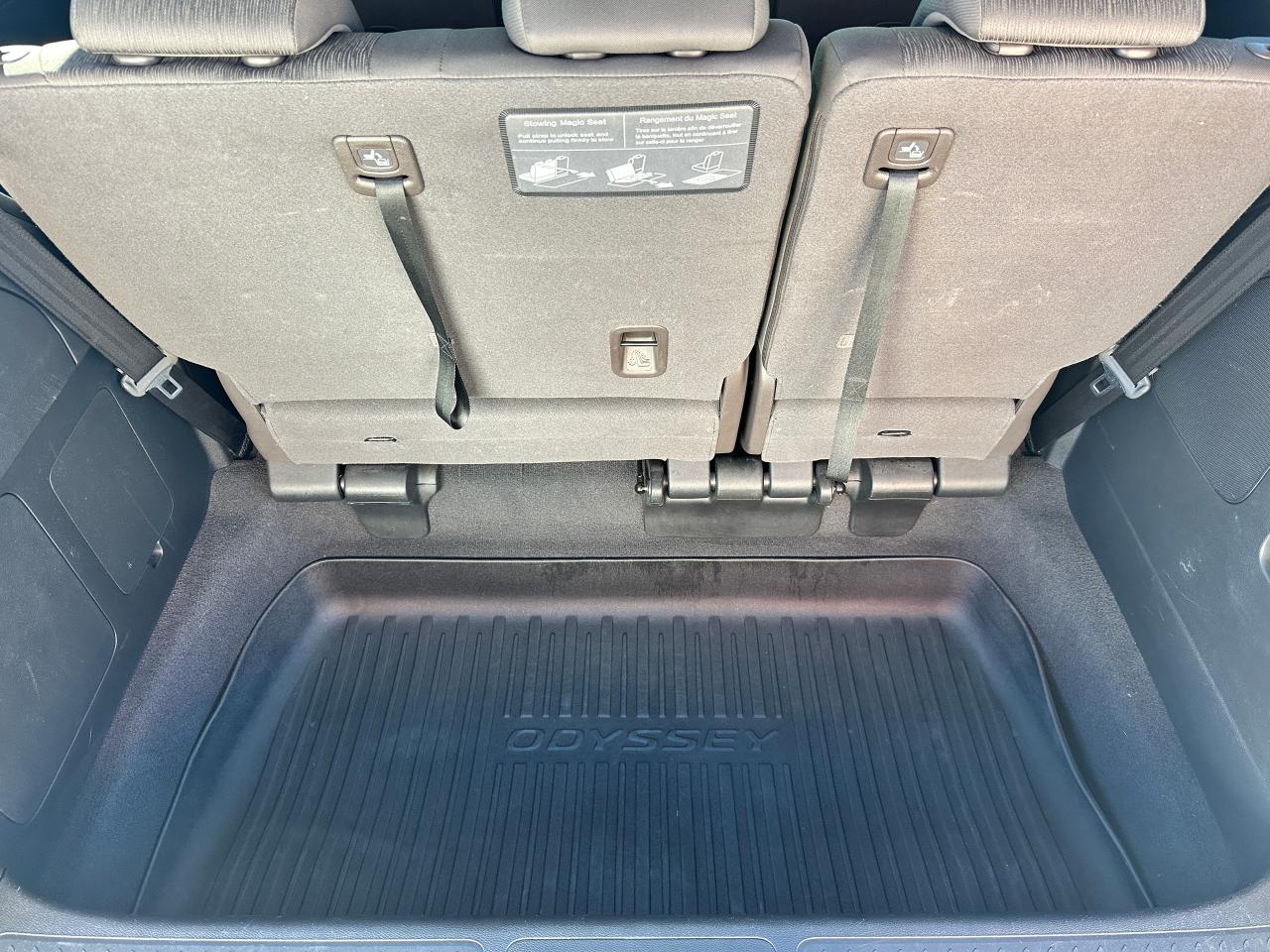 WOW! Super-Clean, well-maintained One-Owner Honda Odyssey from Markham, ON! This EX 8 Passenger model looks incredible in its Diamond White Paint and factory alloy wheels, with great options inside and out! the exterior features keyless entry with proximity keys and remote start, remote power sliding passenger doors, automatic headlights, foglights, adaptive cruise control, lane keep assist and forward collision system, a large factory power sunroof, colour-matched side mirrors with integrated turn signals and passenger side blind spot camera, tinted privacy glass, heated windshield, gorgeous machine finished alloy wheels with NEW All-Season tires, freshly installed, a smooth 3.5L V6 Engine and Automatic Transmission! The interior is clean and comfortable with room for the whole gang, heated cloth front seats with power adjustment and driver's lumbar control, fold-away third row seating, adjustable mid row with removable seats, power door locks, windows and mirrors, steering wheel mounted Audio, Cruise controls and paddle shifters, an easy to read and use gauge cluster, push button start, a large central touch screen AM/FM Radio with Bluetooth, Apple CarPlay, Android Auto, CD/MP3 Player, and Backup Camera, Multi-Zone climate control with front and rear window defrost settings, push button gear selection, SNOW/ECON Driving modes to fit your driving conditions, USB/AUX/12V accessory ports and more!