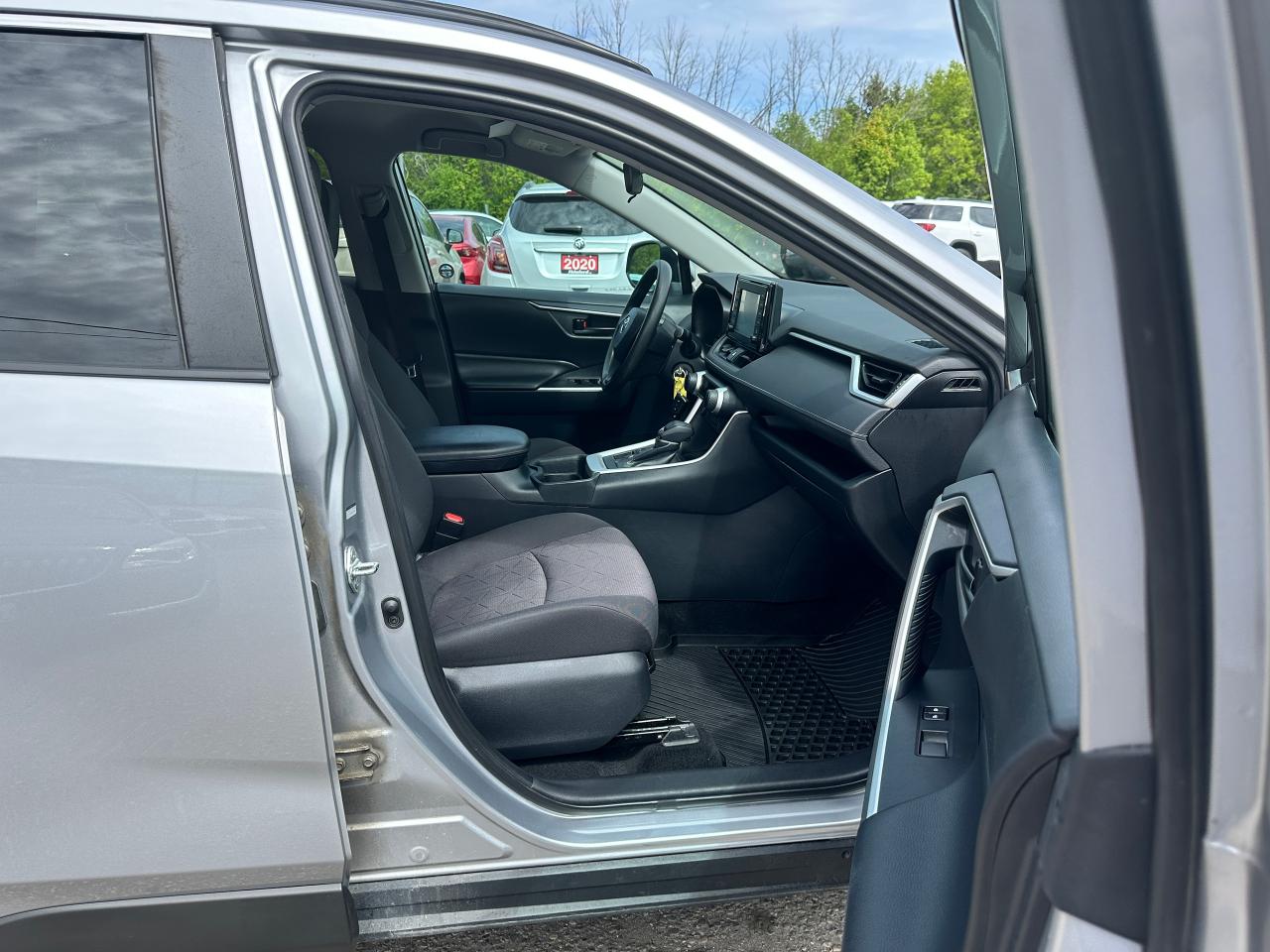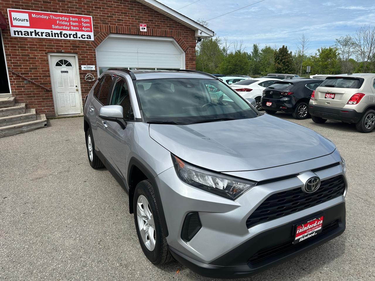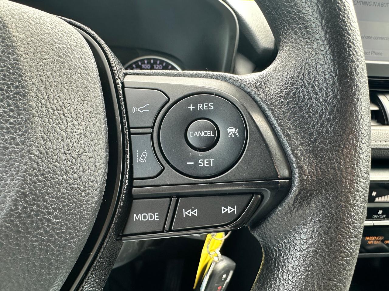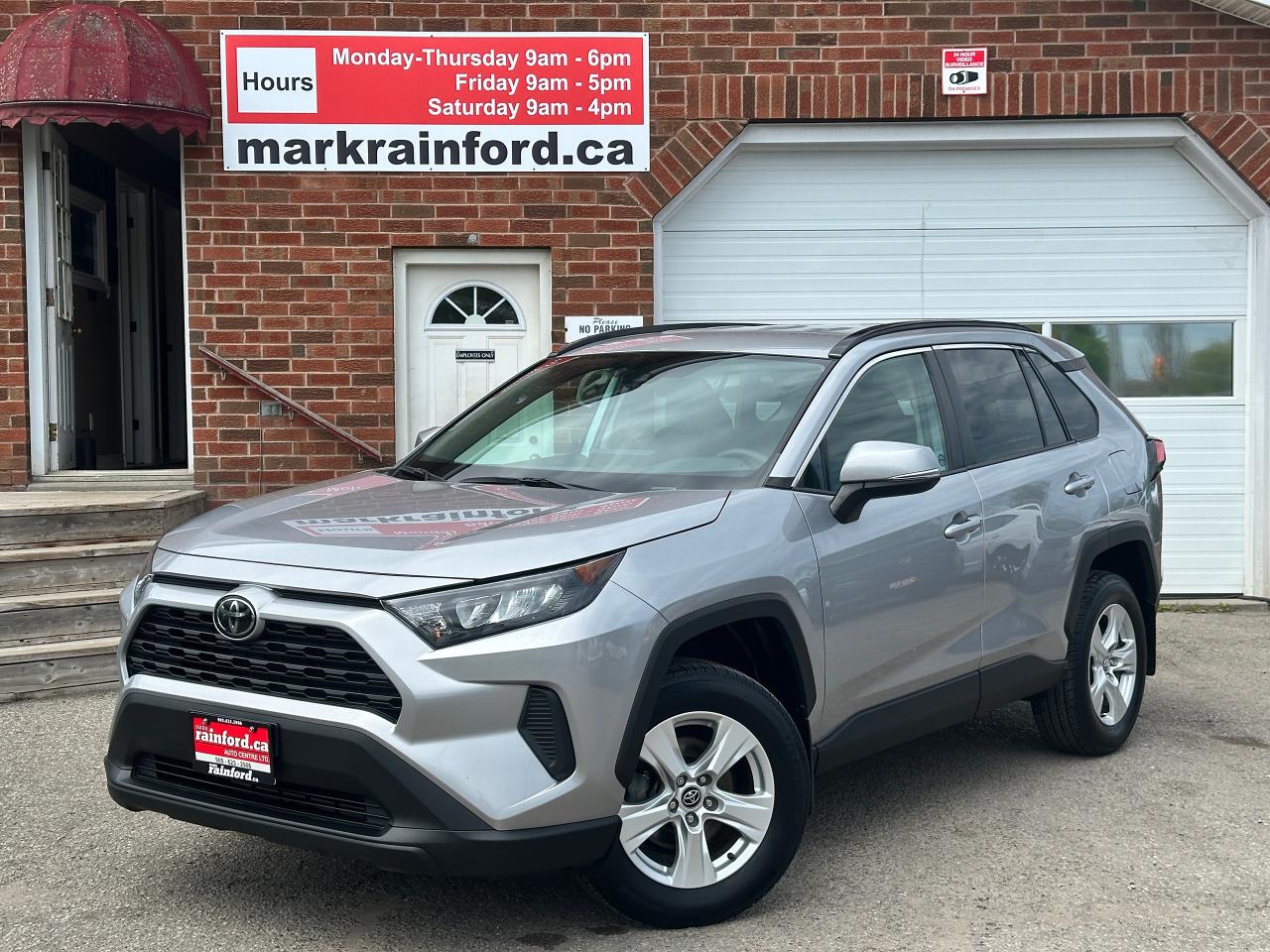Super-Clean Toyota RAV4 from Markham, ON! This LE AWD model looks great inside and out, and comes with some great options and driver assist settings! The exterior features keyless entry, automatic headlights and automatic highbeams, colour-matched side mirrors with integrated turn signals, blind spot monitor, lane departure assist, adaptive radar cruise control, roof rack rails, tinted rear privacy glass, a sleek rear spoiler and sporty dual exhaust, factory alloy wheels, sharp exterior styling, a peppy 2.5L 4-Cylinder Engine and Automatic Transmission powering the All-Wheel-Drive System! The interior is clean and comfortable with heated cloth front seats, all-weather and carpeted Toyota floor mats, spacious rear seating and cargo area, power door locks, windows and mirrors, heated windscreen wiper area, steering wheel audio and cruise controls, an easy-to-read and use gauge cluster, a large central touch screen AM/FM Radio with Bluetooth, SmartPhone projection, and Backup Camera, A/C climate control with front and rear window defrost settings, ECO/Sport Drive modes and multiple Terrain settings, USB/AUX/12V accessory ports and more!