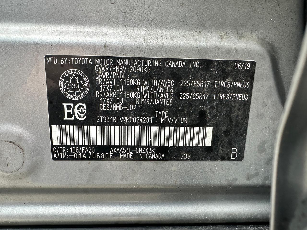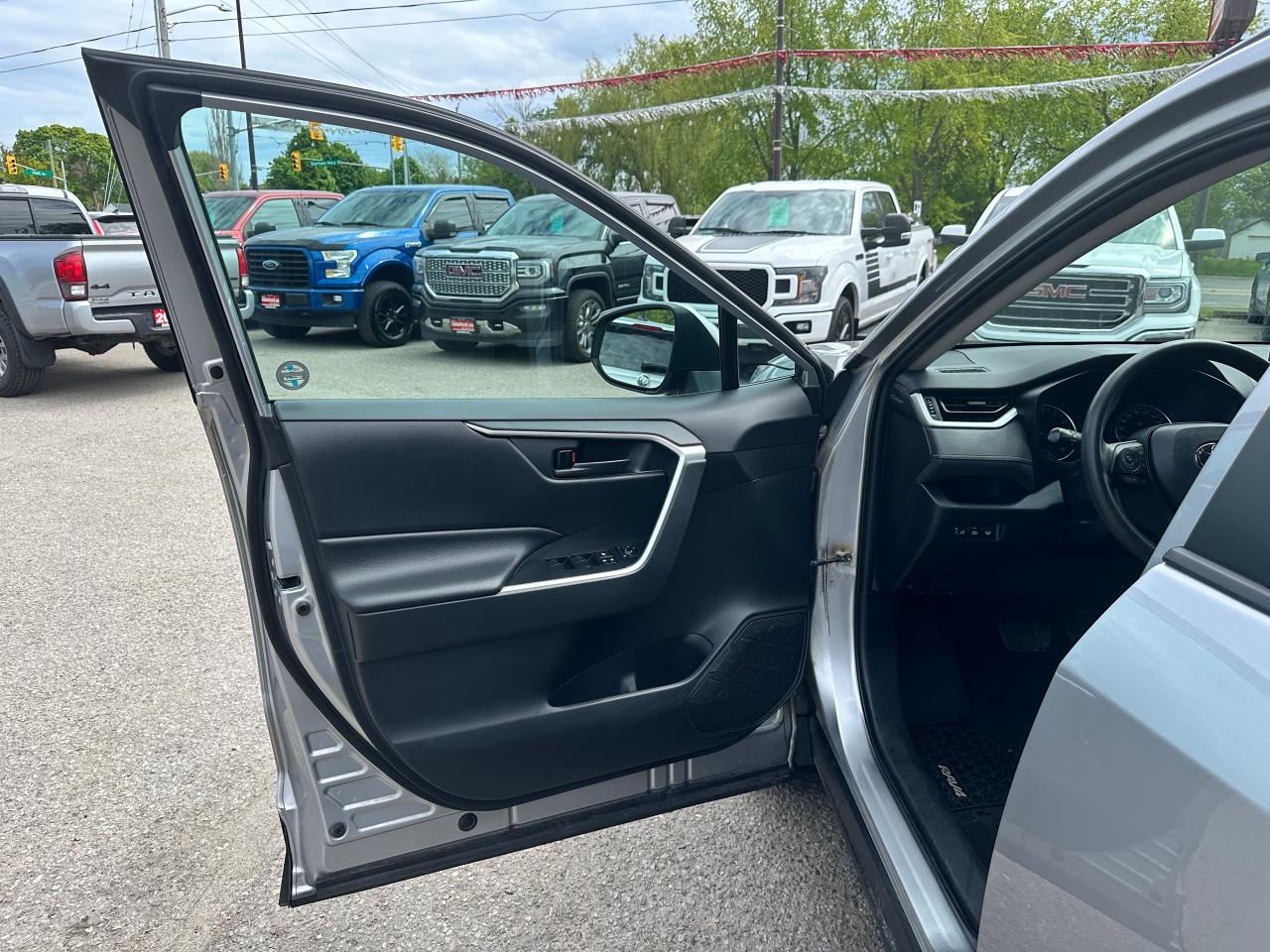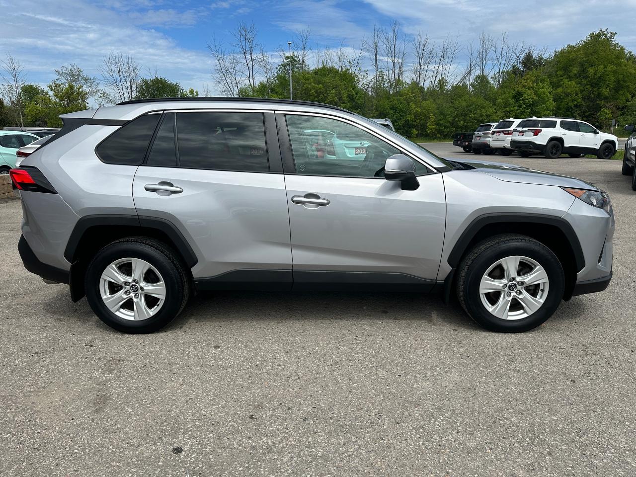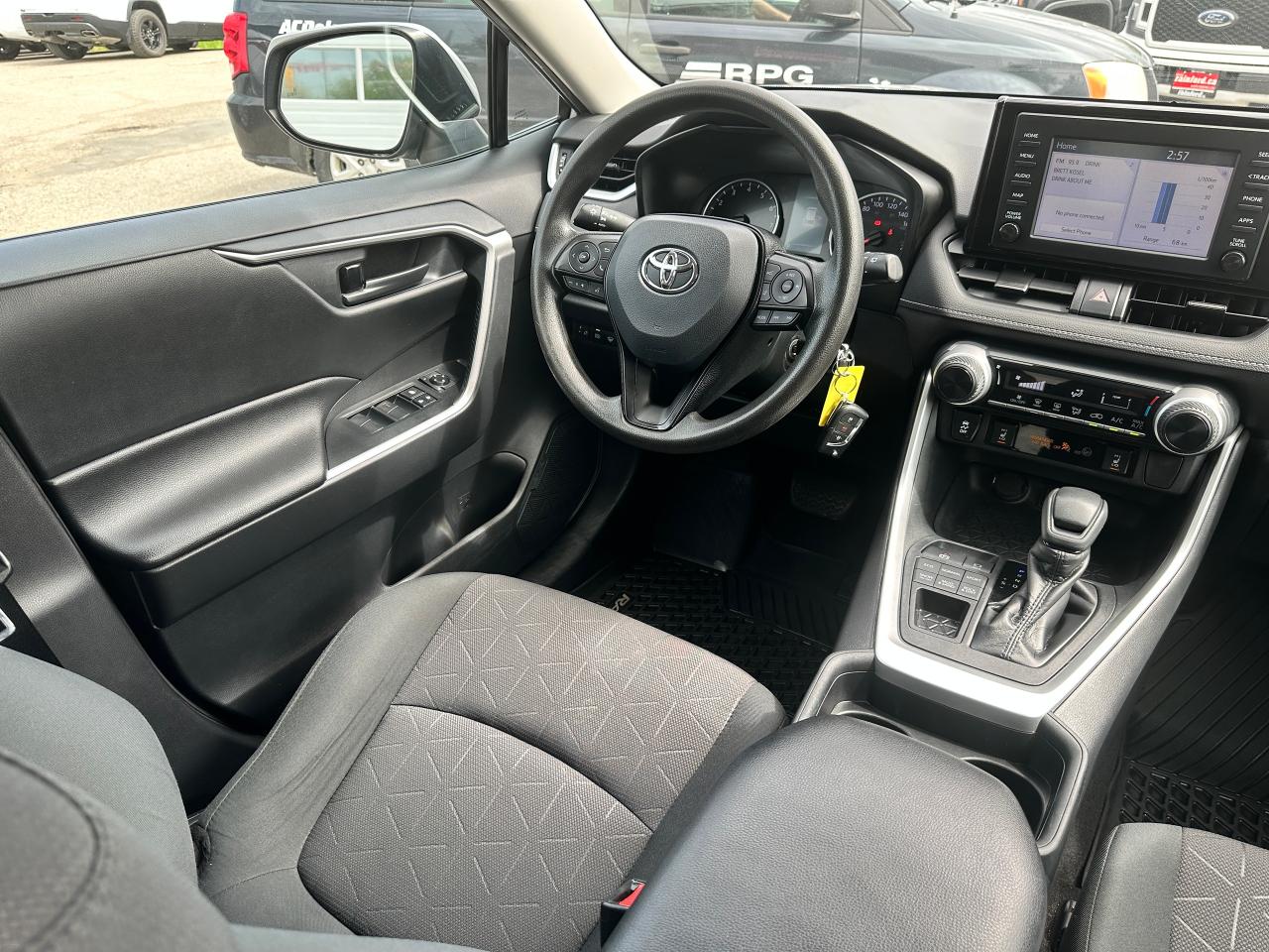 Super-Clean Toyota RAV4 from Markham, ON! This LE AWD model looks great inside and out, and comes with some great options and driver assist settings! The exterior features keyless entry, automatic headlights and automatic highbeams, colour-matched side mirrors with integrated turn signals, blind spot monitor, lane departure assist, adaptive radar cruise control, roof rack rails, tinted rear privacy glass, a sleek rear spoiler and sporty dual exhaust, factory alloy wheels, sharp exterior styling, a peppy 2.5L 4-Cylinder Engine and Automatic Transmission powering the All-Wheel-Drive System! The interior is clean and comfortable with heated cloth front seats, all-weather and carpeted Toyota floor mats, spacious rear seating and cargo area, power door locks, windows and mirrors, heated windscreen wiper area, steering wheel audio and cruise controls, an easy-to-read and use gauge cluster, a large central touch screen AM/FM Radio with Bluetooth, SmartPhone projection, and Backup Camera, A/C climate control with front and rear window defrost settings, ECO/Sport Drive modes and multiple Terrain settings, USB/AUX/12V accessory ports and more!