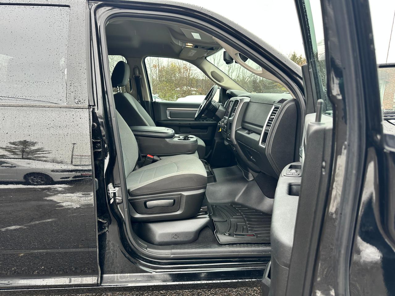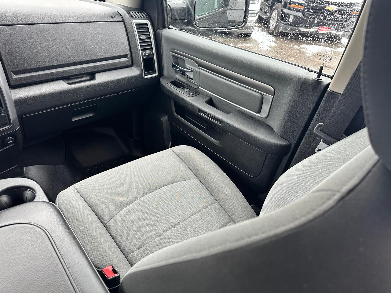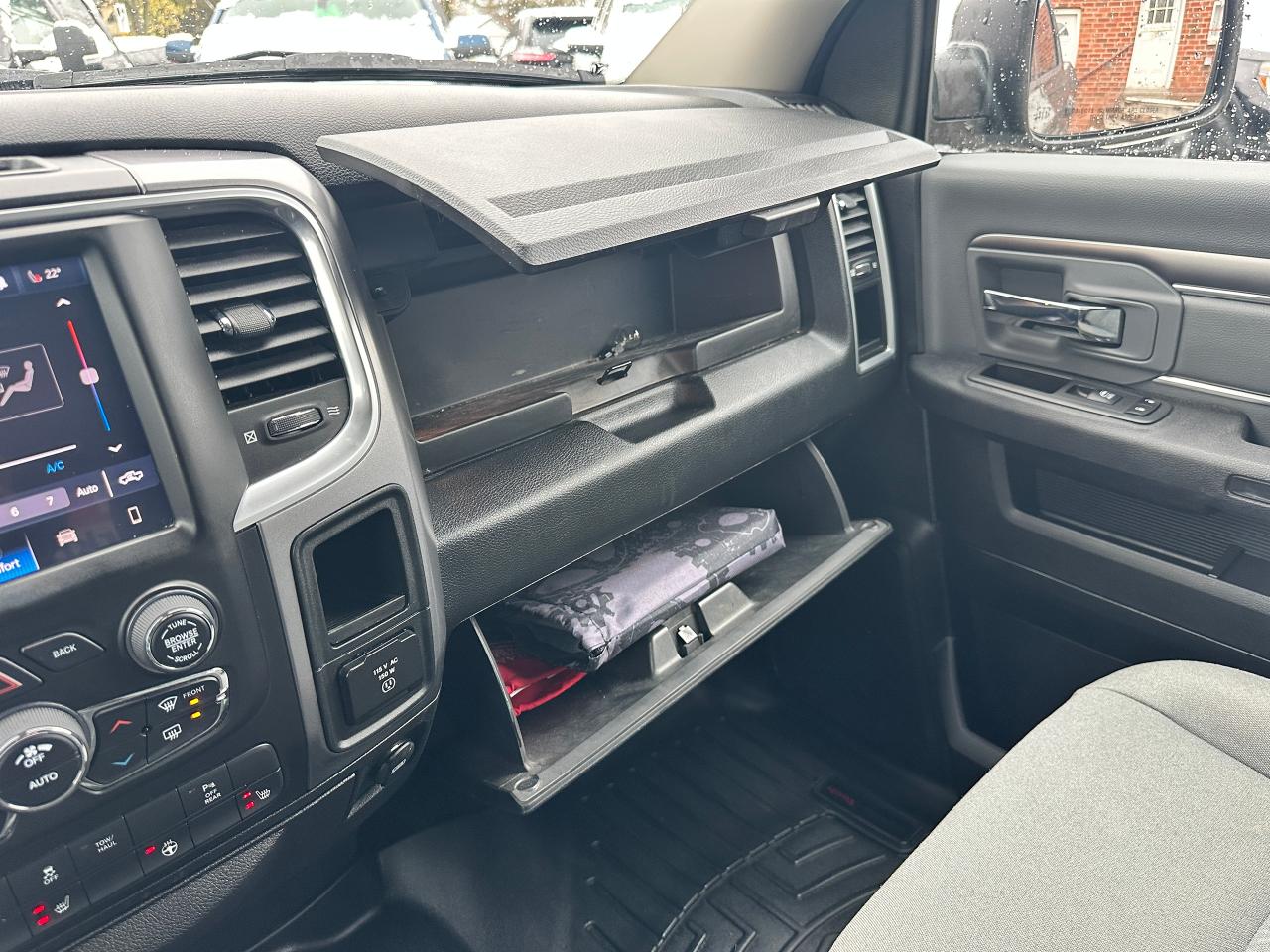 Super-Clean, One-Owner RAM 1500 from North York, ON! This Classic SLT 4x4 Crew Cab looks sharp in its timeless Black/Black colour scheme, with great convenience options inside and out! The exterior features keyless entry with remote start, automatic headlights, foglights, power folding heated side mirrors with integrated turn signals, tinted rear privacy glass and a power sliding rear window, a trailer hitch, parking sensors, a hard folding tonneau cover, gorgeous Black factory alloy wheels, a powerful 3.6L V6 Engine and an Automatic transmission driving the 4x4 system! The interior is clean and comfortable with seating for 6 through its heated front seats with driver's power adjustment and lumbar controls, fold-up centre console, and comfortable and spacious rear seating, all-weather floor mats front and rear, power door locks, mirrors and windows, a heated leather wrapped steering wheel with Audio and Cruise controls, an easy to read and use gauge cluster, gear selection knob and electronic 4x4 selection buttons, a large central touch screen AM/FM/XM Satellite Radio with Bluetooth, Apple CarPlay, Android Auto, Climate Creen and Backup Camera, Dual-Zone A/C climate controls with front and rear window defrost settings, Tow/Haul mode, USB/AUX/12V accessory ports, Universal Garage Door openers, and more!
