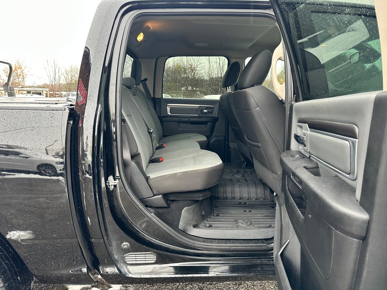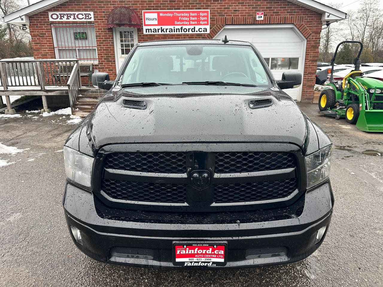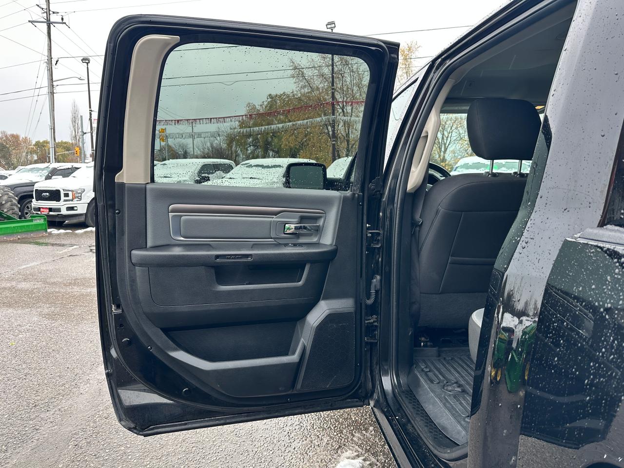 Super-Clean, One-Owner RAM 1500 from North York, ON! This Classic SLT 4x4 Crew Cab looks sharp in its timeless Black/Black colour scheme, with great convenience options inside and out! The exterior features keyless entry with remote start, automatic headlights, foglights, power folding heated side mirrors with integrated turn signals, tinted rear privacy glass and a power sliding rear window, a trailer hitch, parking sensors, a hard folding tonneau cover, gorgeous Black factory alloy wheels, a powerful 3.6L V6 Engine and an Automatic transmission driving the 4x4 system! The interior is clean and comfortable with seating for 6 through its heated front seats with driver's power adjustment and lumbar controls, fold-up centre console, and comfortable and spacious rear seating, all-weather floor mats front and rear, power door locks, mirrors and windows, a heated leather wrapped steering wheel with Audio and Cruise controls, an easy to read and use gauge cluster, gear selection knob and electronic 4x4 selection buttons, a large central touch screen AM/FM/XM Satellite Radio with Bluetooth, Apple CarPlay, Android Auto, Climate Creen and Backup Camera, Dual-Zone A/C climate controls with front and rear window defrost settings, Tow/Haul mode, USB/AUX/12V accessory ports, Universal Garage Door openers, and more!