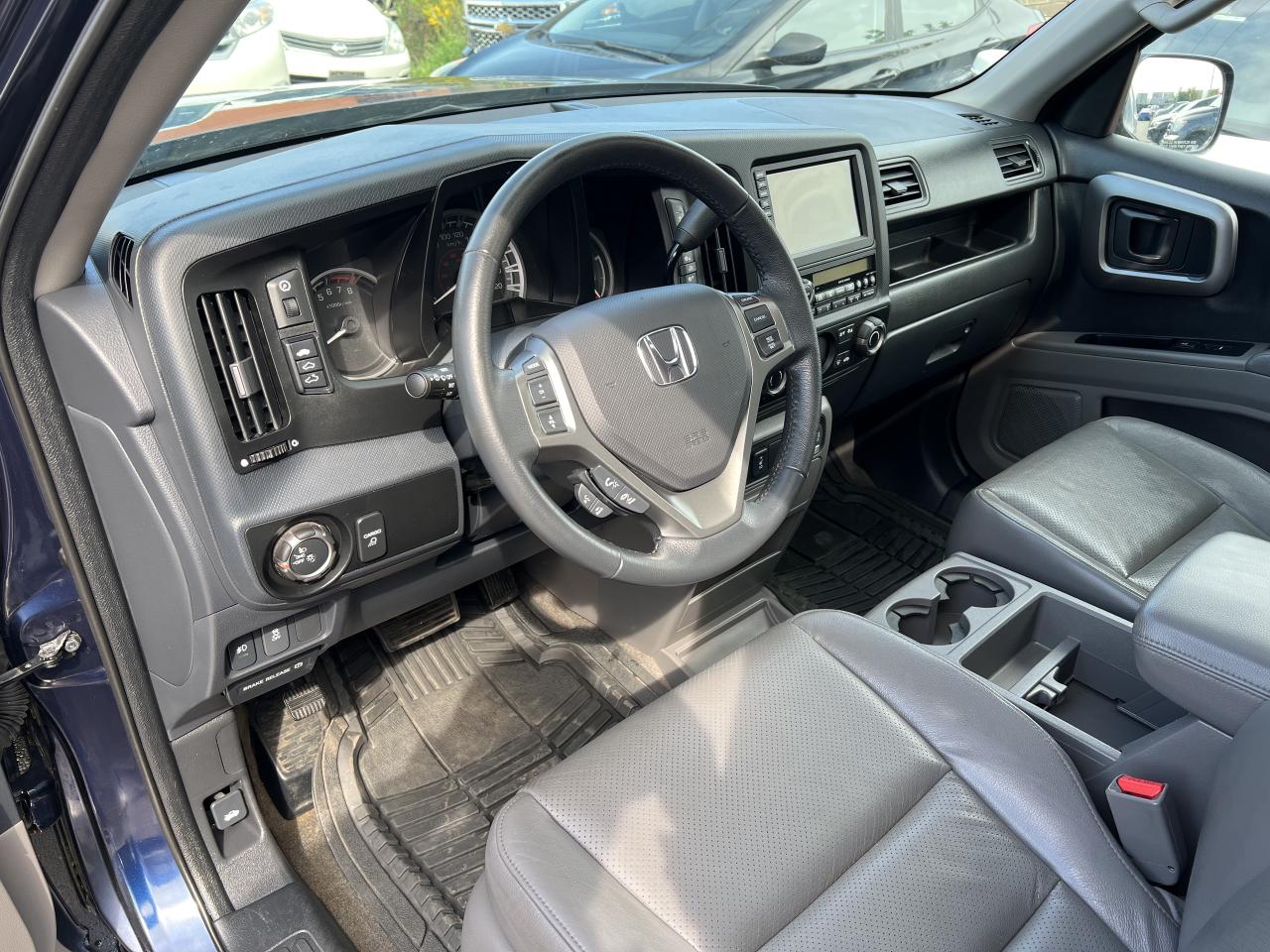 JUST ARRIVED! LOW KM!! ONE OWNER! NO ACCIDENTS! TIMING BELT REPLACED AT 84,612 KM. ONLY HAS 103,335 KM! REGULARLY SERVICED AT HONDA! Beautiful Blue on Grey Leather Interior 2014 Honda Ridgeline TOURING 4WD! Clean in and out. Runs great. No issues. FULLY LOADED with Navigation System, Backup Camera, Bluetooth, Remote Starter, Keyless Entry, Heated Seats, Power Driver Seat, Sunroof, Alloy Wheels, Fog Lights, A/C, CD/AUX, Trailer Hitch, Roof Rack, Tonneau Cover, Steering Wheel Audio, Phone, and Cruise Controls!