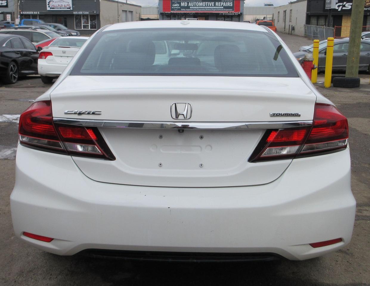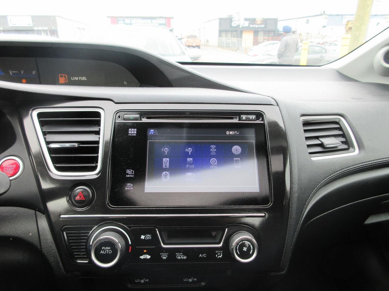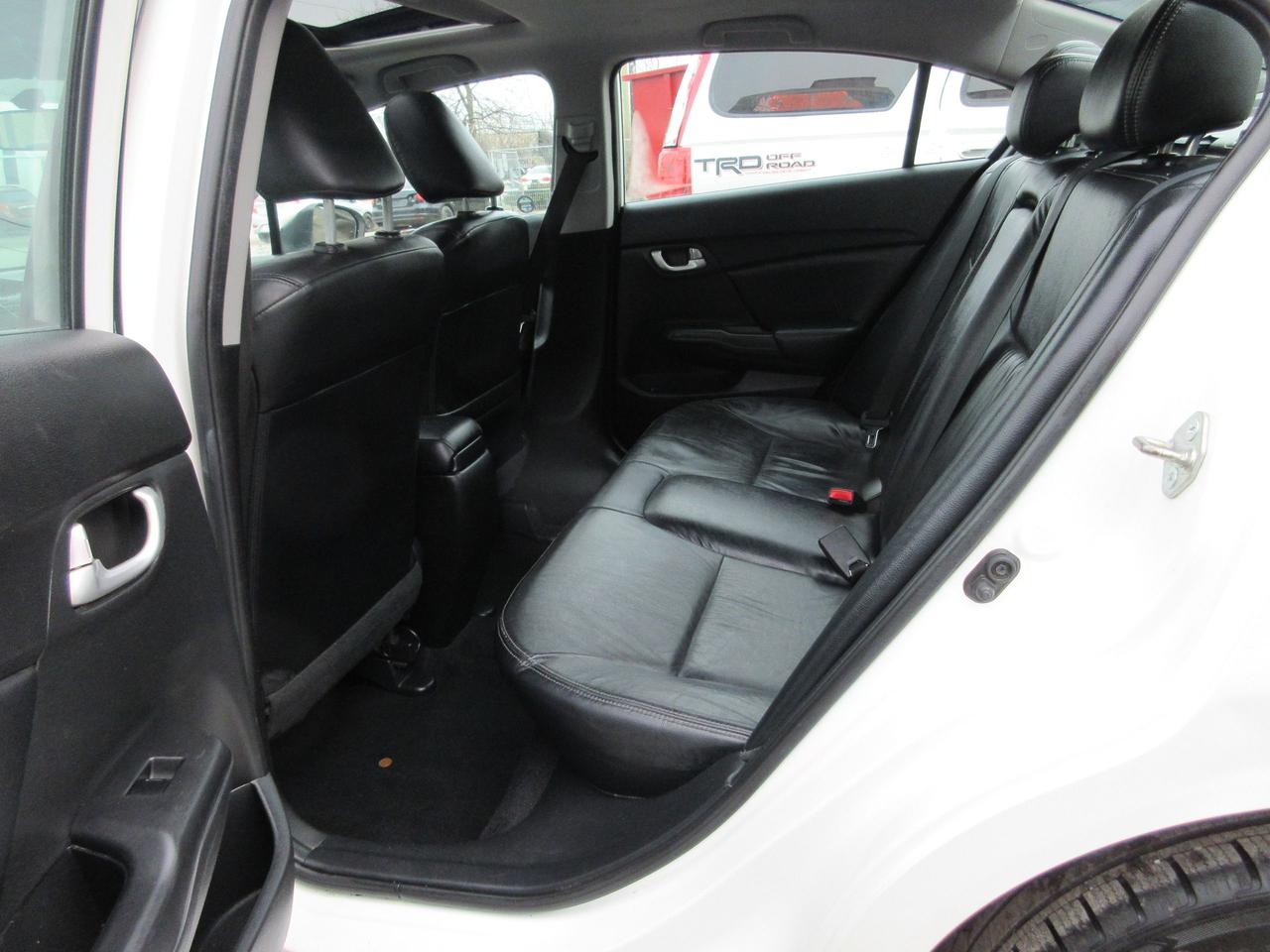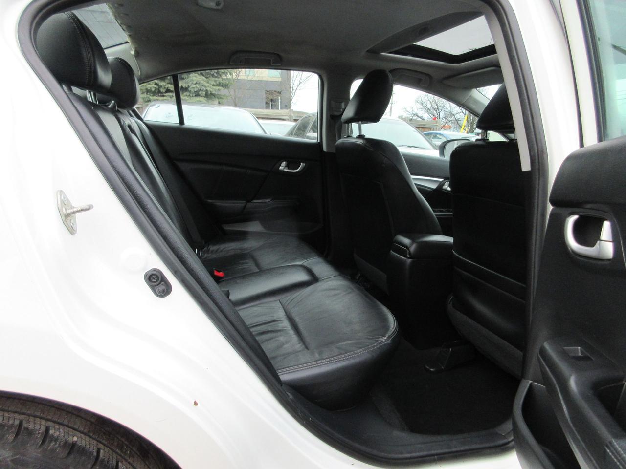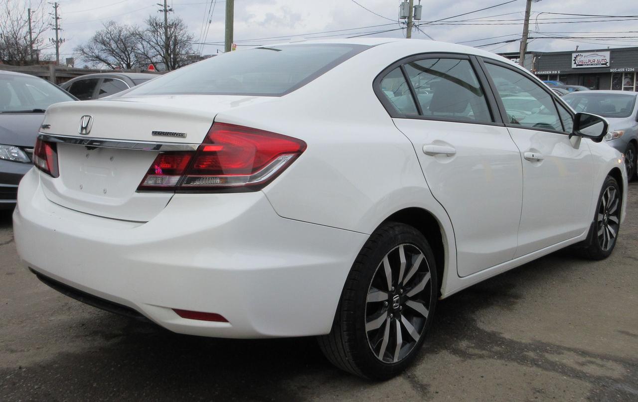 2015 HONDA CIVIC TOURING TRIM HAS FEATURES OF REARVIEW CAMERA, TURN SIGNAL SIDE VIEW CAMERA, LEATHER AND HEATED SEATS, BLUETOOTH, SUNROOF, ALLOY WHEELS, KEYLESS ENTRY, PUSH BUTTON START, NAVIGATION, POWER DRIVER SEAT, COMES CERTIFIED AND LICENSING, HST WILL APPLY.