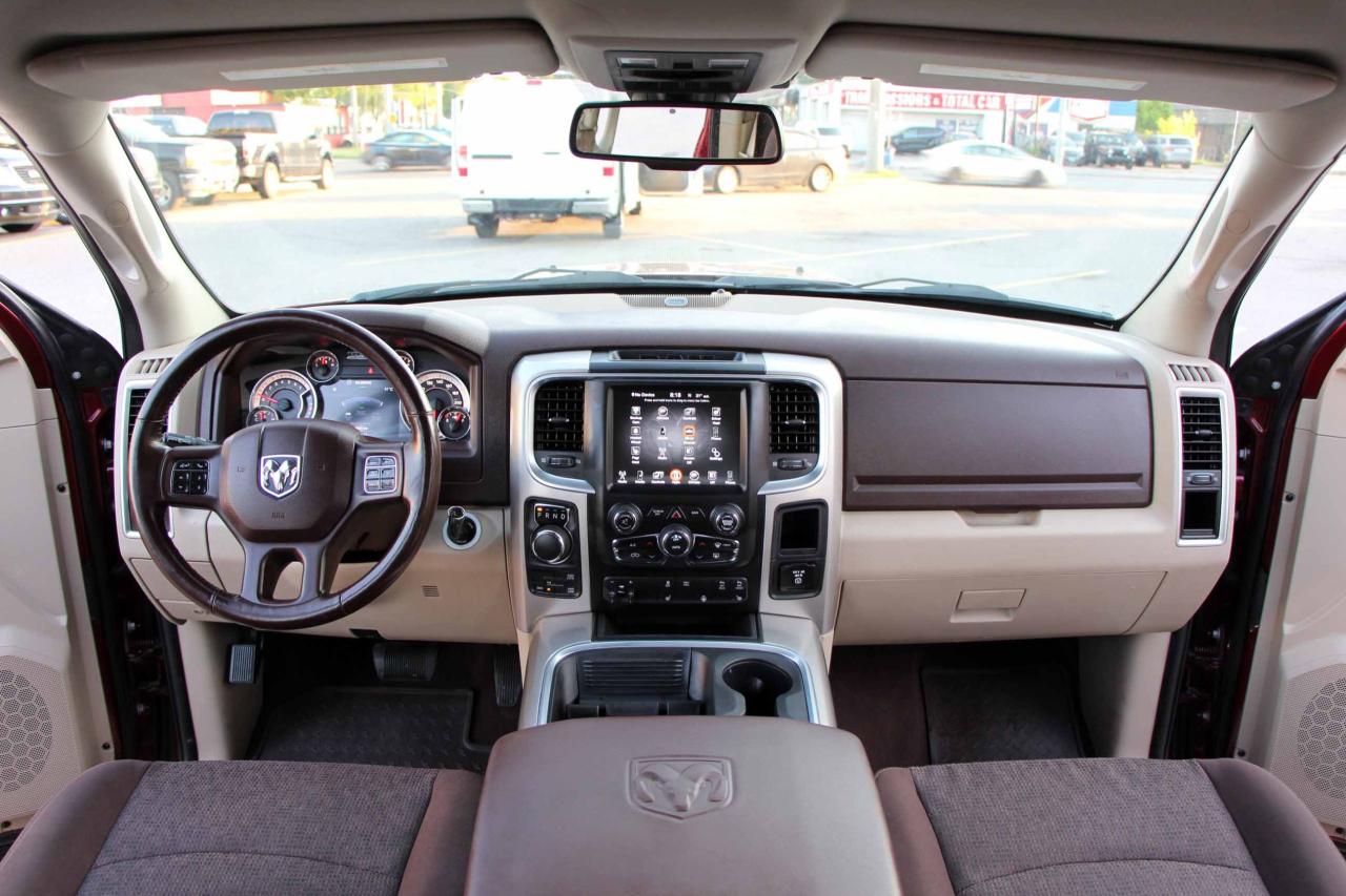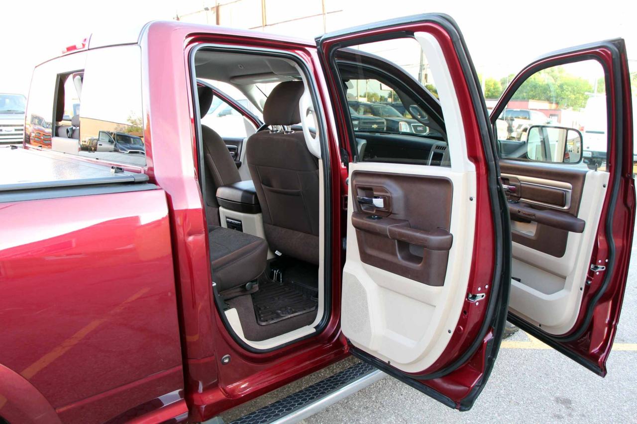 2017 RAM 1500 Outdoorsman Quad Cab 4x4 5.7L Hemi with 205,662 original kilometers. Beautiful Maroon on Brown/Beige interior. Carfax Clean, Ontario vehicle. Equipped with Power drivers seat with lumbar, steering wheel controls, back-up camera, park assist sensors, heated seats, heated steering wheel, factory trailer brake, Fog lights, Extended Side Steps, Spray in bedliner with tri-fold tunnel cover. Interior in excellent condition and air conditioning blowing cold. Runs and drives very smooth, well serviced truck. Certified with our 2 year power train warranty included.
