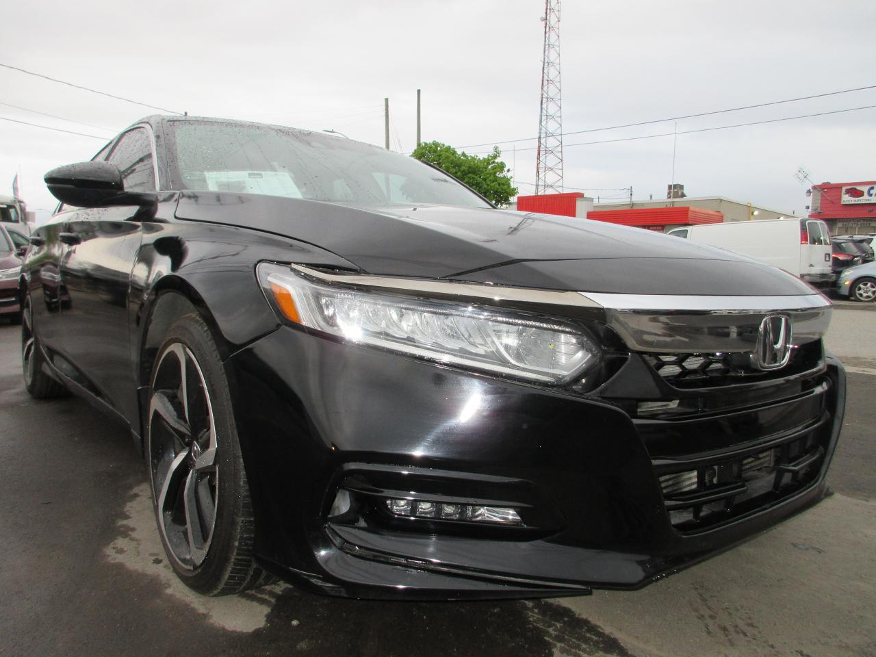 2018 HONDA ACCORD SPORTS WITH A SUNROOF APPLE CARPLAY LEATHER SEATS PUSH BUTTON START LANE DEPARTURE FORWARD COLLISION ASSIST KEYLESS ENTRY LOW MILEAGE COMES WITH A STANDARD CERTIFICATE AND 90 DAYS BUMPER TO BUMPER SHOP WARRANTY
