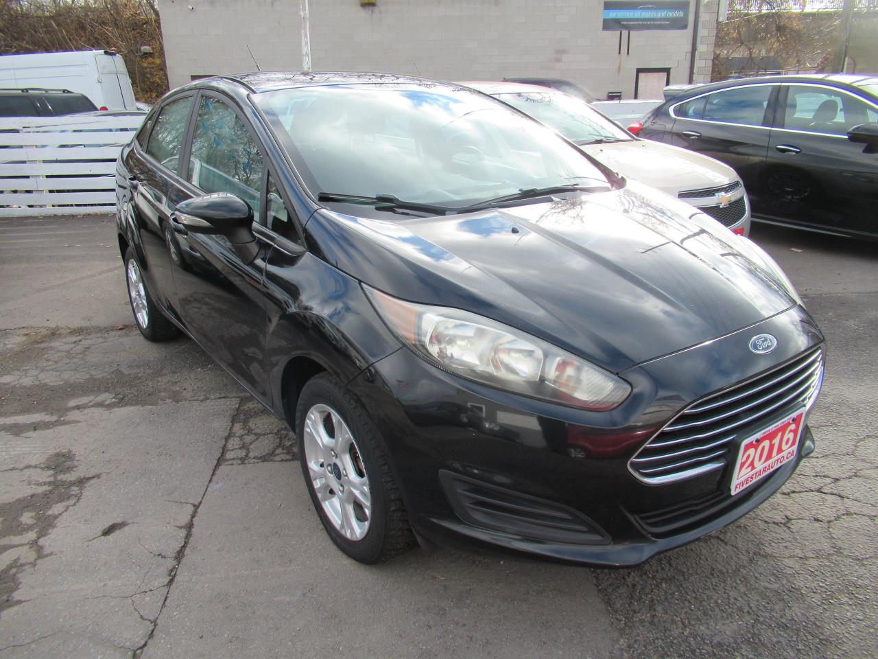 Looking for a stylish and practical ride? Check out this sleek, black 2016 Ford Fiesta SE sedan available at Five Star Auto! This fuel-efficient beauty is perfect for navigating city streets or hitting the open road. With its automatic transmission and front-wheel drive, you'll enjoy a smooth and confident driving experience. This Fiesta has been well-maintained and has 140,000 km on the odometer.