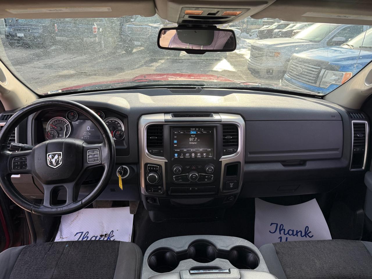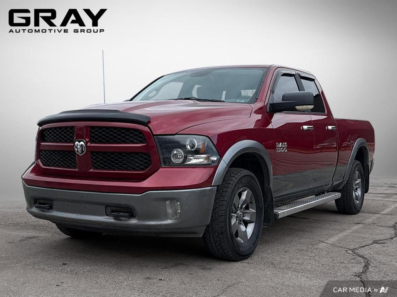 This RAM 1500 comes loaded with the following options - Two tone red/grey trim, Remote Start, Power seats, Power sliding rear window, 3.6L V6 4WD, Keyless entry, Power windows, Power locks, Nav/Backup cam and plenty more. This truck also comes Safety Certified at No additonal cost!