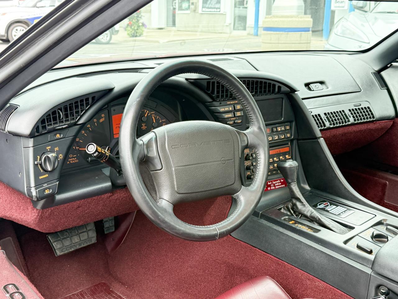 Turn heads with this eye-catching 1993 Chevrolet Corvette 1LT 40th Anniversary Edition finished in vibrant Ruby Red Metallic. This limited-edition Corvette blends classic styling with modern features, including a smooth automatic transmission and a powerful V8 engine that delivers exhilarating performance. It comes equipped with both a transparent glass roof panel and a solid roof panel for a sleek coupe look, giving you the flexibility to enjoy the best of both worlds. The exterior boasts exclusive 40th Anniversary badging and unique color accents that highlight its special heritage. Inside, you’ll find power leather seats, air conditioning, power windows and locks, and the premium Bose Gold radio stereo system with cassette and CD players for outstanding audio quality. With Ride Control offering Tour, Sport, and Performance modes, this Corvette delivers a customizable driving experience that enthusiasts will love. A true collector’s gem, this 40th Anniversary Corvette combines style, comfort, and performance in one stunning package.