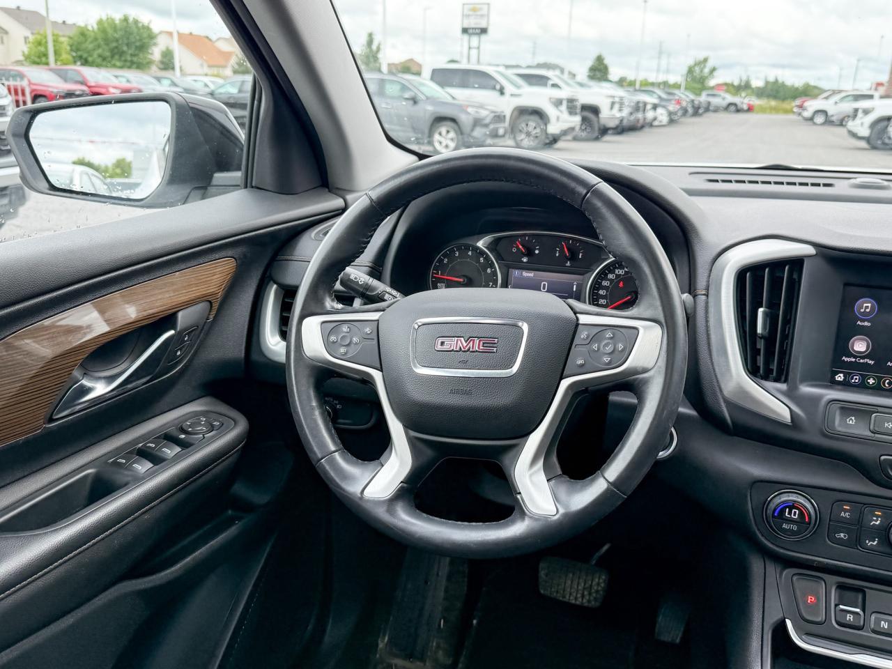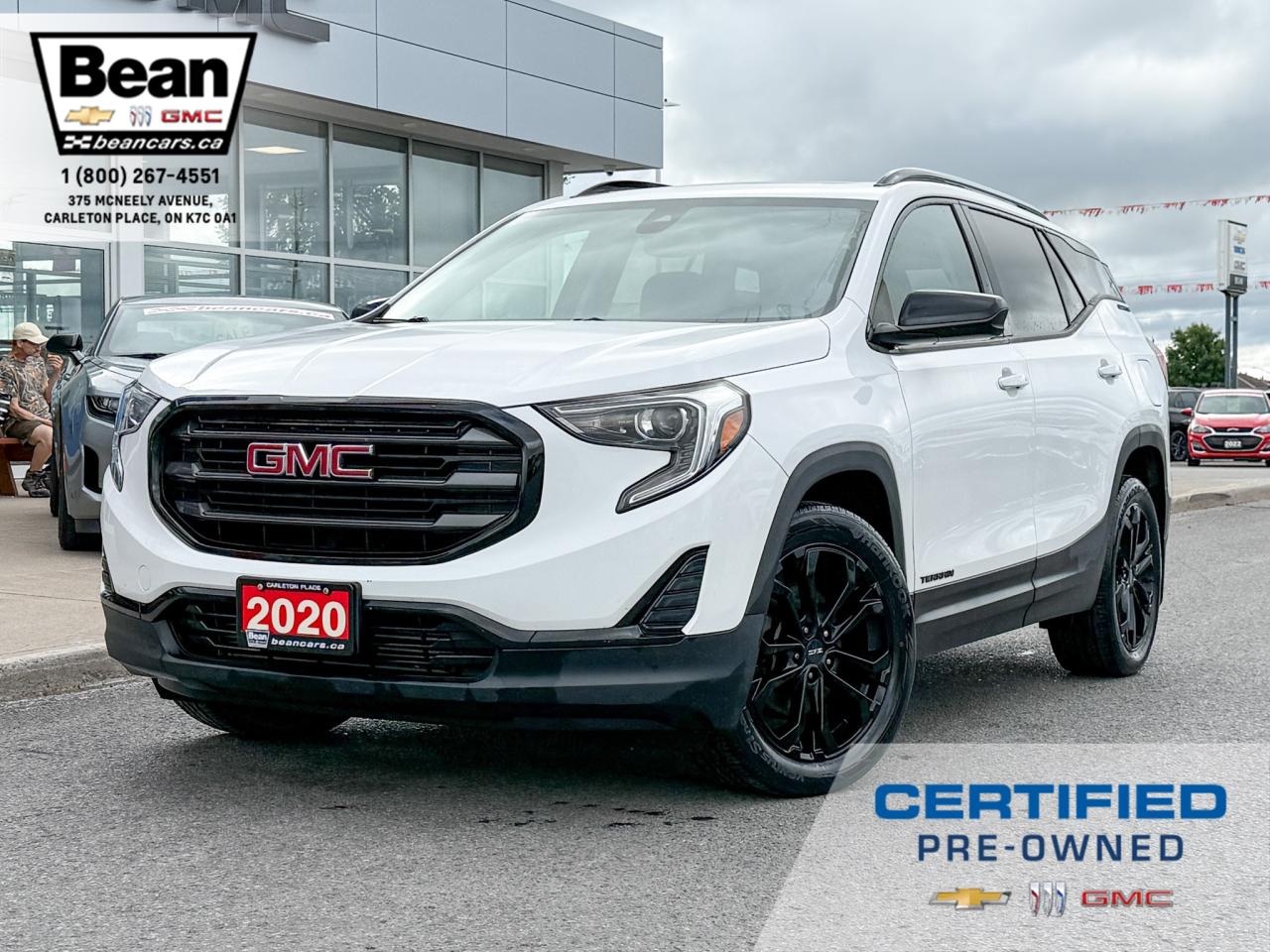 This is your chance to drive in style with this Elevation Edition 2020 GMC Terrain loaded with the zippy 2.0L 4Cyl turbo engine! This Terrain is a one owner trade that has a clean Carfax and comes loaded with some nice goodies! The Elevation package givesthis Summit White Terrain 19” gloss black alloy wheels with blackcentre caps, gloss black front grille, black luggage rack side rails, gloss black mirror caps and black exterior badging. You will also fall in love with the skyscape power sunroof, heated front cloth seats, a remote vehicle start, a leather wrapped steering wheel, dual zone climate control an 8 way power drivers seat and so much more! Now is your chance to hop into this super cool Terrain!