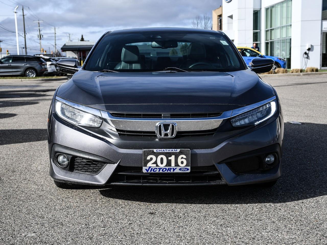 NOW AVAILABLE AT VICTORY FORD LINCOLN2016 Honda Civic Touring CoupeFully Loaded Touring Trim Sporty Coupe Design Advanced Technology Fuel-Efficient Performance This 2016 Honda Civic Touring Coupe blends sporty styling with premium features and impressive fuel efficiency. As a top-of-the-line Touring model, it offers advanced technology, upscale comfort, and a fun-to-drive experience in a sleek two-door design.POWER & PERFORMANCE 1.5L Turbocharged 4-Cylinder Engine Continuously Variable Transmission (CVT) Front-Wheel Drive Responsive and Efficient Performance Smooth and Sporty Driving Dynamics TOURING FEATURES Honda Sensing Safety Suite Navigation System Premium Audio System Remote Engine Start Smart Key with Push-Button Start EXTERIOR FEATURES LED Headlights Power Sunroof Heated Exterior Mirrors Alloy Wheels Sleek Coupe Styling INTERIOR & COMFORT Leather-Trimmed Seating Heated Front Seats Dual-Zone Climate Control Power Driver Seat Comfortable 5-Passenger Seating Premium Interior Finishes TECHNOLOGY Touchscreen Infotainment System Apple CarPlay & Android Auto Bluetooth Connectivity USB Ports Digital Driver Display SAFETY & DRIVER ASSISTANCE Honda Sensing Adaptive Cruise Control Lane Keeping Assist Collision Mitigation Braking System Rear View Camera Lane Departure Warning HIGHLIGHTS Touring Trim Level Sporty Coupe Design Turbocharged Engine Premium Features Throughout Advanced Safety Technology Excellent Fuel Efficiency Special Offer: Peace of Mind Included: 3-Month Comprehensive Warranty (for vehicles under 10 years old & under 160,000 km) No-Haggle, Live Market Pricing Transparent & Competitive All-Inclusive Pricing: Fees, Reconditioning, and Full Detailing Included (Taxes & Licensing Extra)Additional Details: Keys: Standard with one key. Additional keys (if provided by the previous owner) included at no cost. Optional key purchases available upon request. Visit Victory Ford Lincoln Today Schedule your appointment to experience this exceptional vehicle.