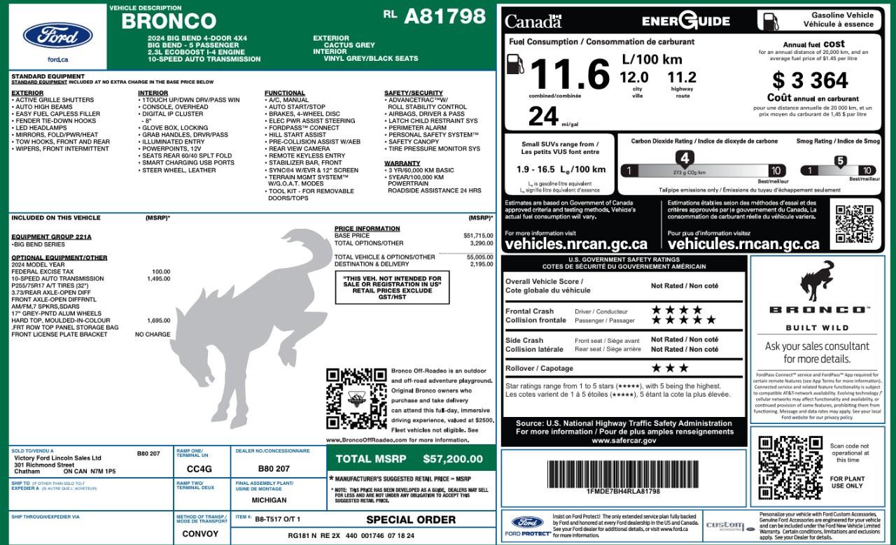 This 2024 Ford Bronco Big Bend 221A delivers legendary off-road capability paired with modern comfort and technology. Built for adventure, it features rugged 4x4 performance, durable design, and versatile features that make it equally at home on the trails or in everyday driving.