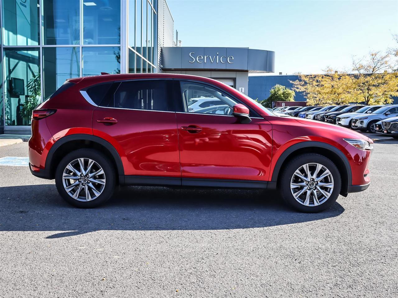 The 2020 Mazda CX-5 GT Auto AWD in radiant red combines spirited handling and dynamic all-wheel drive capability, making it a perfect choice for those who value performance and style. This Grand Touring AWD model stands out with its striking design, boasting elegant alloy wheels that complement its sophisticated body.