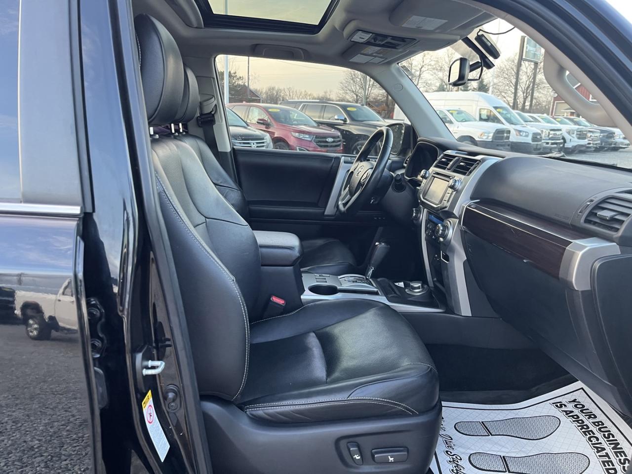 A family business of 28 years! *LEATHER*HEATED/COOLED SEATS*SUN-ROOF*BACK-UP CAM.*2 KEYS*POWER SEATS*7 PASSENGER* This 2018 Toyota 4 Runner will be sold with an Ontario Safety Certificate at no extra charge through our multi-point inspection process to provide you with the best quality pre-owned experience. Complete Carfax reports come with every vehicle sale and are readily available. Financing available as well at Daves Auto through TD Auto finance for all models 2015 and newer! 2015-2017 models range from 8.49%-9.49% and 2018-2025 models range from as low as 6.99%-9.49%. All vehicles with XM Capability come with 3 free months of Sirius XM. Dave's Auto continues to serve its customers with quality, unbranded pre-owned vehicles, certifying every vehicle inside the list price disclosed. Tinting available for $99/window.