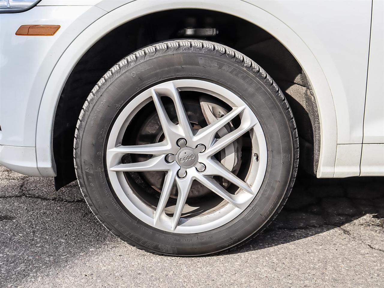4-Wheel Disc Brakes, ABS brakes, Alloy wheels, Audi smartphone interface (Apple CarPlay/Android Auto), Auto High-beam Headlights, Auto-dimming Rear-View mirror, Automatic temperature control, Brake assist, Compass, Driver door bin, Driver vanity mirror, Dual front impact airbags, Dual front side impact airbags, Electronic Stability Control, Emergency communication system, Exterior Parking Camera Rear, Four wheel independent suspension, Front anti-roll bar, Front fog lights, Front reading lights, Garage door transmitter: HomeLink, Heated front seats, Heated Front Sport Seats w/Memory, Heated steering wheel, Illuminated entry, Leather Seating Surfaces, Leather Shift Knob, Leather steering wheel, Low tire pressure warning, Memory seat, Navigation system: MMI Navigation plus, Occupant sensing airbag, Outside temperature display, Overhead airbag, Overhead console, Panic alarm, Power door mirrors, Power driver seat, Power Liftgate, Power moonroof, Power windows, Radio: MMI Navigation Plus w/8.3''' Display/SiriusXM, Rear anti-roll bar, Remote keyless entry, Security system, Speed control, Speed-sensing steering, Telescoping steering wheel, Tilt steering wheel, Traction control, Turn signal indicator mirrors, Wheels: 19''' 5-Double-Spoke Star Design.