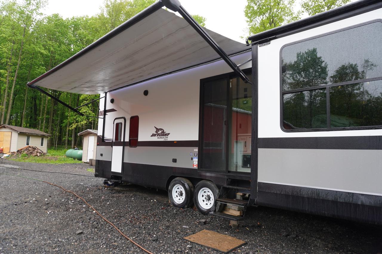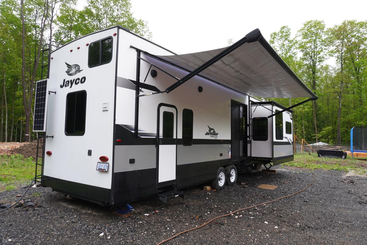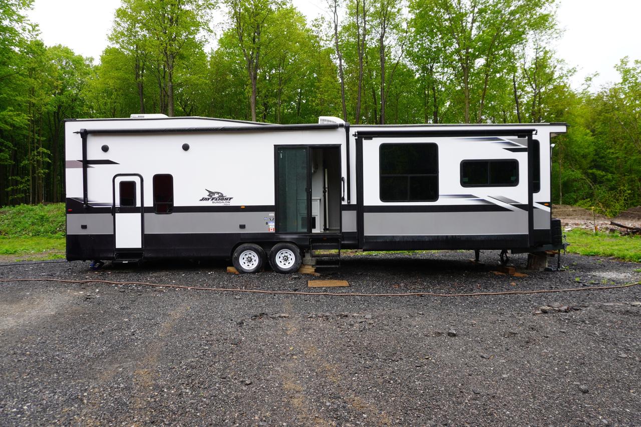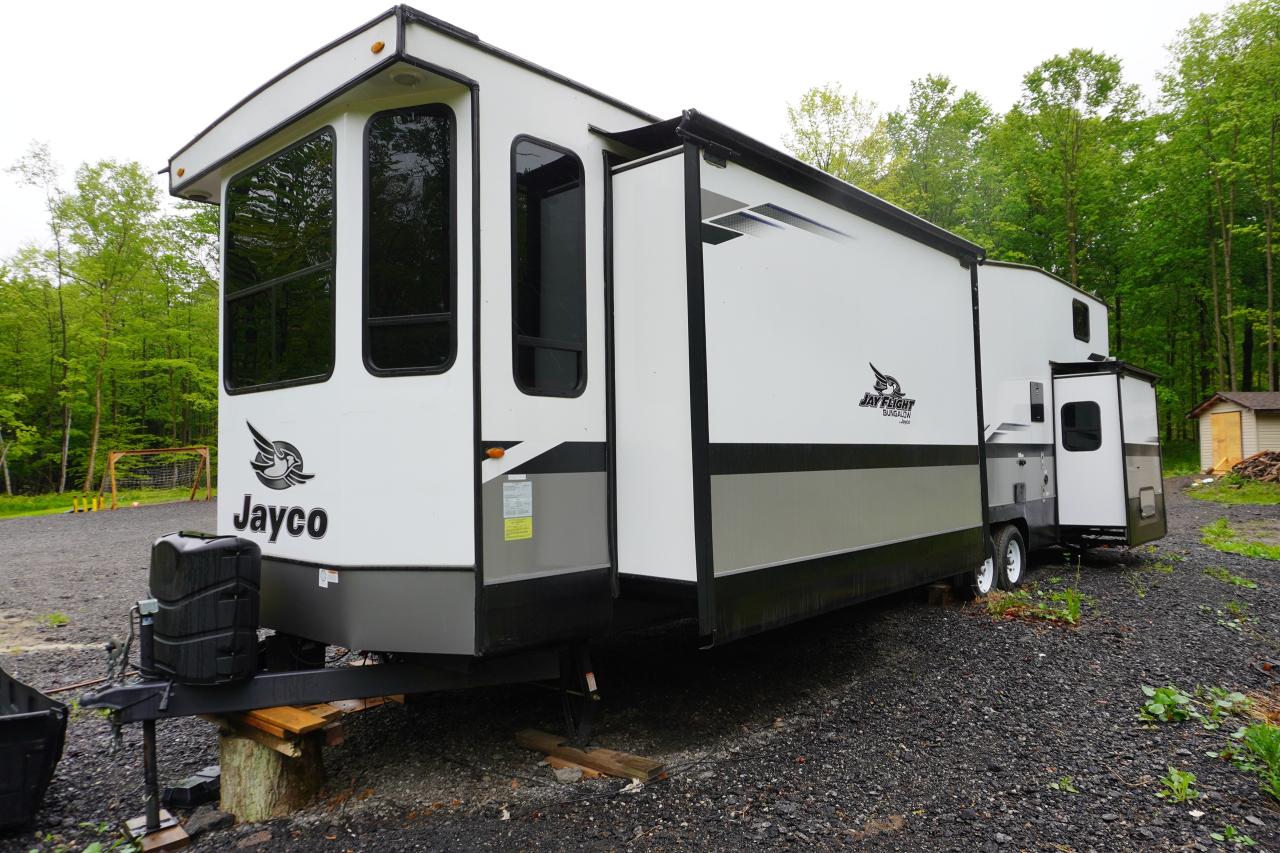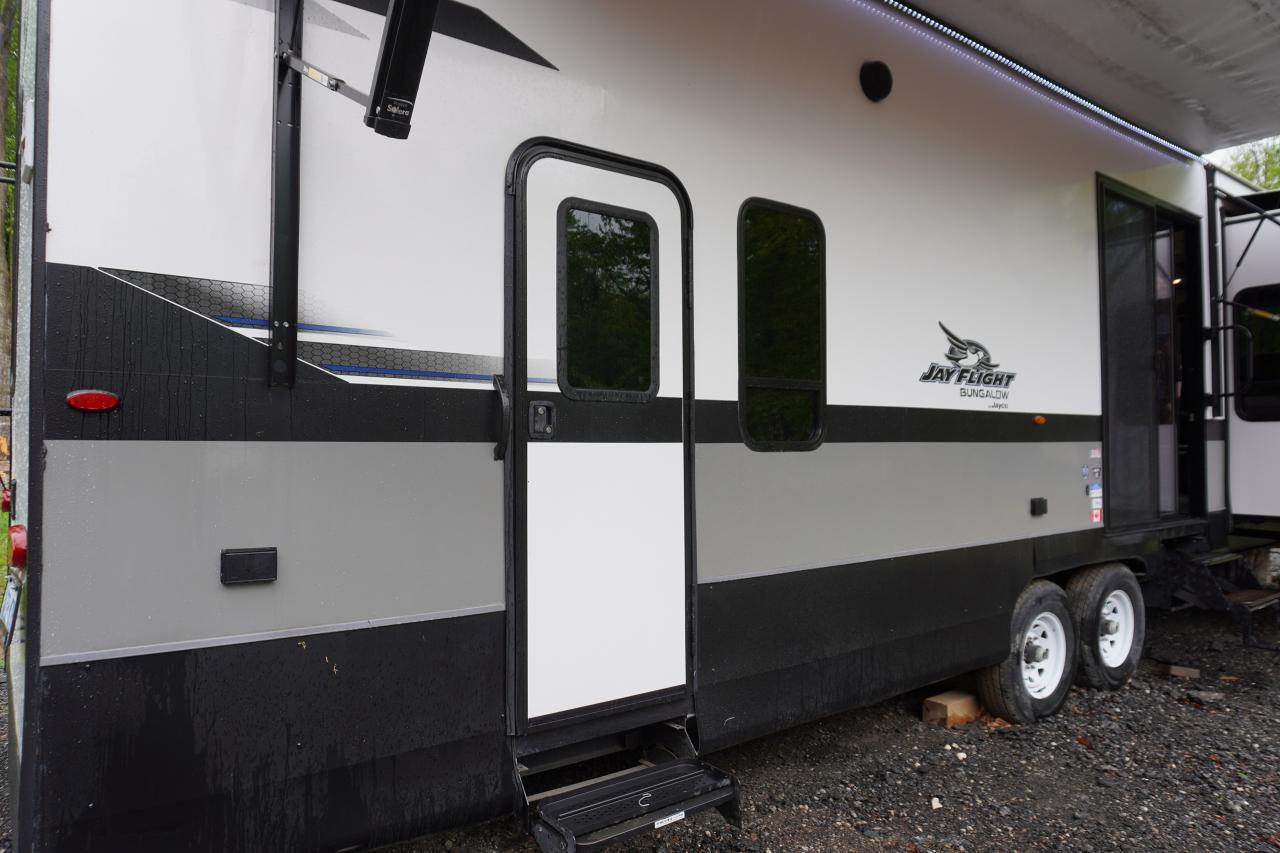 Check out this Jayco Jay flight Bungalow 40 Loft we have here. This beauty is a 1 owner travel trailer that's been used by a small family for the past year while they were building their custom property. The trailer comes loaded with all options in working condition and has been winterized properly. Financing and warranties available.