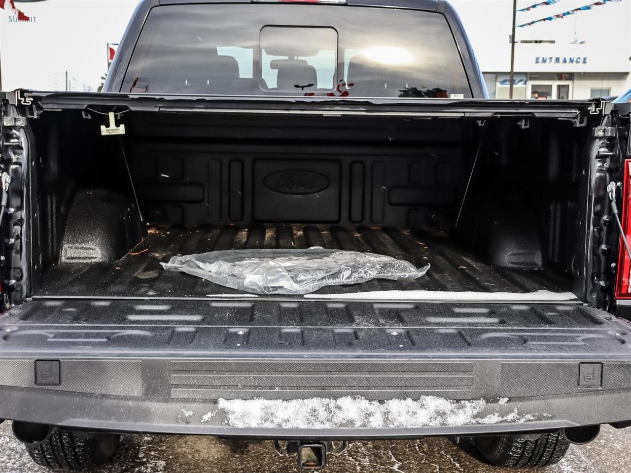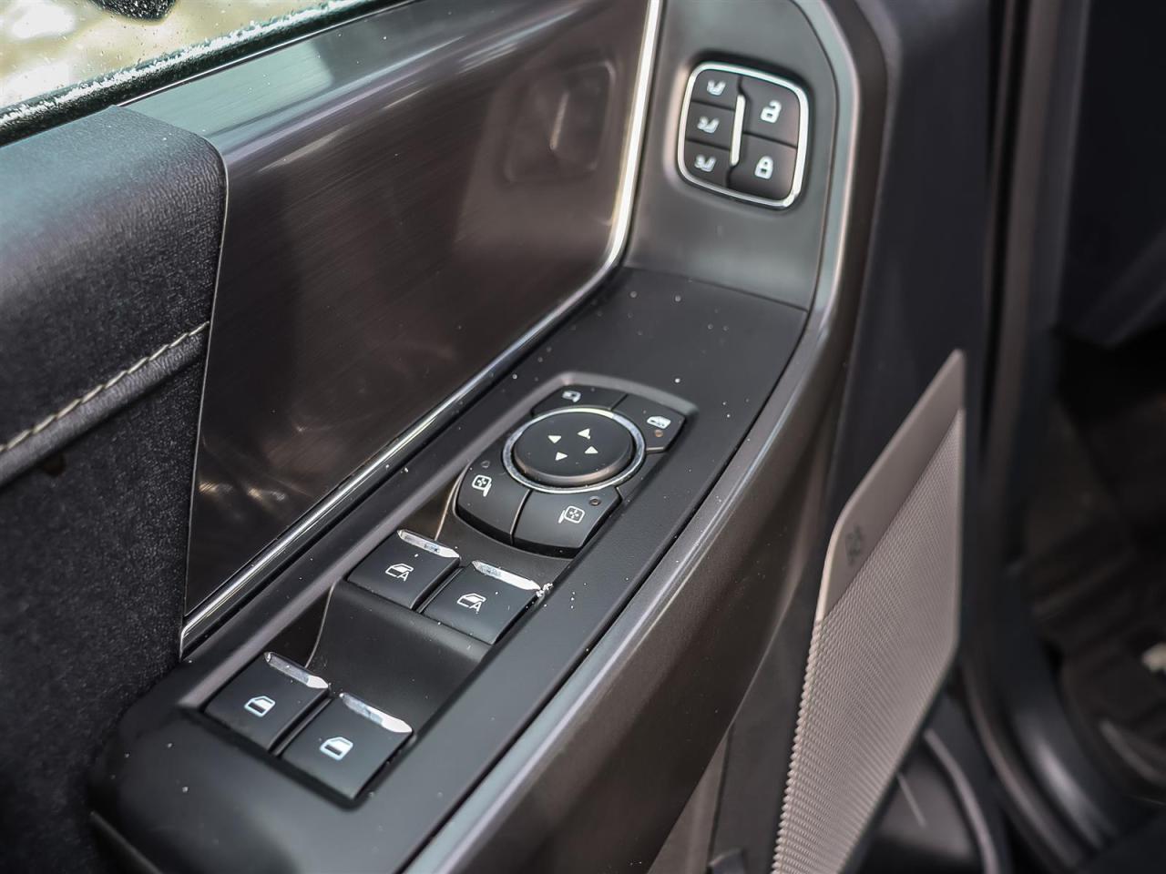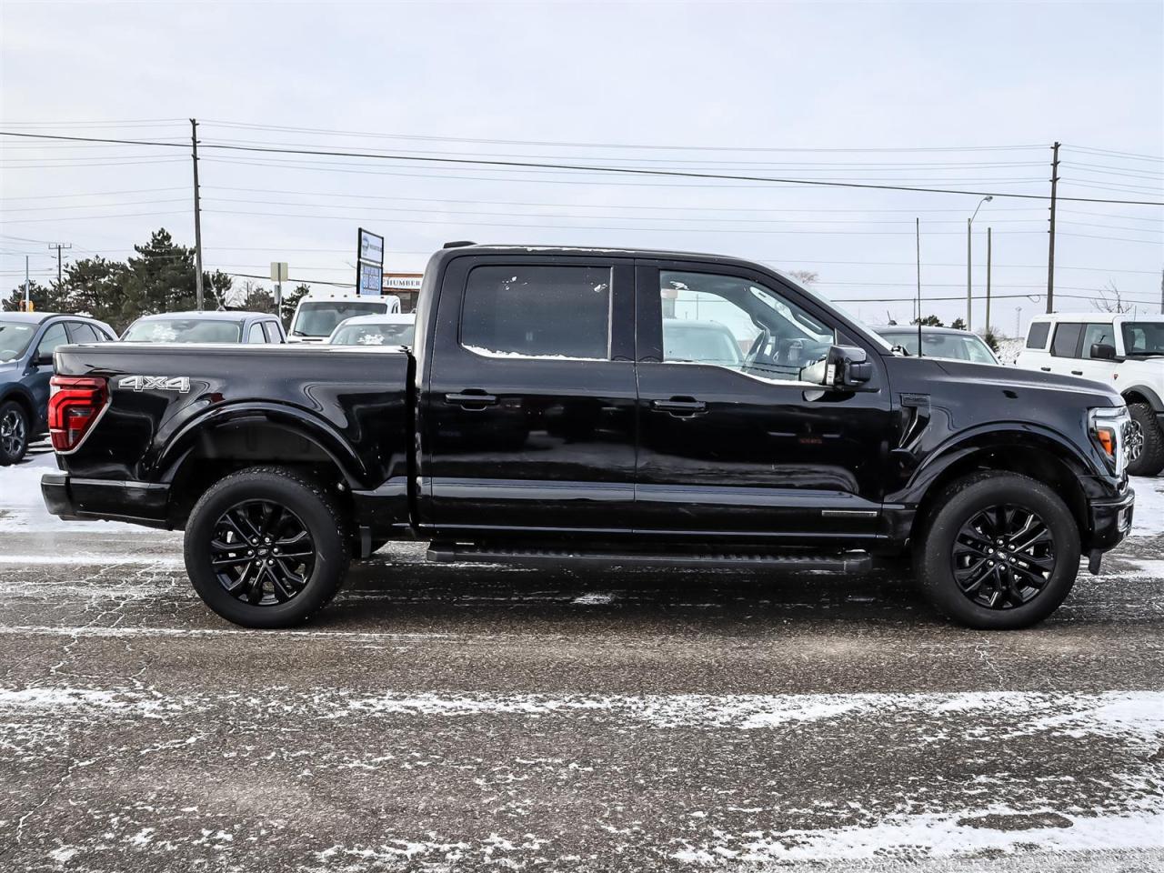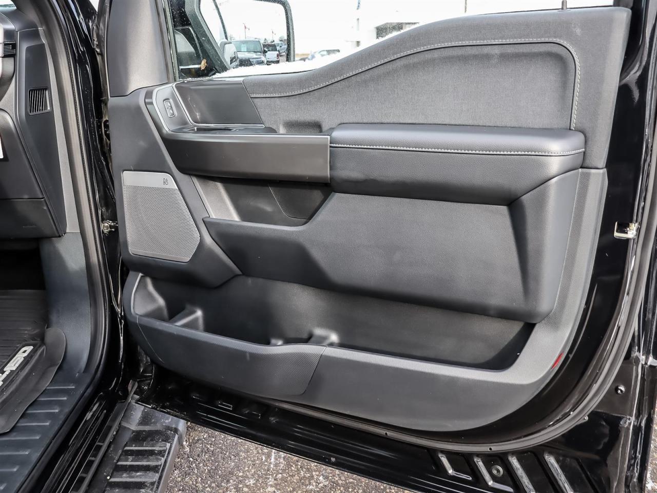 Alloy wheels, Black Exterior Badging, Black Grille, Black Taillamp Bezels, Body-Colour Door Handles & Mirror Caps, Body-Colour Front & Rear Bumpers, Dark Interior Appliques, Dual Exhaust w/Black Tips, Equipment Group 501A Standard, Garage door transmitter, Grey Box Side Decal, Heated front seats, Heated steering wheel, Lariat Black Appearance Package, Leather-Trimmed Bucket Seats, Matte Black Tailgate F-150 Decal, Memory seat, Navigation system: Connected Navigation, Panic alarm, Pedal memory, Power driver seat, Power passenger seat, Power windows, Remote keyless entry, Security system, Steering wheel memory, SYNC 4 w/Enhanced Voice Recognition, Telescoping steering wheel, Tilt steering wheel, Tough Bed Spray-In Bedliner, Twin Panel Moonroof, Ventilated front seats, Wheels: 20''' Gloss Black Painted Aluminum.