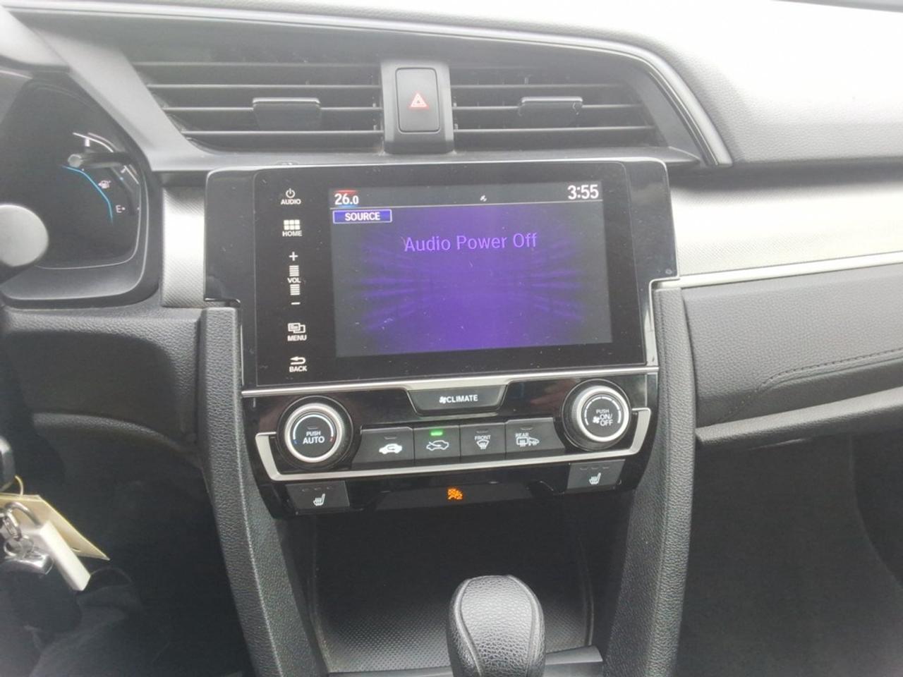 *** CASH PURCHASE PRICE $18666 PLUS HST *** The 2018 Honda Civic Sedan LX CVT in striking blue with a front-wheel-drive system offers a balanced and engaging driving experience. Its sleek design is complemented by features that ensure both comfort and style, making every journey a pleasure. With a thoughtfully designed exterior, this sedan stands out with its modern aesthetic while providing practicality. Inside, the cabin is spacious and well-appointed, featuring air conditioning and heated front seats, ensuring a comfortable ride regardless of the weather. Standard power windows and keyless entry add convenience to your daily drive. The Civic's innovative technology package includes a backup camera for easier parking, Bluetooth connection for hands-free capabilities, and smart device integration to keep you connected. Safety features such as brake assist enhance your peace of mind, while cruise control and heated mirrors ensure an enjoyable drive. This vehicle is ideal for those seeking a reliable yet stylish sedan that excels in both urban and highway conditions. Families, daily commuters, and technology enthusiasts alike will appreciate the harmonious blend of features and design. Contact us today to learn more about this impressive Civic Sedan and arrange your test drive!
