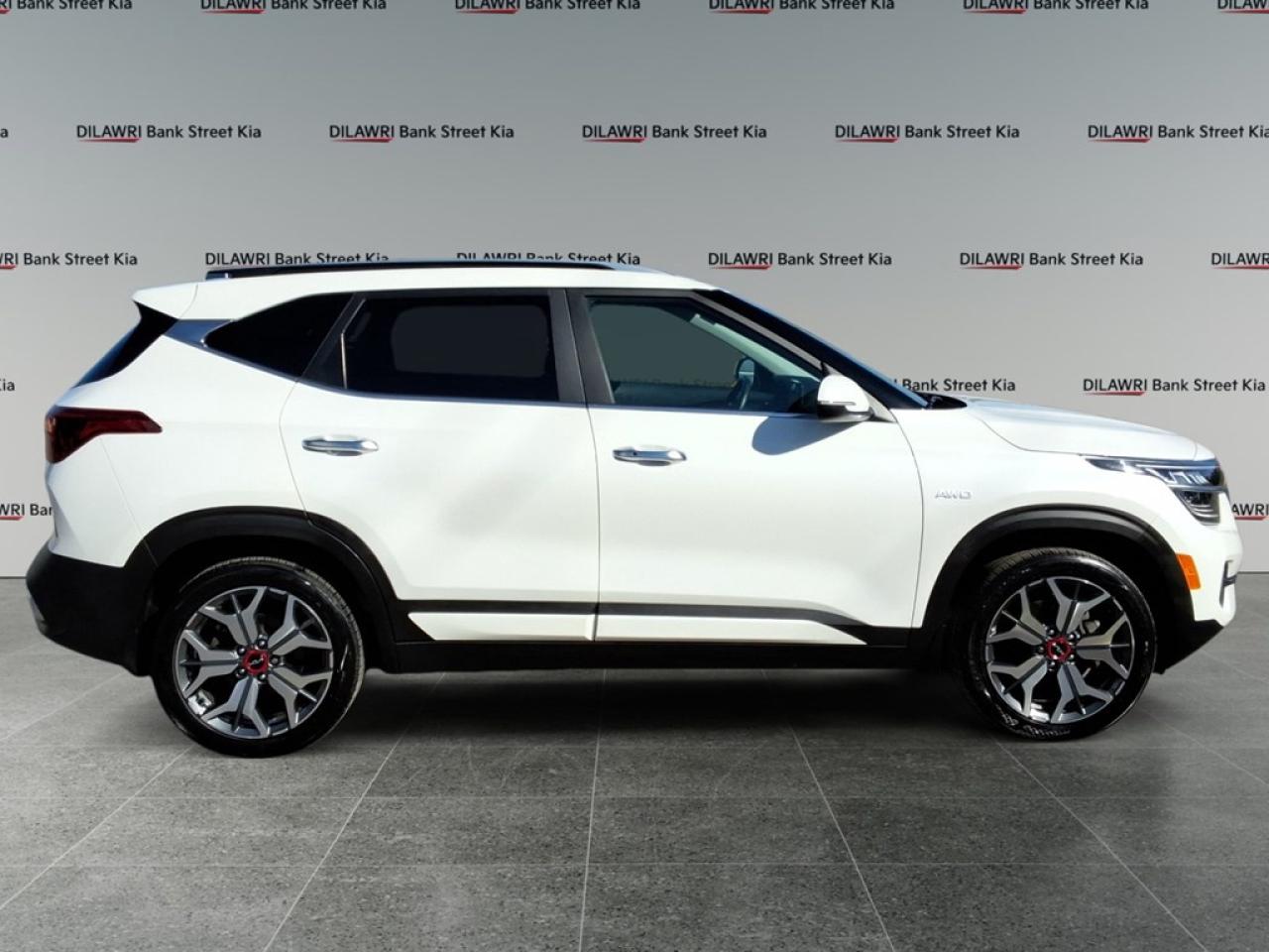 The 2023 Kia Seltos SX Turbo in pristine white is an all-wheel-drive SUV designed to thrill with its dynamic handling and versatile performance. This remarkable SUV features an impressive exterior complemented by stylish alloy wheels. Youll enjoy the open road with a panoramic sunroof that fills the cabin with natural light. The well-appointed interior offers both heated and cooled seats to keep you comfortable in any weather. High-quality materials and thoughtful design create a welcoming atmosphere for driver and passengers alike. Behind the wheel, stay seamlessly connected with smart device integration and a state-of-the-art navigation system displayed on the heads-up display. Safety is paramount, with advanced features like a backup camera, lane assist, and brake assist ensuring a secure drive. Enjoy peace of mind with keyless entry and remote start, making every journey effortless and convenient. Perfect for those who desire a fusion of technology, safety, and comfort in their vehicle, the 2023 Kia Seltos SX Turbo is ready to enhance your driving experience. Contact us today to learn more about this exceptional SUV and how it can be yours!