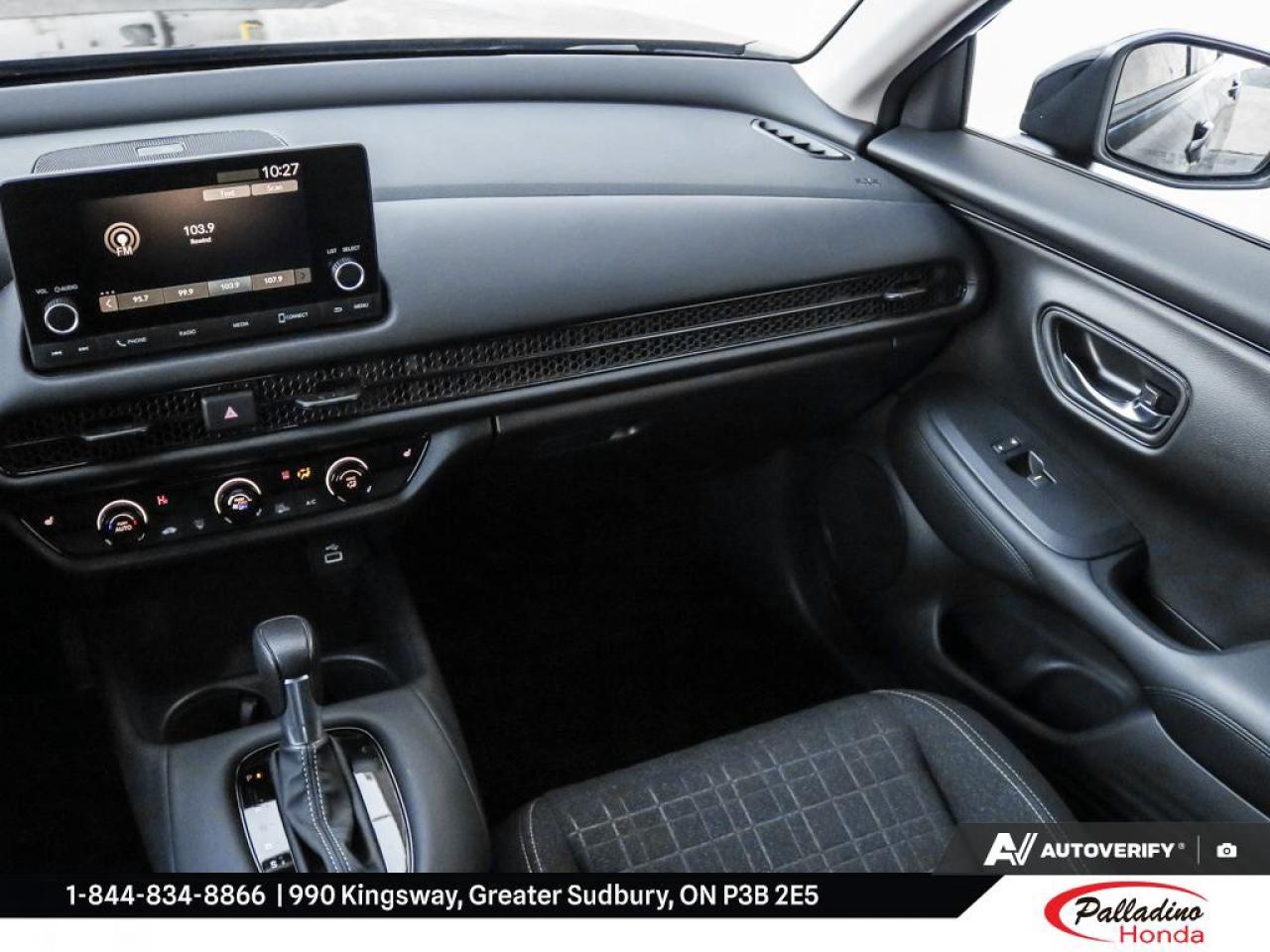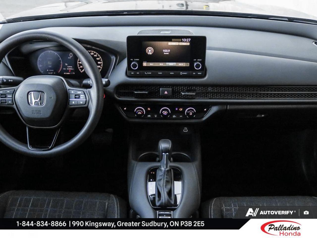 Experience confidence and versatility with the 2023 Honda HR-V LX, now available at Palladino Honda in Greater Sudbury. This used SUV, finished in sleek black, has only 10,001 km and has had a single owner, as reported by CARFAX Canada. Enjoy the balance of reliability, efficiency, and all-weather capability in a compact, modern package.