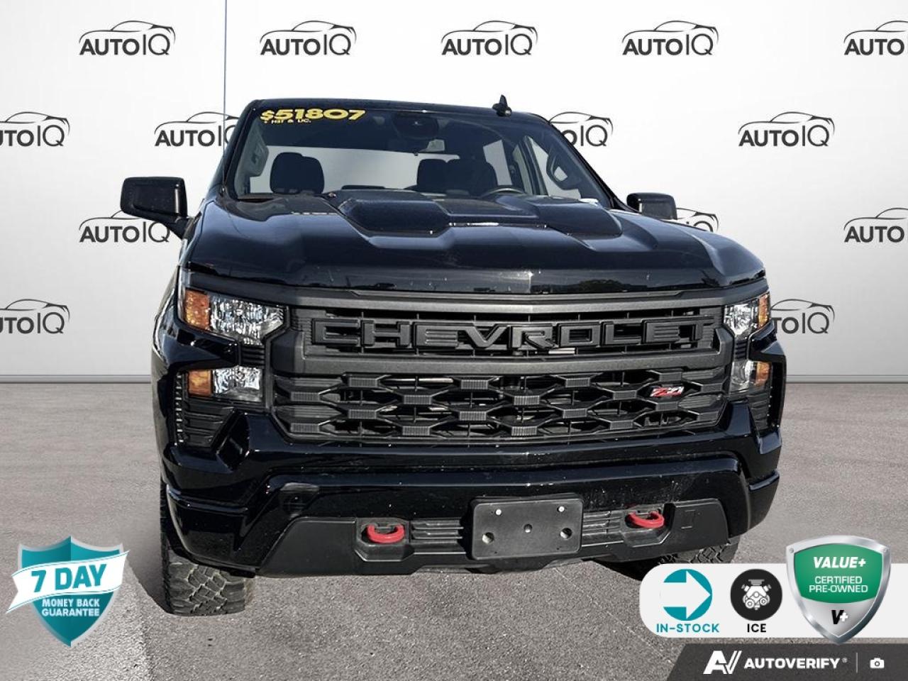 | One Owner, | No Accidents, | Apple CarPlay/Android Auto, 10-Speed Automatic, 4WD, Jet Black w/Cloth Seat Trim, 10-Way Power Driver Seat w/Lumbar, 120-Volt Bed Mounted Power Outlet, 120-Volt Instrument Panel Power Outlet, 3.5''' Monochromatic Display Driver Info Centre, Auto-Locking Rear Differential, Bluetooth® For Phone, Chevrolet Connected Access Capable, Colour-Keyed Carpeting Floor Covering, Compass, Custom Convenience Package, Deep-Tinted Glass, Dual Rear USB Ports (Charge Only), Electric Rear-Window Defogger, Electrical Steering Column Lock, Electronic Cruise Control, EZ Lift Power Lock & Release Tailgate, Front Rubberized Vinyl Floor Mats, HD Rear Vision Camera, Heavy-Duty Air Filter, Hill Descent Control, Hitch Guidance, LED Cargo Area Lighting, Manual Tilt Wheel Steering Column, OnStar & Chevrolet Connected Services Capable, Performance Red Recovery Hooks, Power Front Windows w/Driver Express Up/Down, Power Front Windows w/Passenger Express Down, Power Rear Windows w/Express Down, Preferred Equipment Group 2CX, Rear 60/40 Folding Bench Seat (Folds Up), Rear Rubberized-Vinyl Floor Mats, Remote Keyless Entry, Remote Vehicle Starter System, SiriusXM, Standard Tailgate, Suspension Package, Theft Deterrent System (Unauthorized Entry), Trailering Package, Wi-Fi Hot Spot Capable, Wireless Phone Projection.