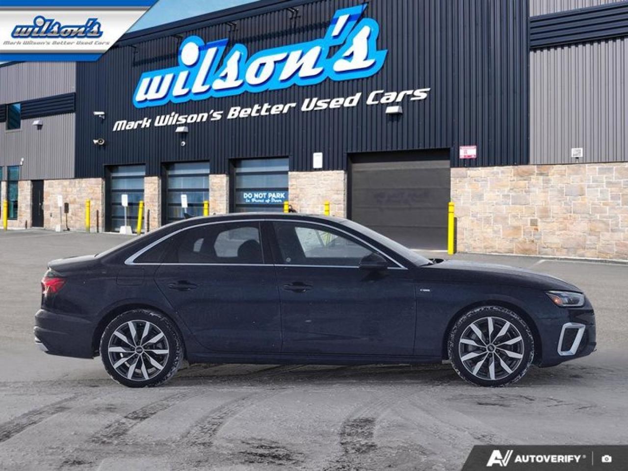 Come see this certified 2022 Audi A4 Sedan Progressiv AWD | S-Line | Nav | Leather | Sunroof | Heated Wheel + Seats | CarPlay + Android & More!. Its Automatic transmission and 2.0 L engine will keep you going. This Audi A4 Sedan features the following options: Sunroof, Reverse Camera, Navigation System, Leather, Heated Steering Wheel, Air Conditioning, Heated Seats, Tilt Steering Wheel, Steering Radio Controls, and Power Windows. See it for yourself at Mark Wilson's Better Used Cars, 5055 Whitelaw Road, Guelph, ON N1H 6J4.60+ years of World Class Service!500+ Live Market Priced VEHICLES! ONE MASSIVE LOCATION!Free Local Delivery Available!FINANCING! - Better than bank rates! 6 Months No Payments available on approved credit OAC. Zero Down Available. We have expert licensed credit specialists to secure the best possible rate for you and keep you on budget ! We are your financing broker, let us do all the leg work on your behalf! Click the RED "Apply for Financing" button to the right to get started or drop in today!BAD CREDIT APPROVED HERE! - You don't need perfect credit to get a vehicle loan at Mark Wilson's Better Used Cars! We have a dedicated licensed team of credit rebuilding experts on hand to help you get the car of your dreams!WE LOVE TRADE-INS! - Top dollar trade-in values!SELL us your car even if you don't buy ours! HISTORY: Free Carfax report included.Certification included! No shady fees for safety!EXTENDED WARRANTY: Available30 DAY WARRANTY INCLUDED: 30 Days, or 3,000 km (mechanical items only). No Claim Limit (abuse not covered)5 Day Exchange Privilege! *(Some conditions apply)CASH PRICES SHOWN: Excluding HST and Licensing Fees.2021-2026 vehicles may be daily rentals. Please inquire with your salesperson.We have made every reasonable attempt to ensure options are correct but please verify with your sales professional