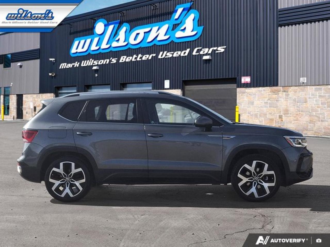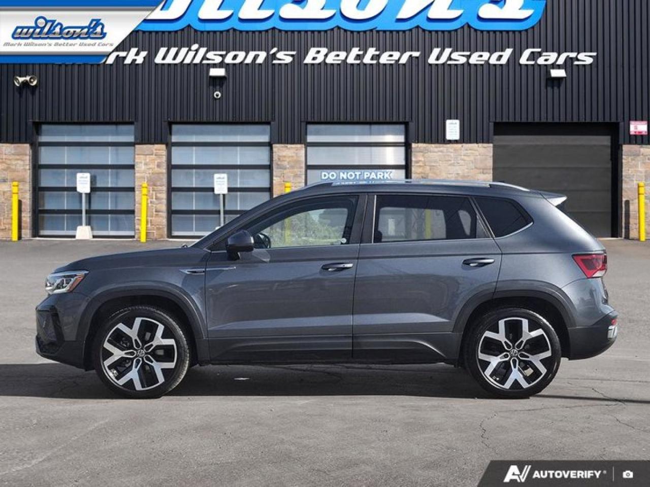 Check out this certified 2022 Volkswagen Taos Highline4Motion | Leather | Pano Roof | Nav | Adaptive Cruise | Apple CarPlay+Android Auto and More!. Its Automatic transmission and 1.5 L engine will keep you going. This Volkswagen Taos comes equipped with these options: Reverse Camera, Panoramic Roof, Navigation System, Leather, Heated Steering Wheel, Air Conditioning, Adaptive Cruise Control, Heated Seats, Tilt Steering Wheel, and Steering Radio Controls. Stop by and visit us at Mark Wilson's Better Used Cars, 5055 Whitelaw Road, Guelph, ON N1H 6J4.60+ years of World Class Service!500+ Live Market Priced VEHICLES! ONE MASSIVE LOCATION!Free Local Delivery Available!FINANCING! - Better than bank rates! 6 Months No Payments available on approved credit OAC. Zero Down Available. We have expert licensed credit specialists to secure the best possible rate for you and keep you on budget ! We are your financing broker, let us do all the leg work on your behalf! Click the RED "Apply for Financing" button to the right to get started or drop in today!BAD CREDIT APPROVED HERE! - You don't need perfect credit to get a vehicle loan at Mark Wilson's Better Used Cars! We have a dedicated licensed team of credit rebuilding experts on hand to help you get the car of your dreams!WE LOVE TRADE-INS! - Top dollar trade-in values!SELL us your car even if you don't buy ours! HISTORY: Free Carfax report included.Certification included! No shady fees for safety!EXTENDED WARRANTY: Available30 DAY WARRANTY INCLUDED: 30 Days, or 3,000 km (mechanical items only). No Claim Limit (abuse not covered)5 Day Exchange Privilege! *(Some conditions apply)CASH PRICES SHOWN: Excluding HST and Licensing Fees.2021-2026 vehicles may be daily rentals. Please inquire with your Salesperson.