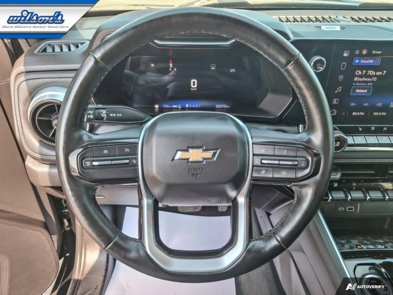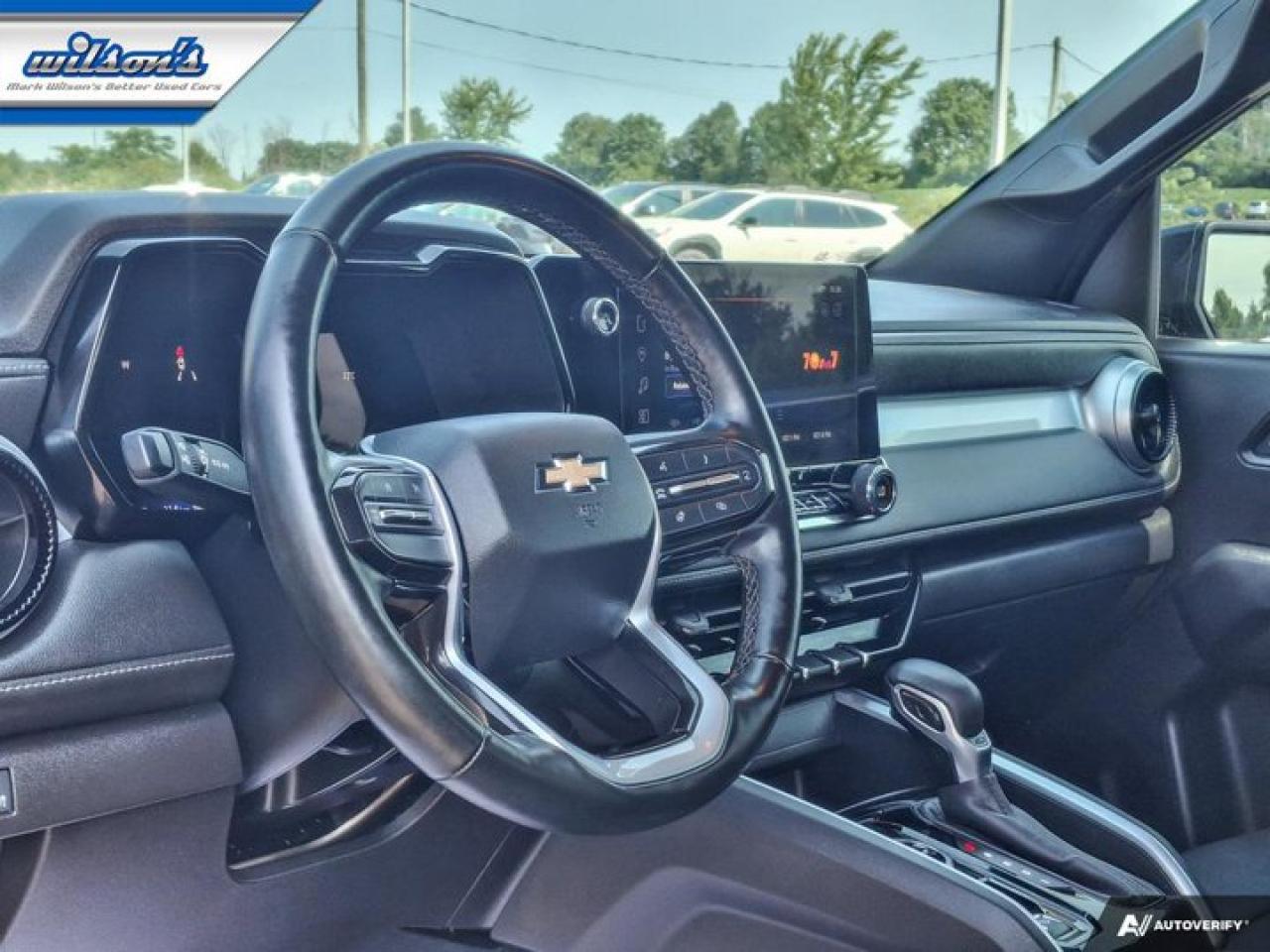 Look at this certified 2023 Chevrolet Colorado 4WD LT| Leather | Sunroof | Heated Seats + Steering | Remote Start | Bose Audio | and More !. Its Automatic transmission and 2.7L engine will keep you going. This Chevrolet Colorado comes equipped with these options: Sunroof, Remote Start, Leather, Heated Steering Wheel, Bose Speaker System, Air Conditioning, Adaptive Cruise Control, Heated Seats, Tilt Steering Wheel, and Steering Radio Controls. Stop by and visit us at Mark Wilson's Better Used Cars, 5055 Whitelaw Road, Guelph, ON N1H 6J4.60+ years of World Class Service!500+ Live Market Priced VEHICLES! ONE MASSIVE LOCATION!Free Local Delivery Available!FINANCING! - Better than bank rates! 6 Months No Payments available on approved credit OAC. Zero Down Available. We have expert licensed credit specialists to secure the best possible rate for you and keep you on budget ! We are your financing broker, let us do all the leg work on your behalf! Click the RED "Apply for Financing" button to the right to get started or drop in today!BAD CREDIT APPROVED HERE! - You don't need perfect credit to get a vehicle loan at Mark Wilson's Better Used Cars! We have a dedicated licensed team of credit rebuilding experts on hand to help you get the car of your dreams!WE LOVE TRADE-INS! - Top dollar trade-in values!SELL us your car even if you don't buy ours! HISTORY: Free Carfax report included.Certification included! No shady fees for safety!EXTENDED WARRANTY: Available30 DAY WARRANTY INCLUDED: 30 Days, or 3,000 km (mechanical items only). No Claim Limit (abuse not covered)5 Day Exchange Privilege! *(Some conditions apply)CASH PRICES SHOWN: Excluding HST and Licensing Fees.2019 - 2024 vehicles may be daily rentals. Please inquire with your Salesperson.