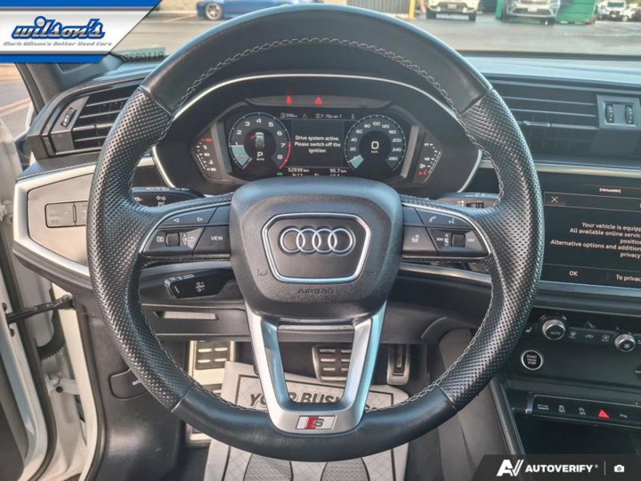 Check out this certified 2024 Audi Q3 Progressiv S-line Quattro | Leather | Sunroof | Nav | Adaptive Cruise | CarPlay | and More !. Its Automatic transmission and 2.0 L engine will keep you going. This Audi Q3 features the following options: Sunroof, Reverse Camera, Navigation System, Leather, Heated Steering Wheel, Air Conditioning, Adaptive Cruise Control, Heated Seats, Tilt Steering Wheel, and Steering Radio Controls. See it for yourself at Mark Wilson's Better Used Cars, 5055 Whitelaw Road, Guelph, ON N1H 6J4.60+ years of World Class Service!500+ Live Market Priced VEHICLES! ONE MASSIVE LOCATION!Free Local Delivery Available!FINANCING! - Better than bank rates! 6 Months No Payments available on approved credit OAC. Zero Down Available. We have expert licensed credit specialists to secure the best possible rate for you and keep you on budget ! We are your financing broker, let us do all the leg work on your behalf! Click the RED "Apply for Financing" button to the right to get started or drop in today!BAD CREDIT APPROVED HERE! - You don't need perfect credit to get a vehicle loan at Mark Wilson's Better Used Cars! We have a dedicated licensed team of credit rebuilding experts on hand to help you get the car of your dreams!WE LOVE TRADE-INS! - Top dollar trade-in values!SELL us your car even if you don't buy ours! HISTORY: Free Carfax report included.Certification included! No shady fees for safety!EXTENDED WARRANTY: Available30 DAY WARRANTY INCLUDED: 30 Days, or 3,000 km (mechanical items only). No Claim Limit (abuse not covered)5 Day Exchange Privilege! *(Some conditions apply)CASH PRICES SHOWN: Excluding HST and Licensing Fees.2021-2026 vehicles may be daily rentals. Please inquire with your salesperson.We have made every reasonable attempt to ensure options are correct but please verify with your sales professional