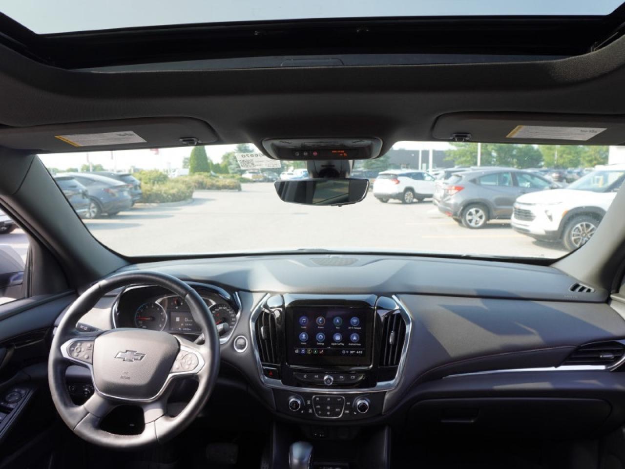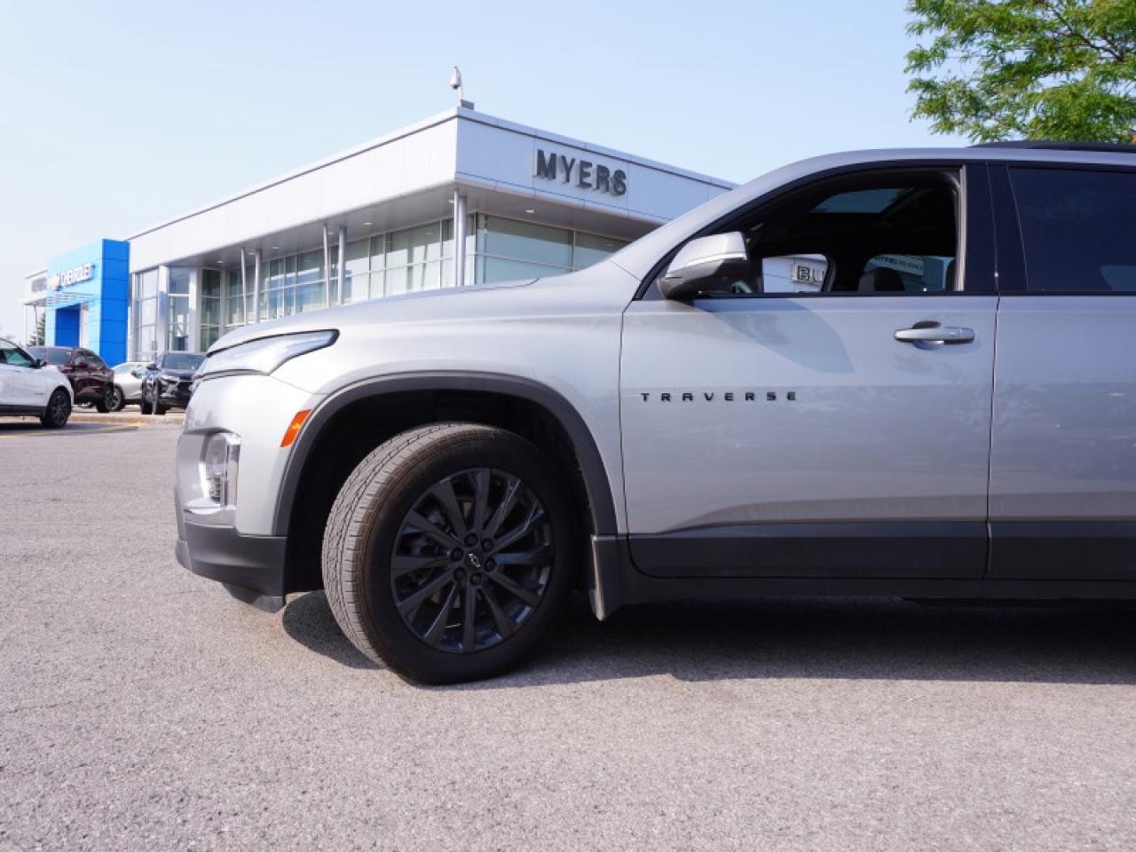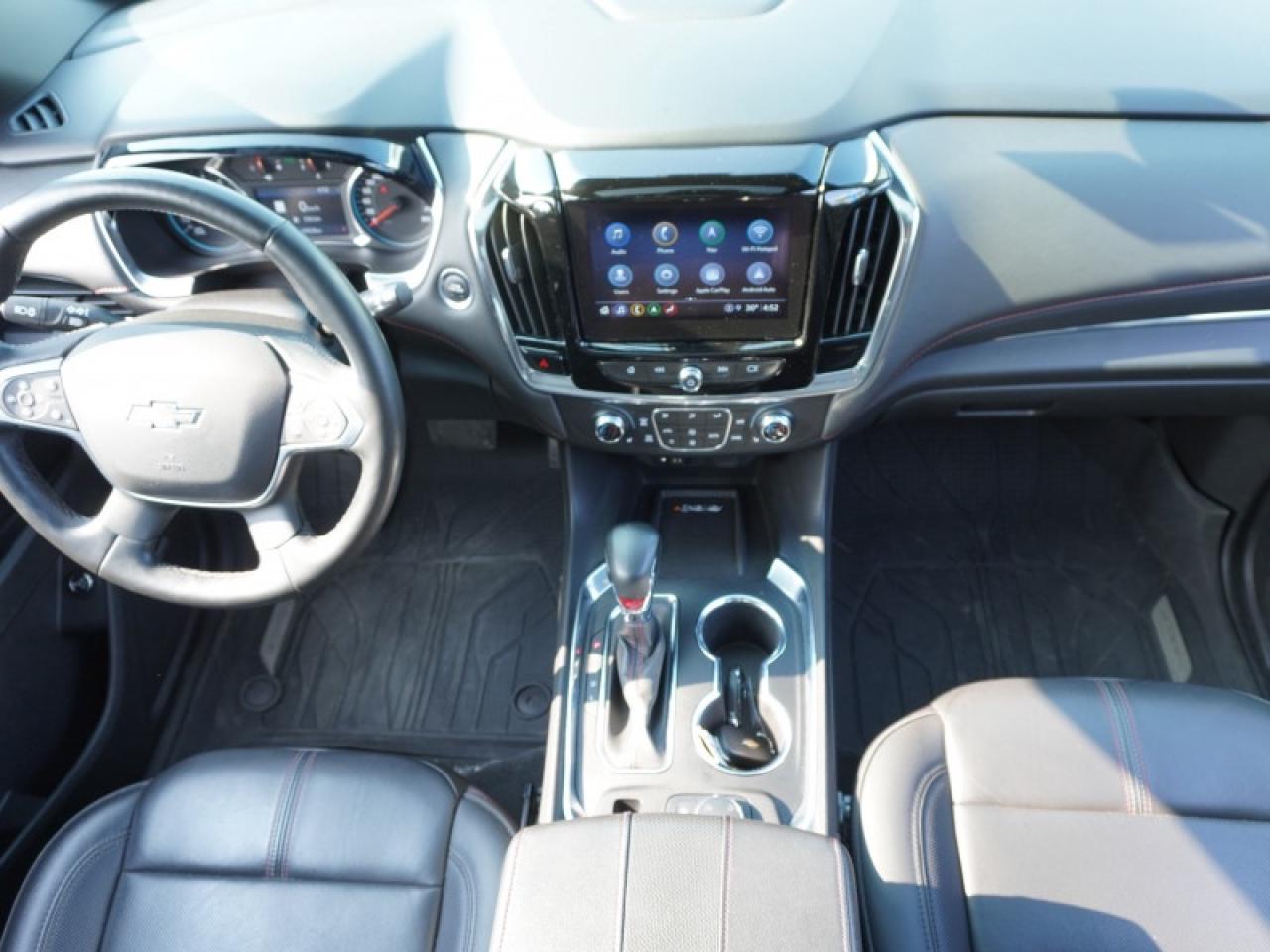 Our Traverse's trim level is RS. Stepping up to this Traverse RS brings you unique style by featuring stylish dark aluminum wheels and black exterior trim accents, a Bose premium audio system, adaptive cruise control, enhanced automatic emergency braking, blind zone alert, a power rear liftgate, LED lighting with IntelliBeam technology, remote start with remote keyless entry, power front seats and a massive dual pane sunroof! Stay safe and connected with Chevrolet Infotainment 3 with a larger 8 inch touchscreen featuring navigation and voice command, wireless Apple CarPlay and Android Auto, lane keep assist with lane departure warning, automatic emergency braking, front pedestrian braking, Teen Driver technology and is Wi-Fi hotspot capable. This vehicle has been upgraded with the following features: Leather Seats, Premium Audio, Navigation, Adaptive Cruise Control, 360 Camera, Tow Package, Wireless Charging.