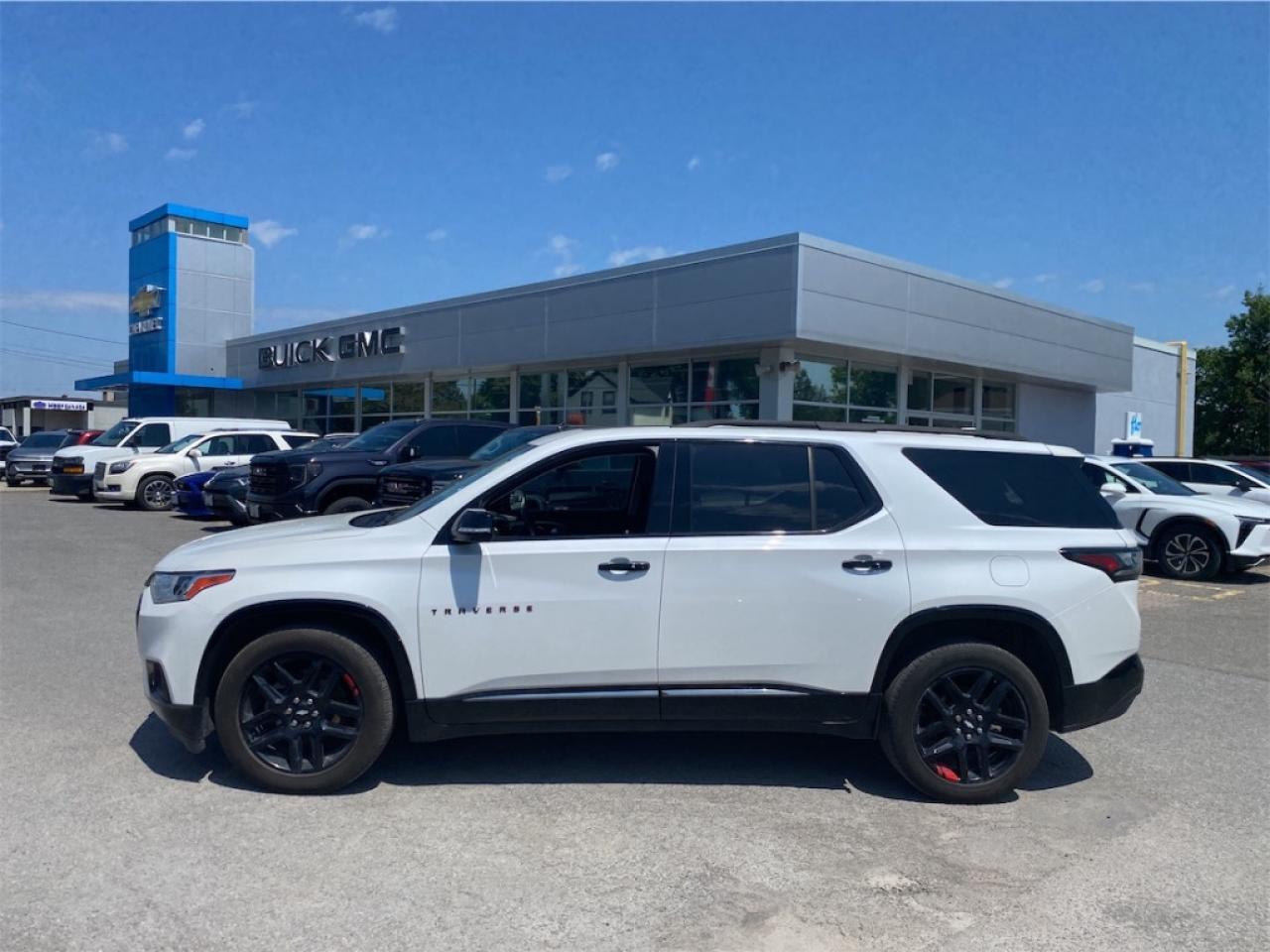 Our Traverse's trim level is Premier. This Traverse Premier has plenty of premium features such as built-in navigation, leather heated and cooled seats, a power sunroof, Bose premium audio, a power liftgate, blind zone monitoring with lane change alert, rear park assist and low speed forward automatic braking, a 360 degree camera, remote engine start, a leather heated steering wheel, SiriusXM, IntelliBeam headlamps and universal home remote. Additional equipment also includes a larger 8 inch touchscreen infotainment system with Apple CarPlay and Android Auto compatibility, voice command, USB plug-ins and bluetooth streaming audio, 4G LTE, keyless remote entry, a rear mirror camera, steering wheel cruise and audio controls and Teen Driver technology. It even comes with tri zone automatic climate control, StabiliTrak electronic stability and traction control, larger aluminum wheels, heated power side mirrors, HID headlamps, LED daytime running lights, and active aero shutters plus much more! This vehicle has been upgraded with the following features: Sunroof, Cooled Seats, Navigation, Leather Seats, Heated Seats, Power Liftgate, Remote Start.