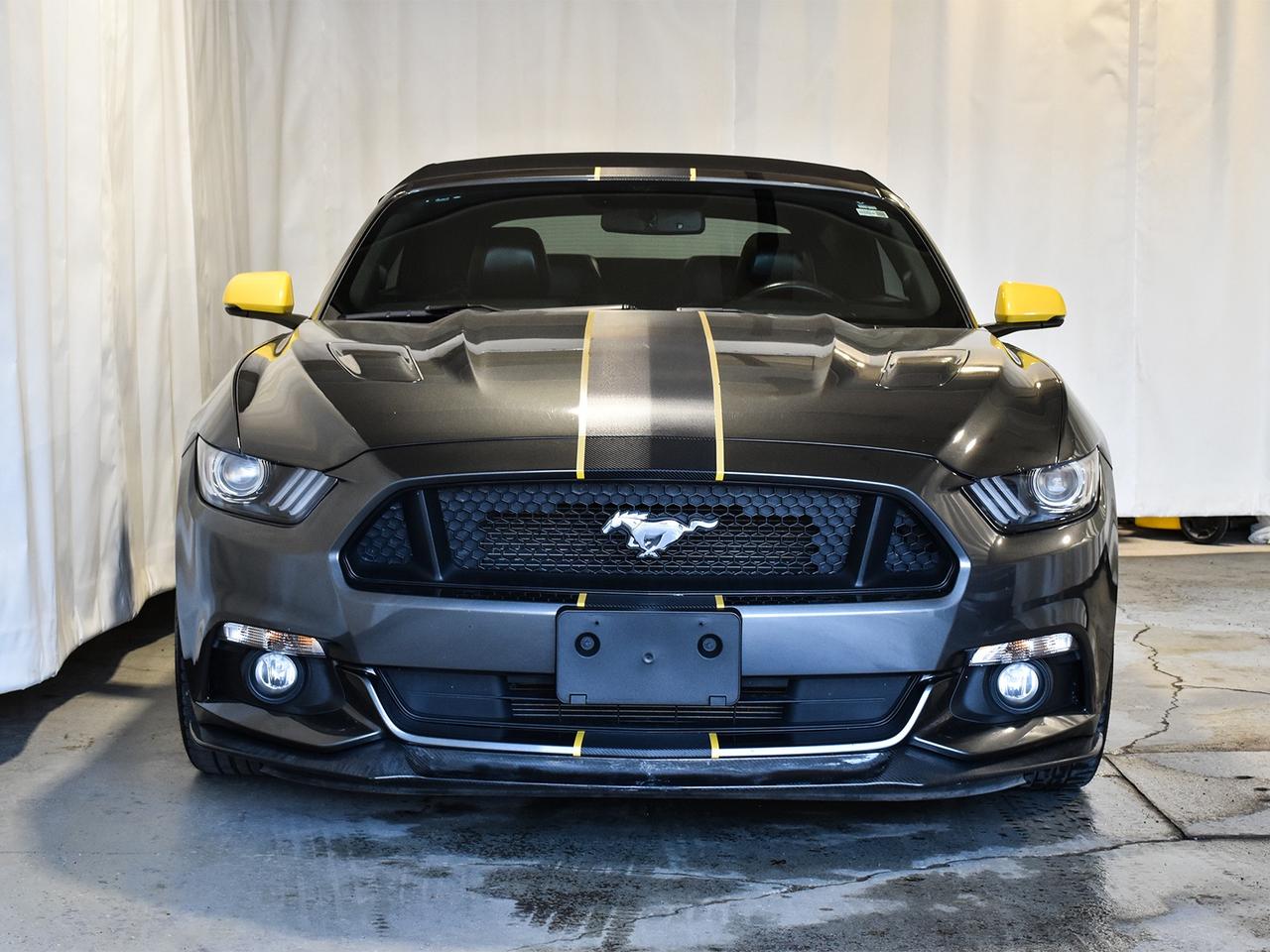 This Mustang GT Premium is unlike any one you have seen before. This Mustang commands attention. It is FULLY LOADED with upgraded options; Factory Remote Start / Dual Exhaust / Rear Parking Sensors / Rear Camera / Power Convertible Top / 20'' Black Ford Rims / Fog Lights / Hood Vents / SHAKER Premium Sound System w/ Subwoofer / Ford Intelligent Key System / Leather Seats / Heated & Cooled Seats / Navigation / Power Seat w/ Lumbar / Memory Seats / Auto Headlights / Push Button Start / Paddle Shifters / Steering Feel Adjuster / Drive Mode Selector (Normal/Sport +/Track/Snow+Wet) / Bluetooth / Steering Wheel Mounted Audio Controls / SXM / Dual Zone Climate / Auto Climate / MyColor Selector /