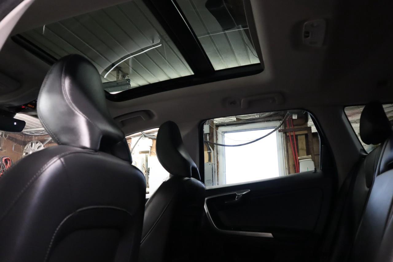 The 2015 Volvo XC60 T5 Premier Plus Featuring a 2.0-liter turbocharged inline-4 delivering start/stop technology , all-wheel drive, achieving an estimated 10.6 L/100km city and 7.6 L/100km highway fuel efficiency. Leather seating surfaces include heated 8-way power front seats with driver memory and lumbar support, leather-wrapped steering wheel, dual-zone electronic climate control with CleanZone air quality system, and Volvo Sensus Connect 7-inch colour touchscreen with Bluetooth streaming, Volvo IntelliSafe includes City Safety low-speed collision avoidance, Blind Spot Information System, Cross Traffic Alert, Lane Departure Warning, and Road Sign Information. Additional features include keyless drive with proximity sensing, panoramic sunroof, power tailgate, 40/20/40 split-folding rear seats with 877 litres of cargo capacity expanding to 1,903 litres, and 3,500-pound towing capacity.