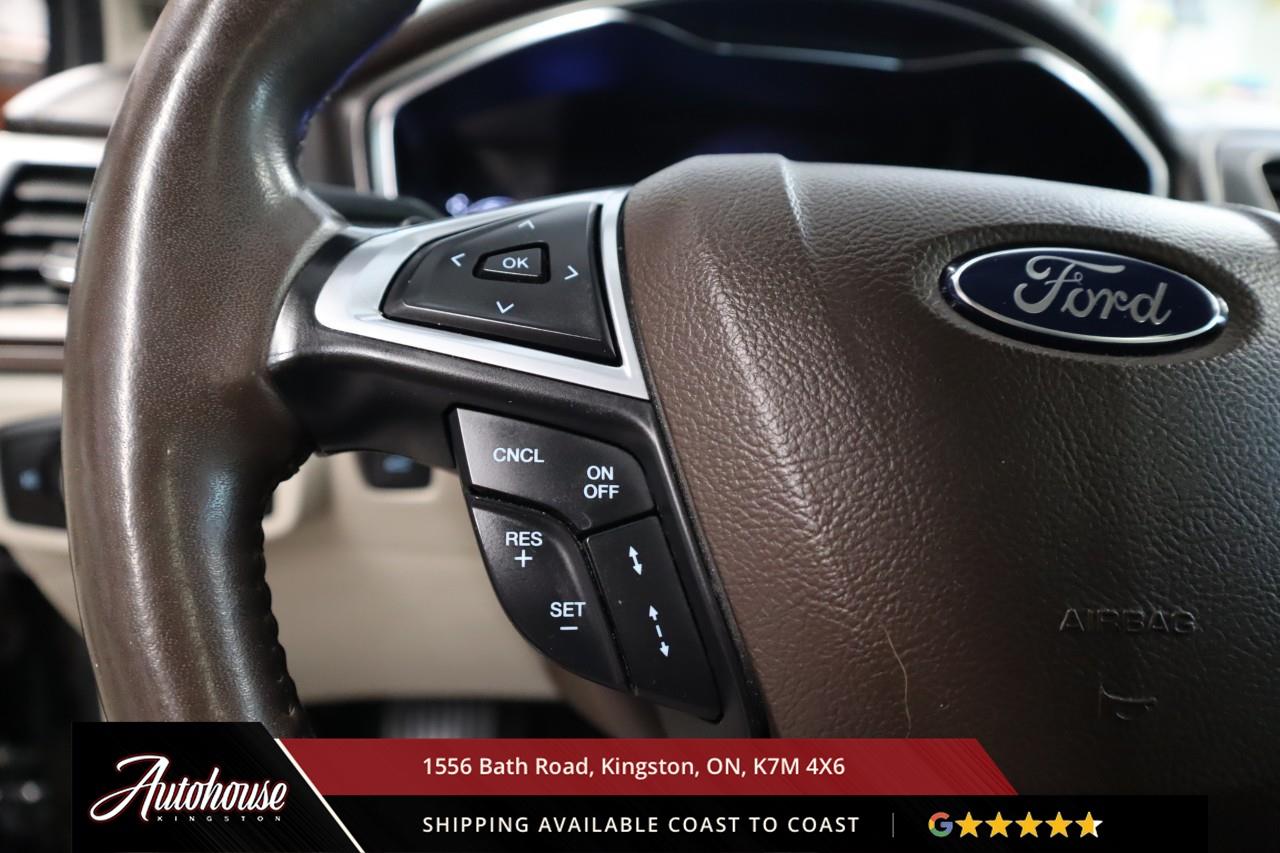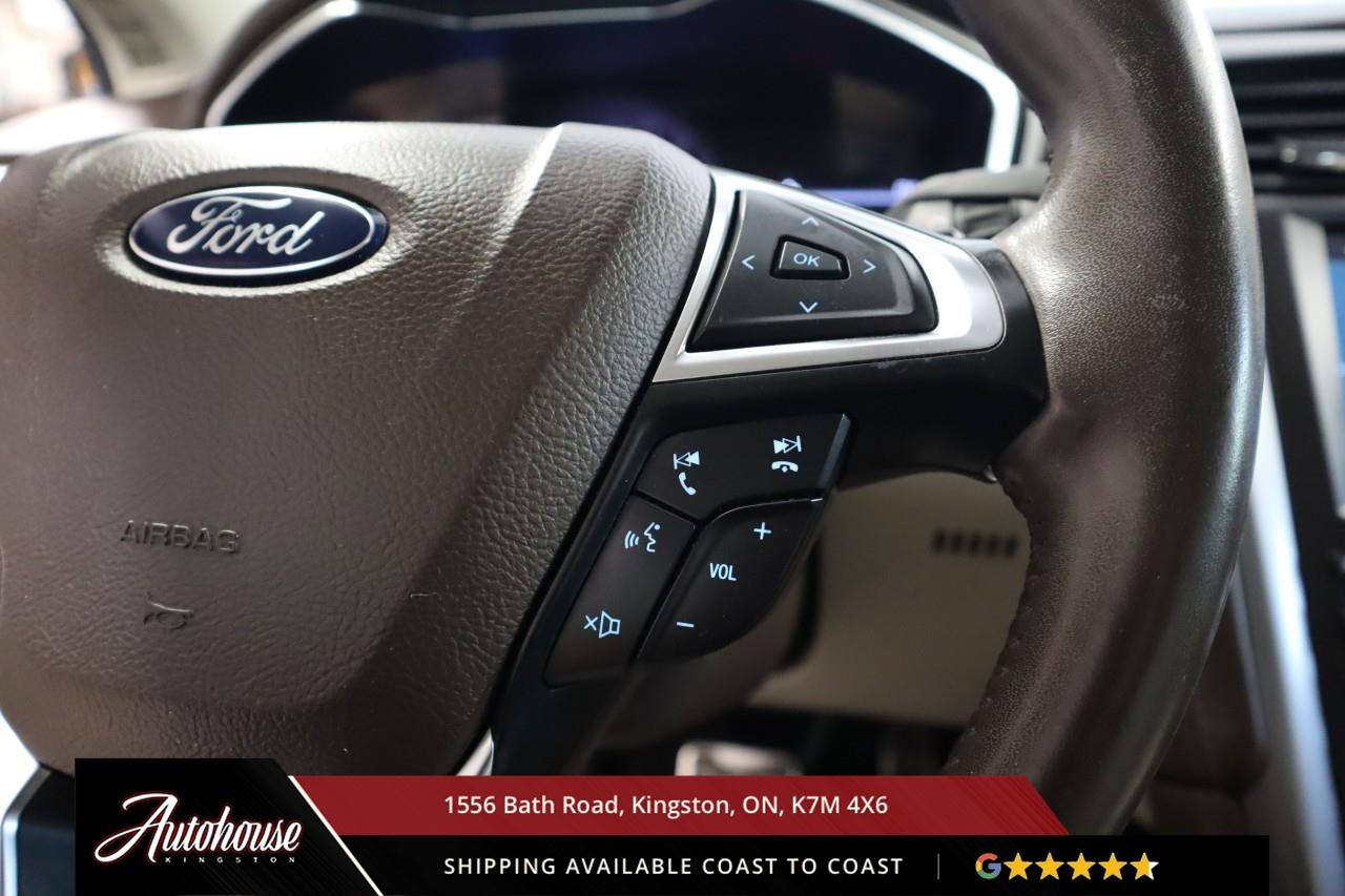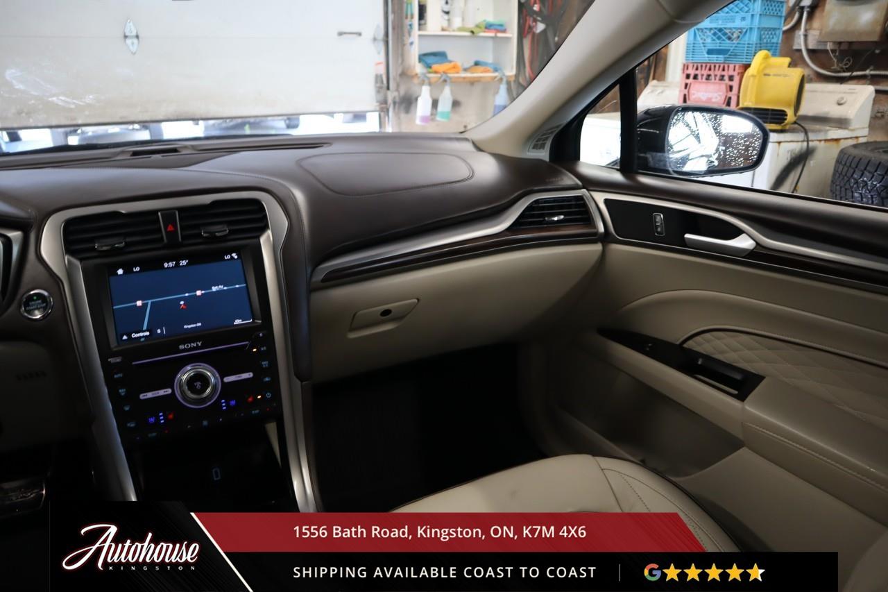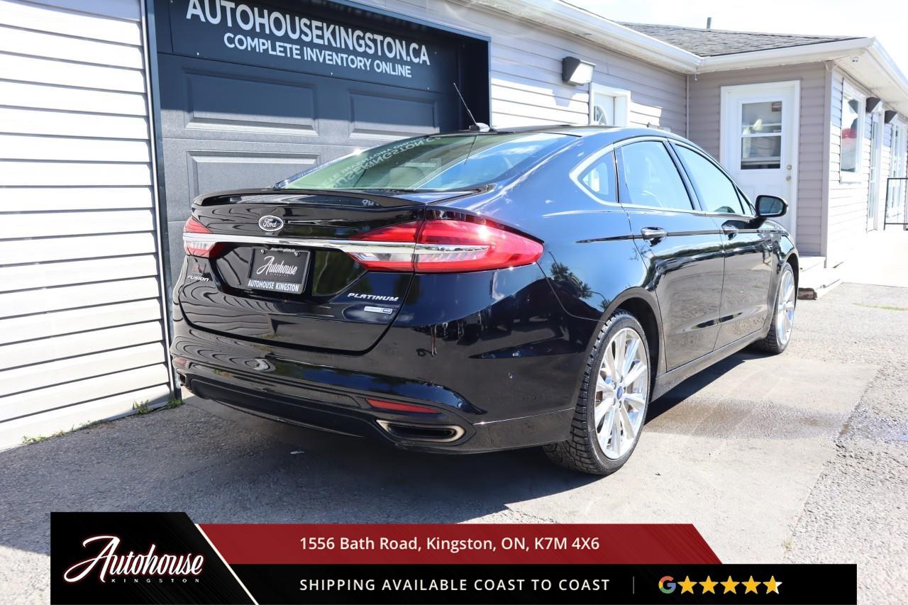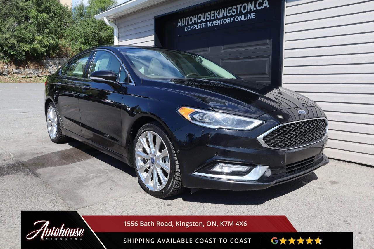 The 2018 Fusion Platinum is packed with a 2.0?L EcoBoost® turbocharged inline-4 engine getting 10.8?L/100?km combined (AWD). Power moonroof, Heated power side mirrors, universal garage door opener, Premium Nappa leather upholstery with cooling and heating in front seats, Heated leather-wrapped steering wheel, 8" LCD touchscreen with voice-activated navigation, SiriusXM Traffic & Travel Link, SYNC® 3 interface with smartphone integration, Sony premium audio system, Fords Lane-Keeping System, Blind Spot Information System, Adaptive Cruise Control with Stop-and-Go capability.