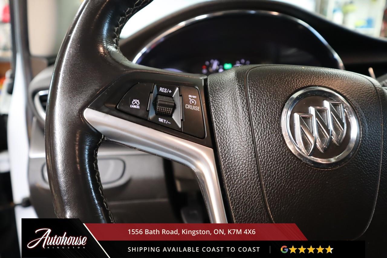 The 2019 Buick Encore Preferred Featuring a 1.4-liter turbocharged inline-4 Ecotec engine delivering 138 horsepower and 148 lb-ft of torque through a 6-speed automatic transmission with all-wheel drive, achieving an estimated 9.0 L/100km city and 7.7 L/100km highway fuel efficiency. Premium cloth seating with leatherette bolsters includes heated front seats, leather-wrapped steering wheel, single-zone automatic climate control, and Buick IntelliLink 8-inch colour touchscreen infotainment with Apple CarPlay, Android Auto, Bluetooth streaming, SiriusXM satellite radio, and a 6-speaker audio system. Buick Driver Confidence includes Rear Park Assist, Rear Cross Traffic Alert, Side Blind Zone Alert, and a Rear Vision Camera. Additional features include keyless open and start, cruise control, a clean CARFAX and so much more!